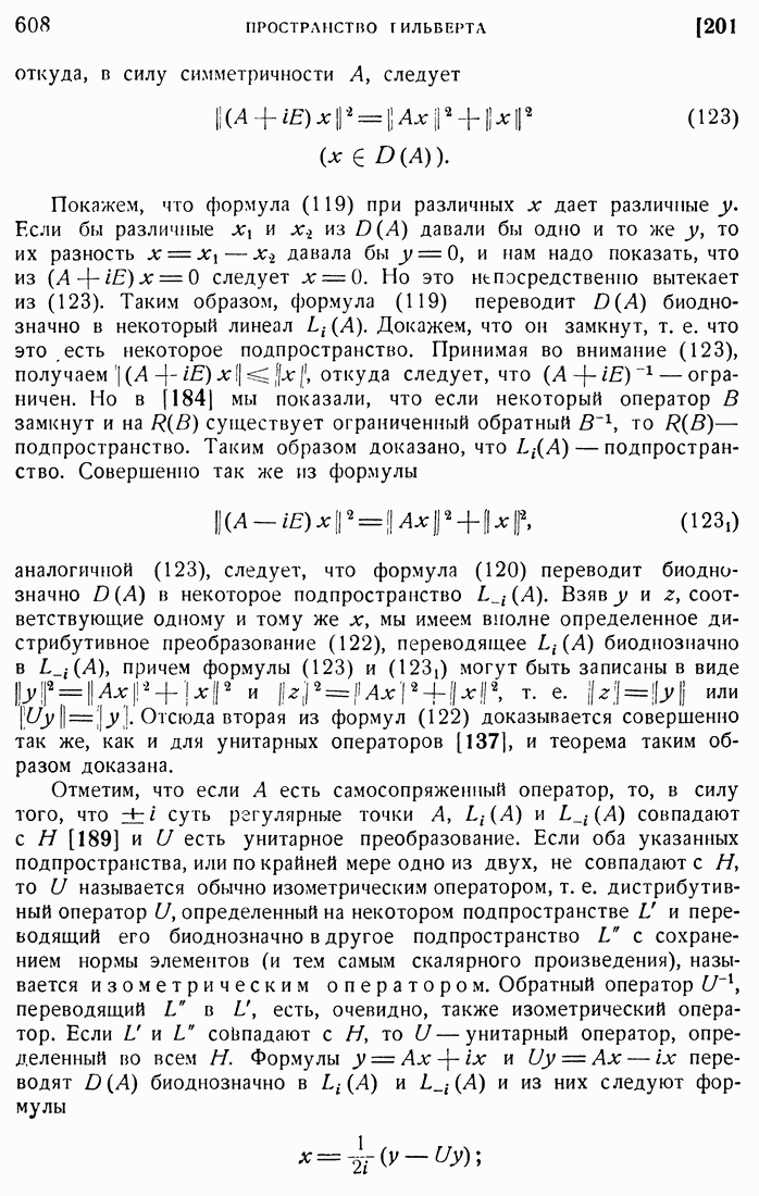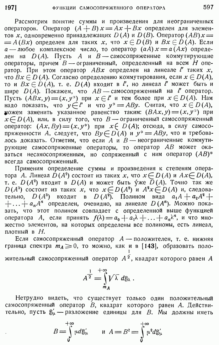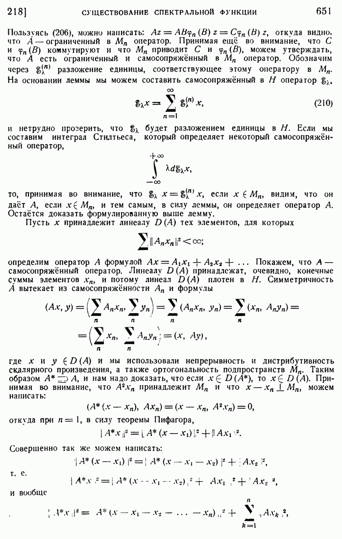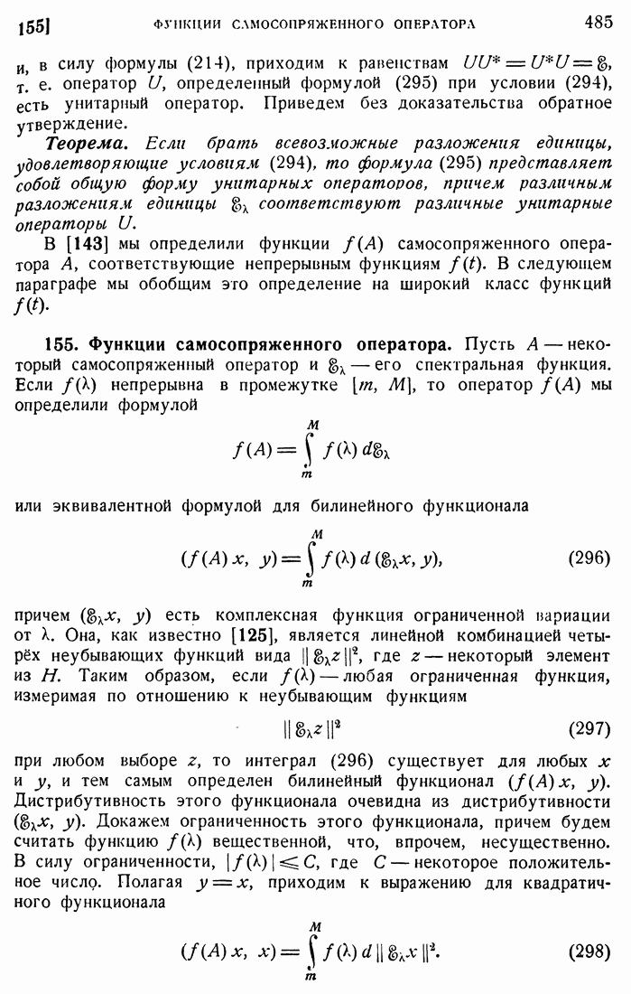 , через которую он выражается по формуле (204), т. е. при выводе формулы (301), мы основывались на теореме из [1421, которую мы оставили без доказательства. Это доказательство по существу будет сводиться к тому, что мы определим для любого самосопряженного оператора А функцию