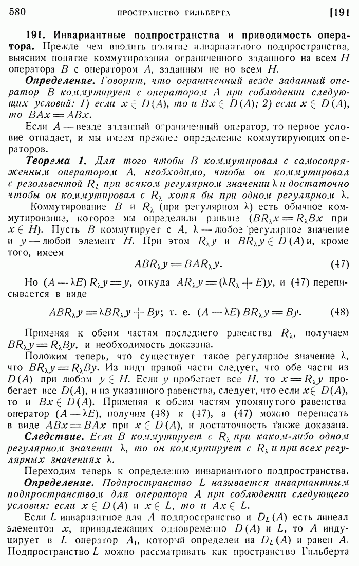 коммутирует с любым оператором В, коммутирующим с А. Верно и обратное предложение, т. е. если ограниченный линейный оператор С коммутирует с любым оператором