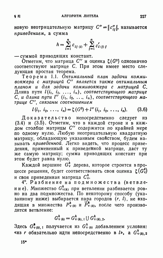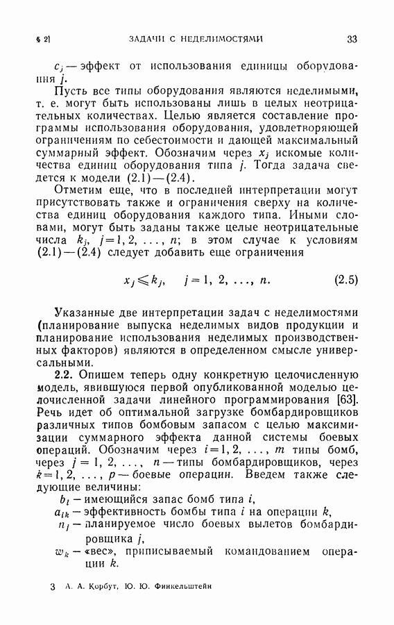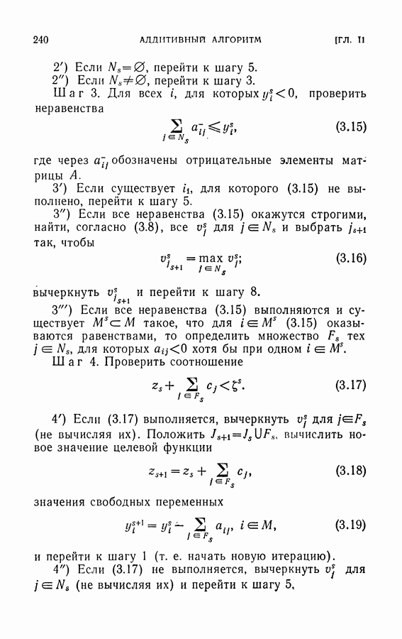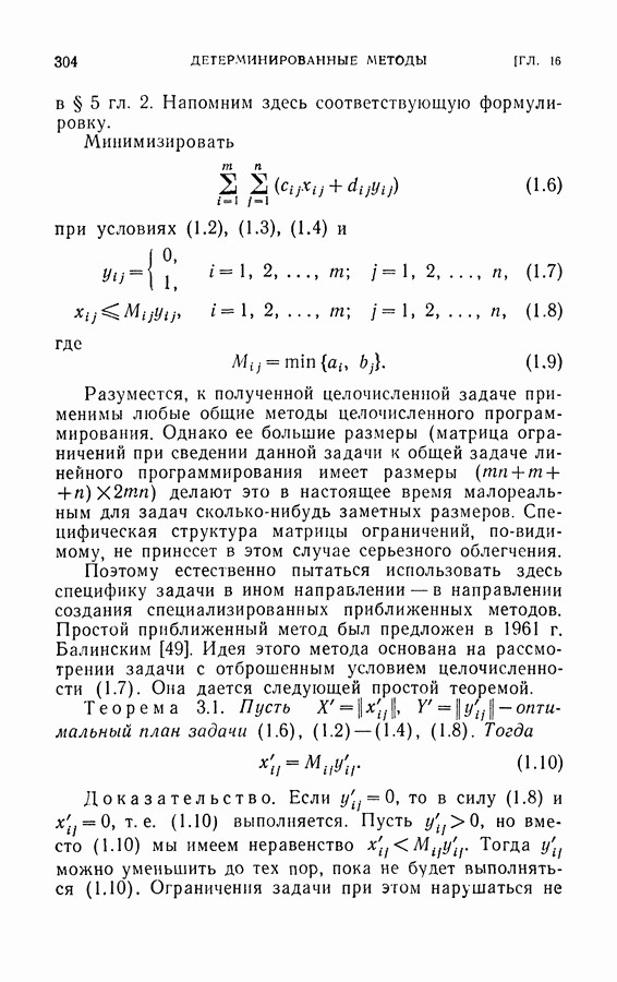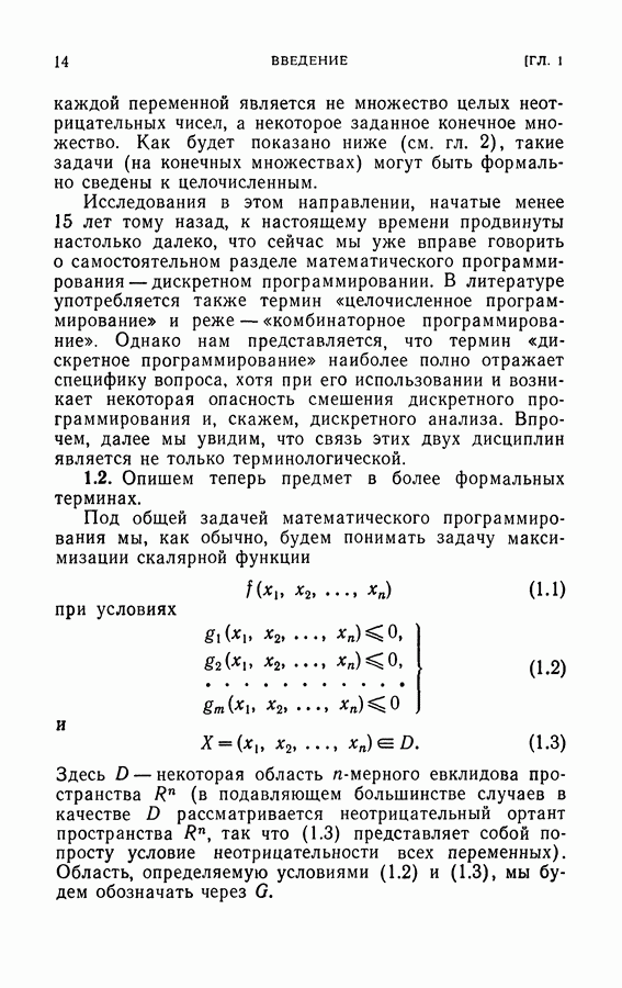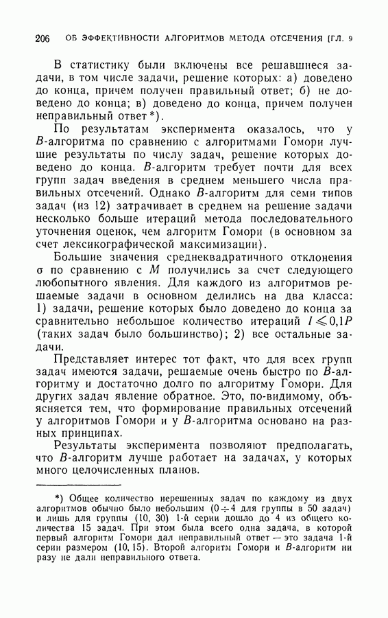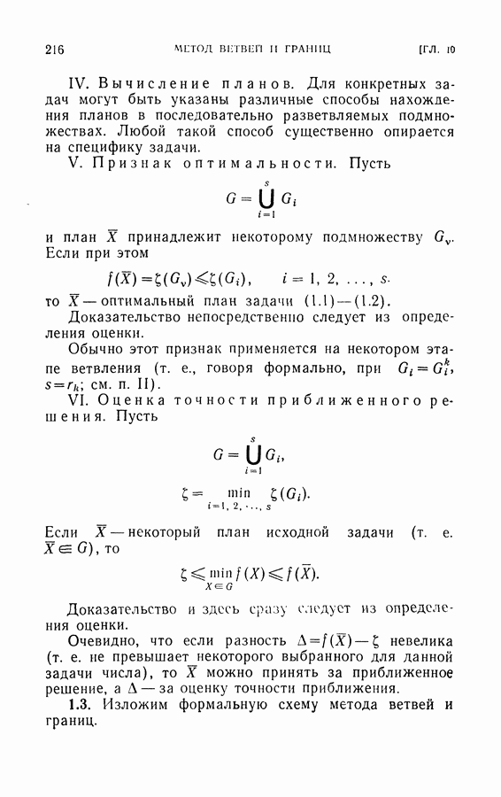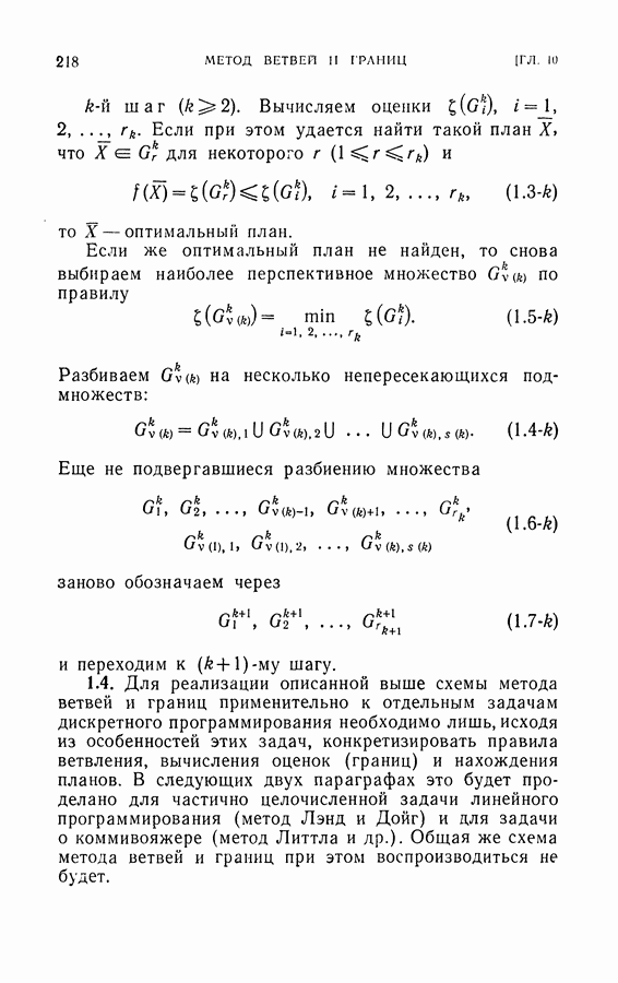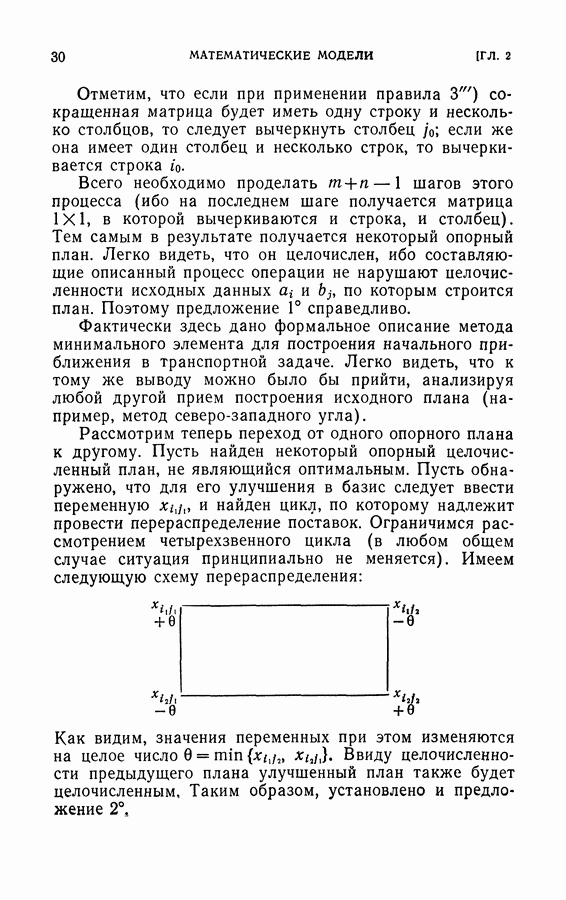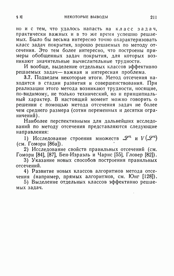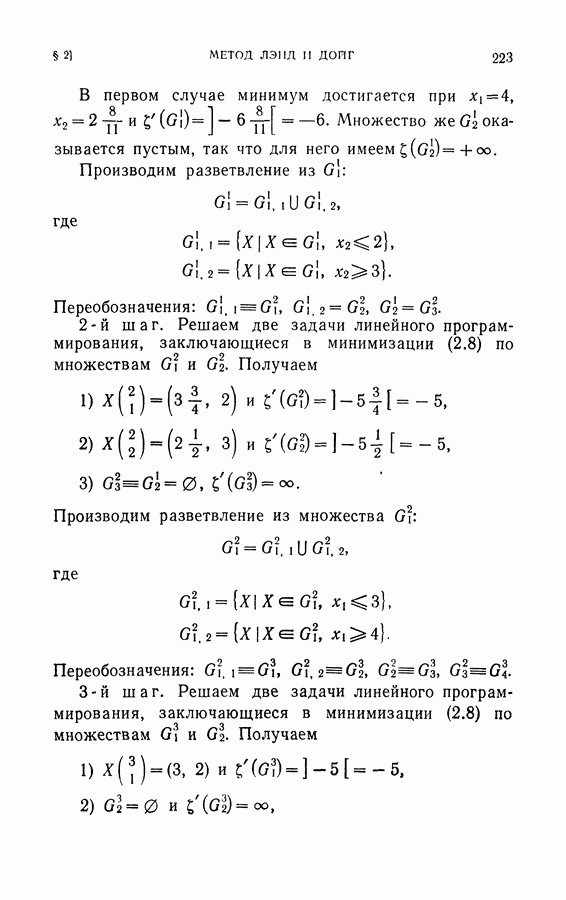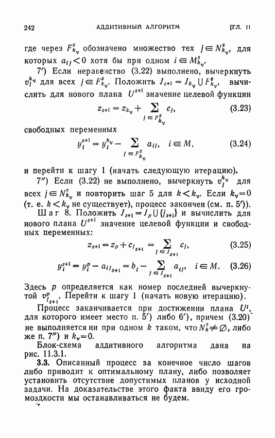 ГЛАВА 7. ТРЕТИЙ АЛГОРИТМ ГОМОРИ И ЕГО МОДИФИКАЦИЯВ этой главе излагается третий алгоритм Гомори [85а], [86], в литературе часто называемый полностью целочисленным, и при некоторых условиях доказывается его конечность. Приведен пример, когда эти условия нарушены и конечность алгоритма Гомори не имеет места. Предложена модификация алгоритма, обеспечивающая конечность при менее ограничительных условиях (пример и модификация алгоритма предложены Финкельштейном [32]). § 1 О влиянии ошибок округления. Идея третьего алгоритма Гомори1.1. Известно (см., например, Джекобе [101]), что влияние ошибок округления может привести к получению ошибочного решения при применении симплекс-метода (прямого или двойственного) в обычной задаче линейного программирования. При решении же с помощью изложенных выше алгоритмов целочисленной задачи линейного программирования влияние ошибок округления существенно усиливается по следующим причинам: 1) Увеличение объема вычислений из-за многократного применения в вычислениях при подсчете чисел типа дробных частей от округленных величин. В алгоритме Дальтона и Ллевелина место дробной части От вредного влияния ошибок округления свободен третий алгоритм, предложенный Гомори [86] для решения полностью целочисленной задачи линейного программирования: Максимизировать