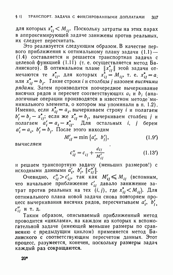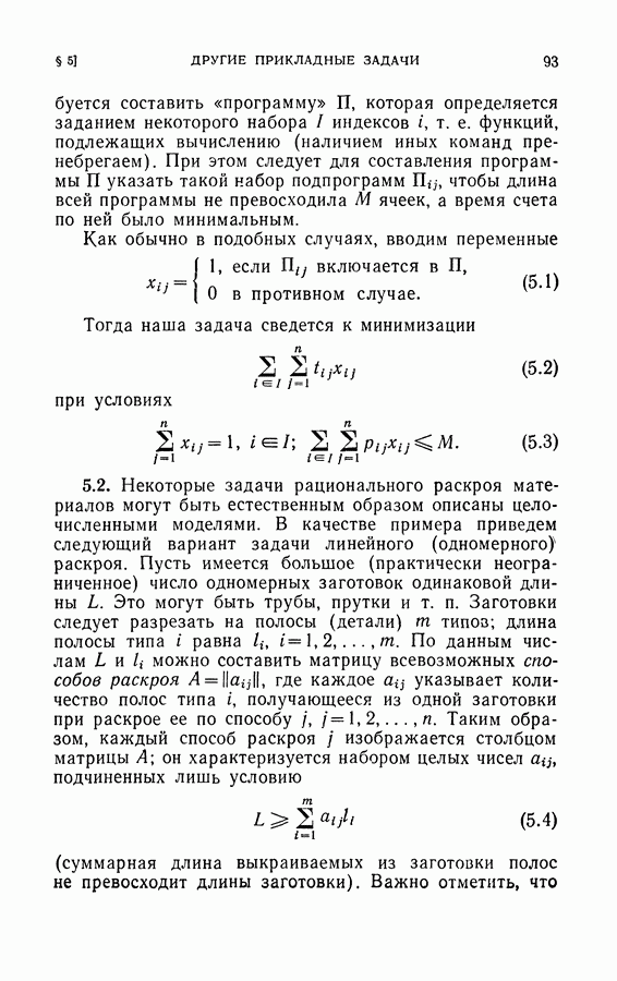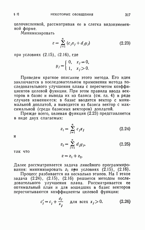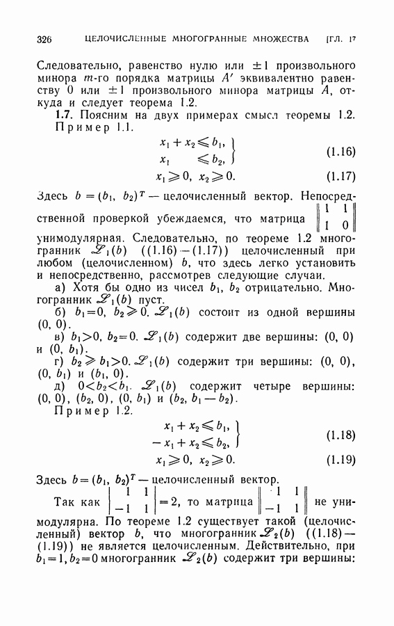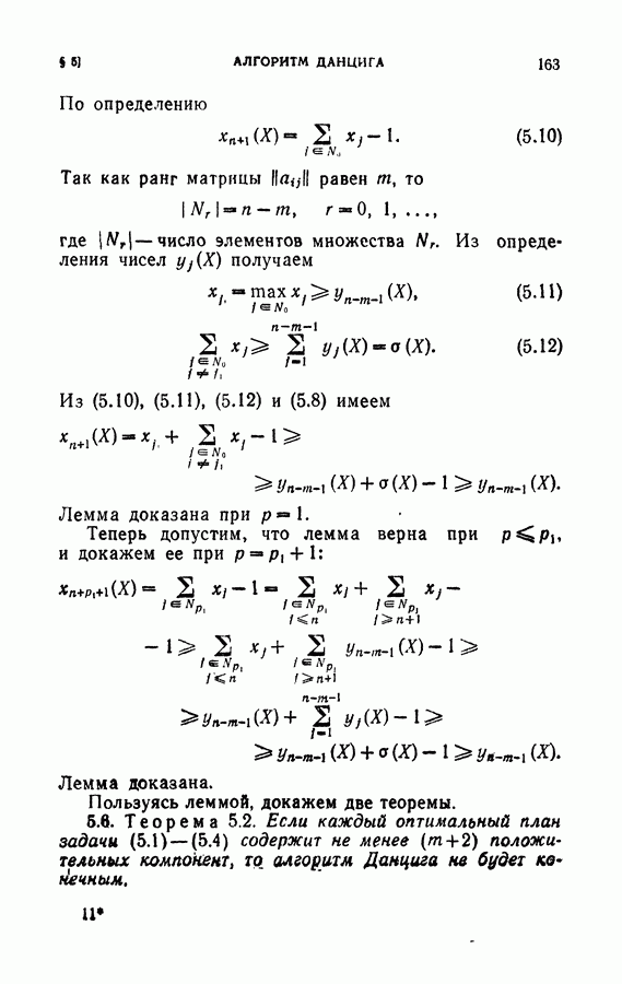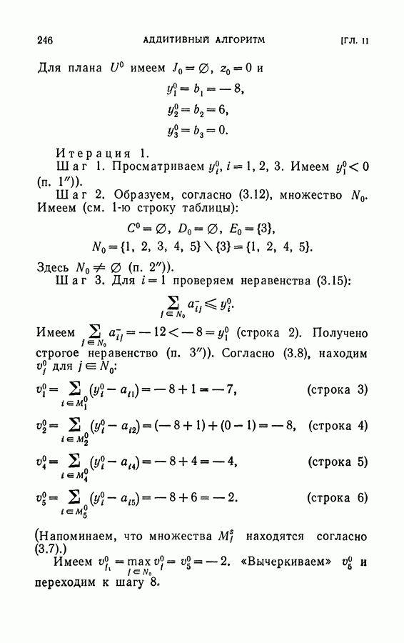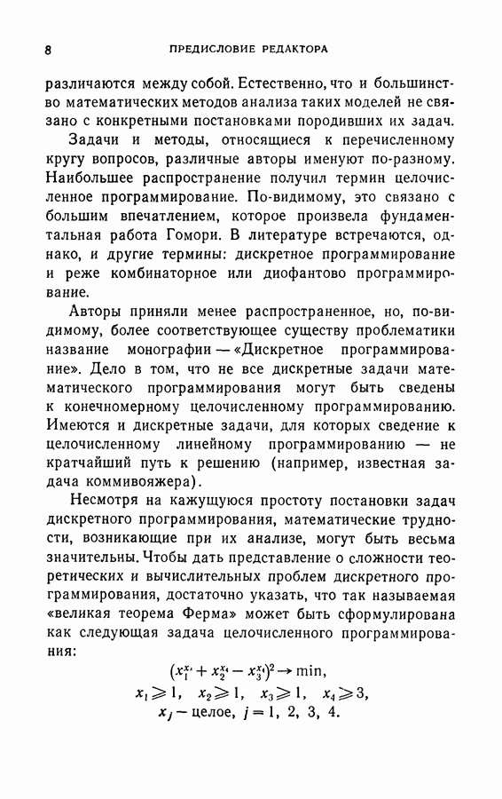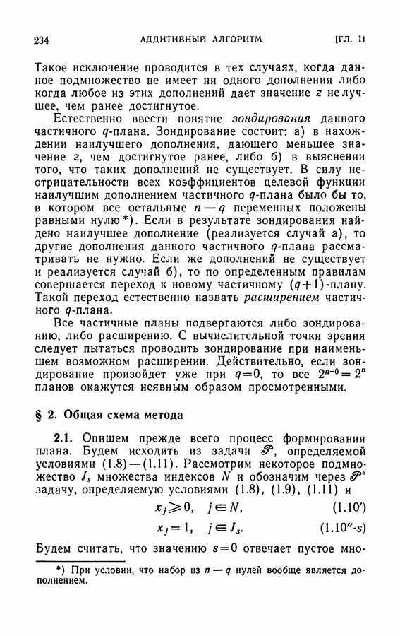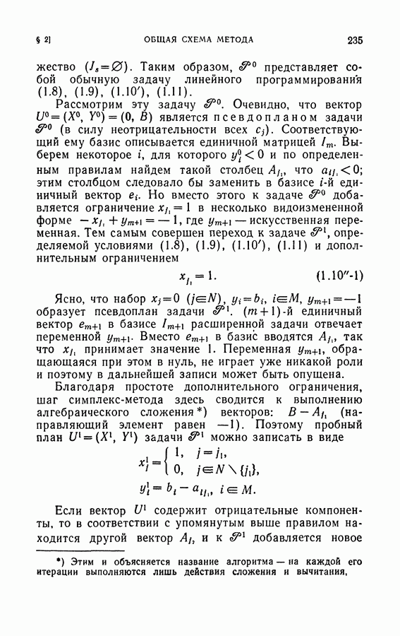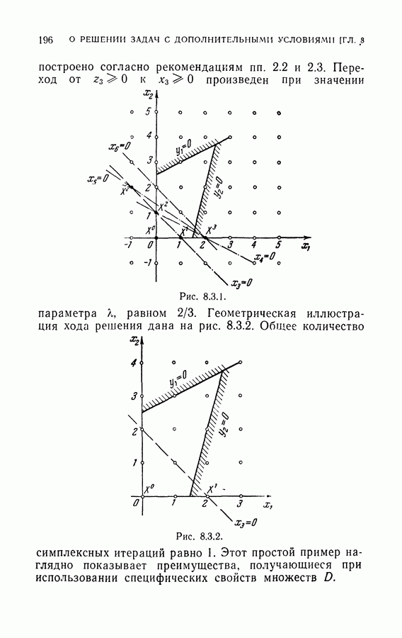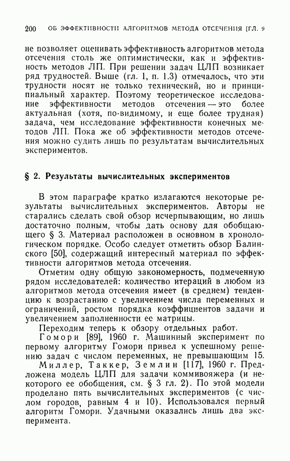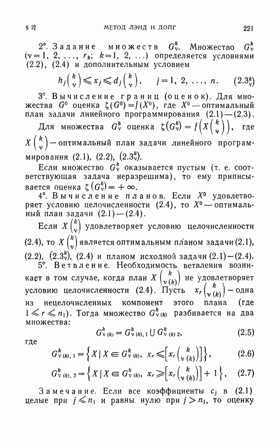 ГЛАВА 7. ТРЕТИЙ АЛГОРИТМ ГОМОРИ И ЕГО МОДИФИКАЦИЯВ этой главе излагается третий алгоритм Гомори [85а], [86], в литературе часто называемый полностью целочисленным, и при некоторых условиях доказывается его конечность. Приведен пример, когда эти условия нарушены и конечность алгоритма Гомори не имеет места. Предложена модификация алгоритма, обеспечивающая конечность при менее ограничительных условиях (пример и модификация алгоритма предложены Финкельштейном [32]). § 1 О влиянии ошибок округления. Идея третьего алгоритма Гомори1.1. Известно (см., например, Джекобе [101]), что влияние ошибок округления может привести к получению ошибочного решения при применении симплекс-метода (прямого или двойственного) в обычной задаче линейного программирования. При решении же с помощью изложенных выше алгоритмов целочисленной задачи линейного программирования влияние ошибок округления существенно усиливается по следующим причинам: 1) Увеличение объема вычислений из-за многократного применения в вычислениях при подсчете чисел типа дробных частей от округленных величин. В алгоритме Дальтона и Ллевелина место дробной части От вредного влияния ошибок округления свободен третий алгоритм, предложенный Гомори [86] для решения полностью целочисленной задачи линейного программирования: Максимизировать