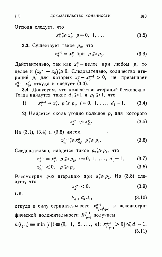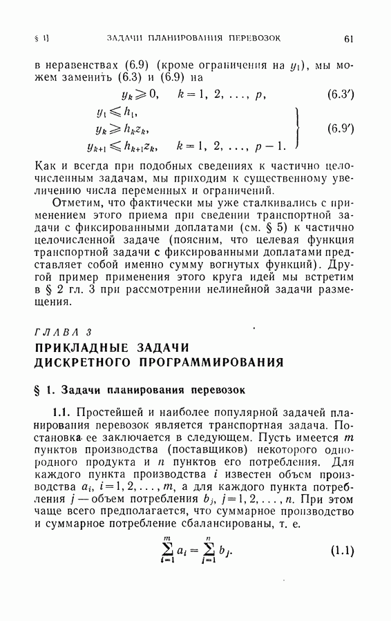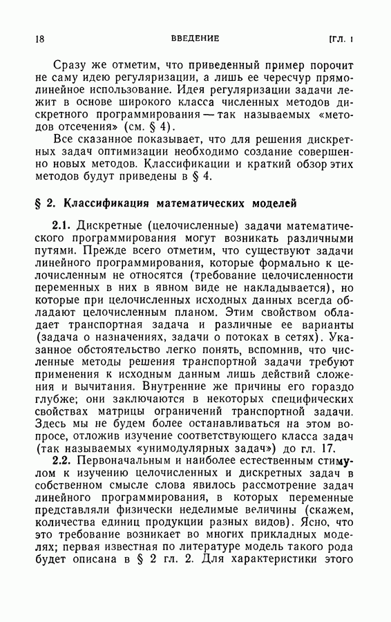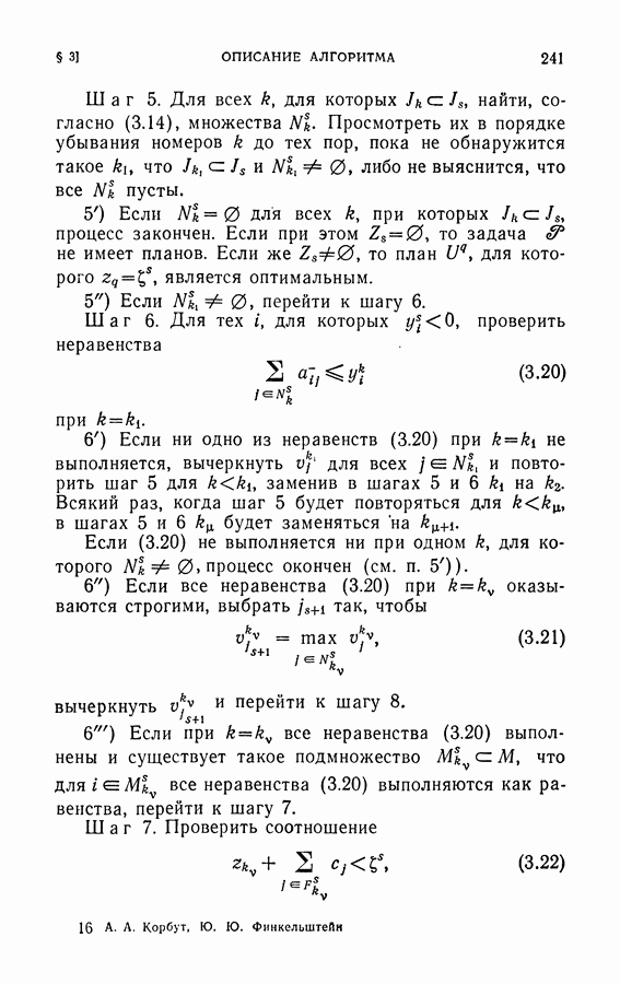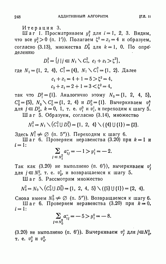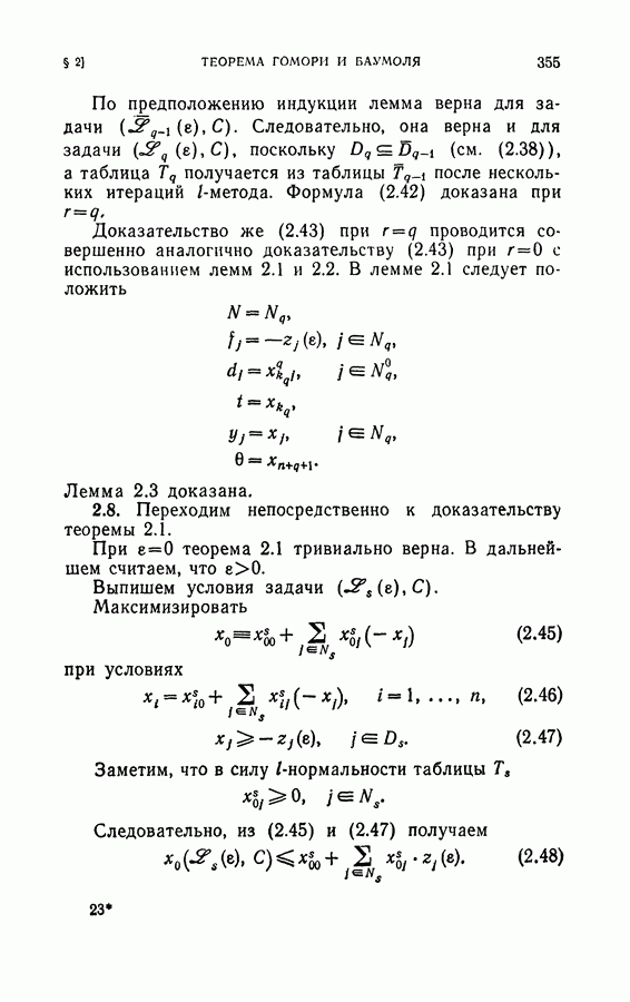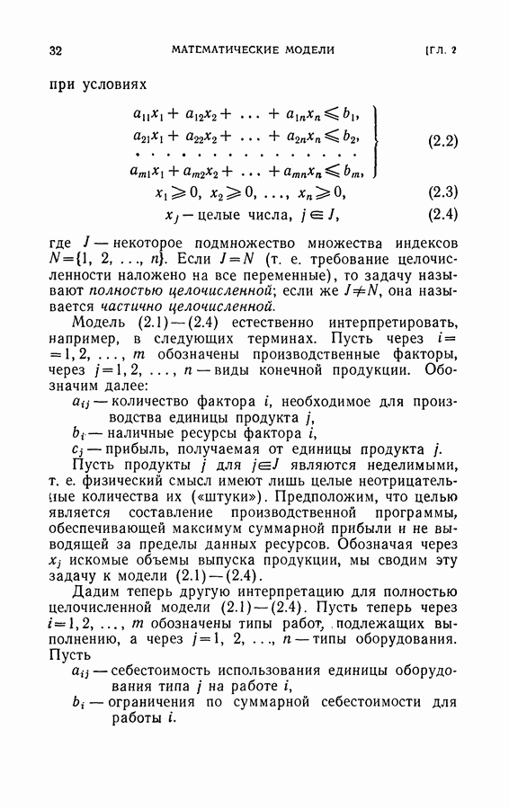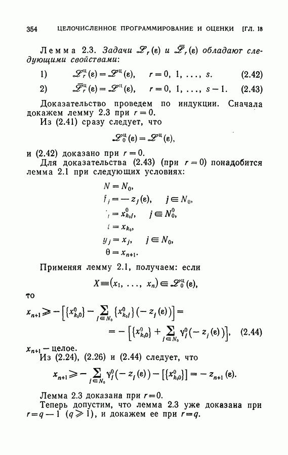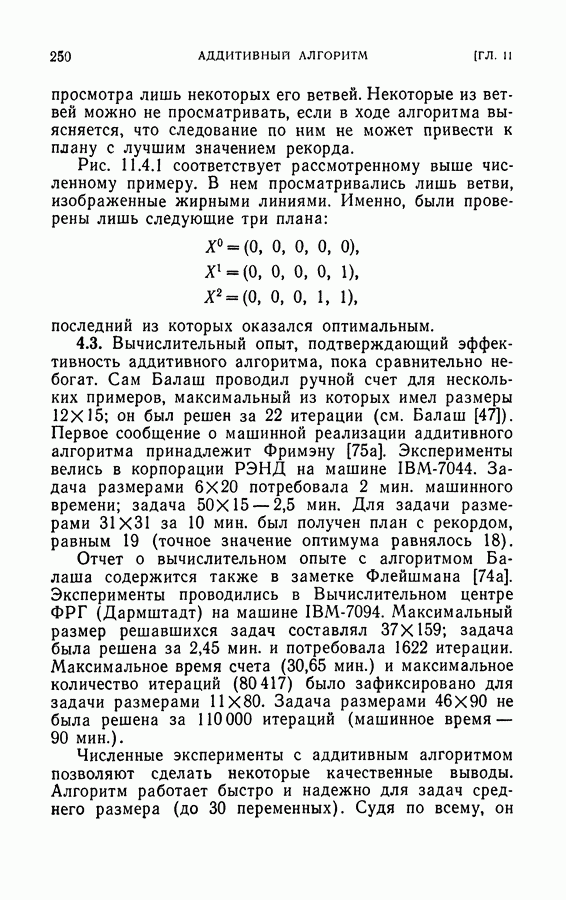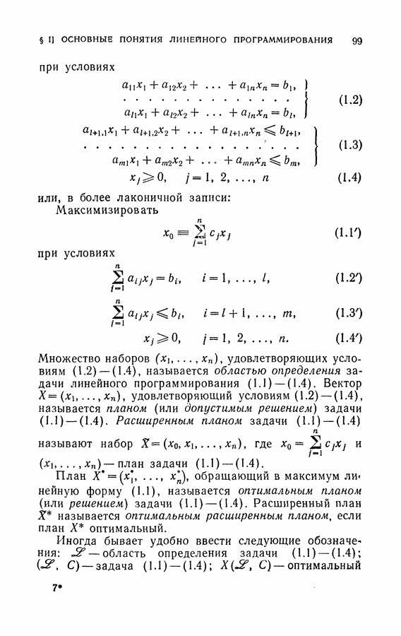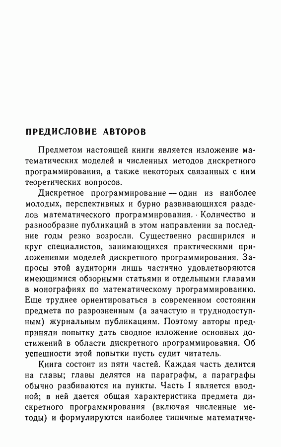 ГЛАВА 7. ТРЕТИЙ АЛГОРИТМ ГОМОРИ И ЕГО МОДИФИКАЦИЯВ этой главе излагается третий алгоритм Гомори [85а], [86], в литературе часто называемый полностью целочисленным, и при некоторых условиях доказывается его конечность. Приведен пример, когда эти условия нарушены и конечность алгоритма Гомори не имеет места. Предложена модификация алгоритма, обеспечивающая конечность при менее ограничительных условиях (пример и модификация алгоритма предложены Финкельштейном [32]). § 1 О влиянии ошибок округления. Идея третьего алгоритма Гомори1.1. Известно (см., например, Джекобе [101]), что влияние ошибок округления может привести к получению ошибочного решения при применении симплекс-метода (прямого или двойственного) в обычной задаче линейного программирования. При решении же с помощью изложенных выше алгоритмов целочисленной задачи линейного программирования влияние ошибок округления существенно усиливается по следующим причинам: 1) Увеличение объема вычислений из-за многократного применения в вычислениях при подсчете чисел типа дробных частей от округленных величин. В алгоритме Дальтона и Ллевелина место дробной части От вредного влияния ошибок округления свободен третий алгоритм, предложенный Гомори [86] для решения полностью целочисленной задачи линейного программирования: Максимизировать