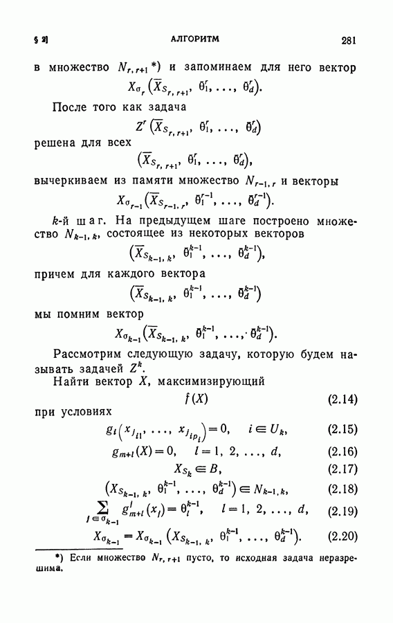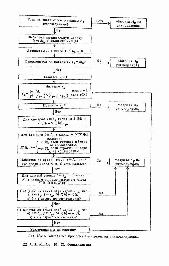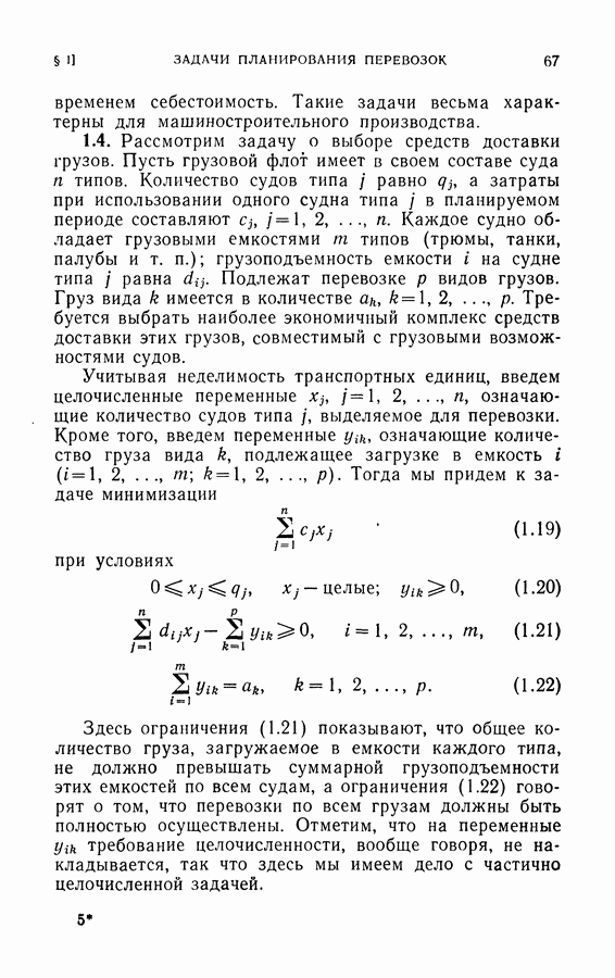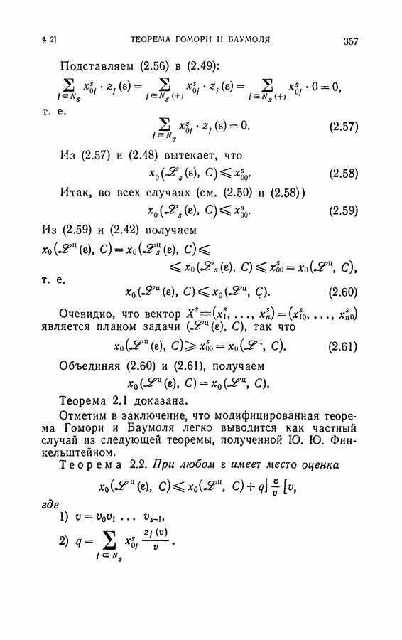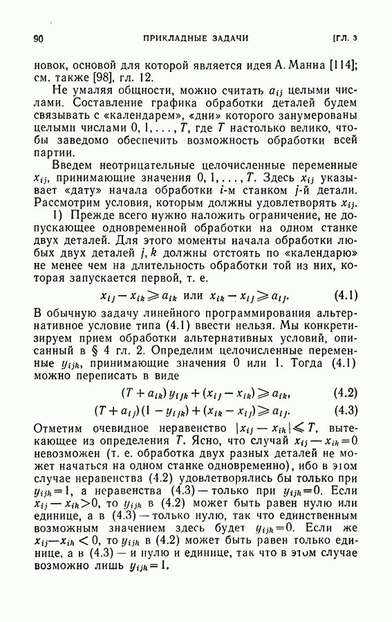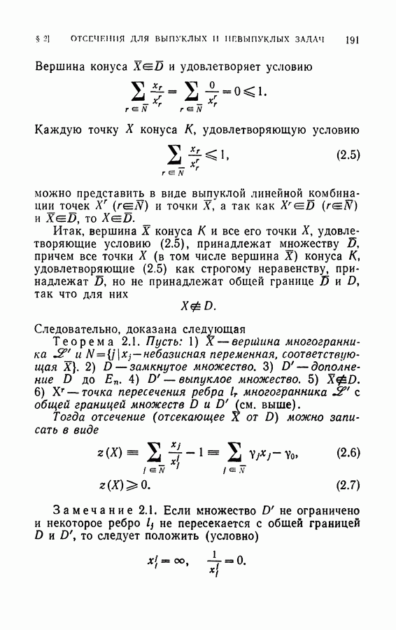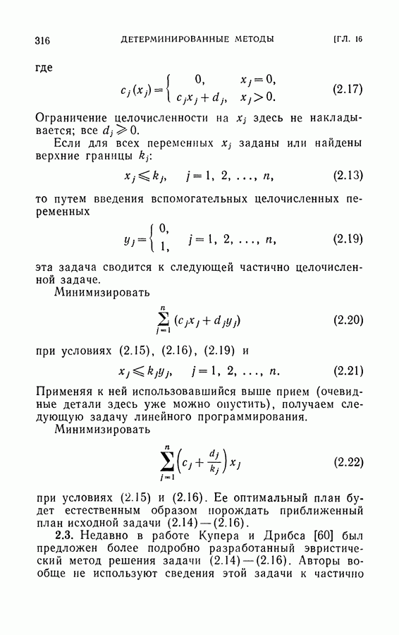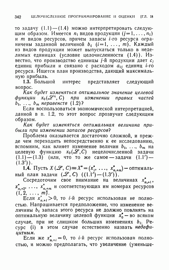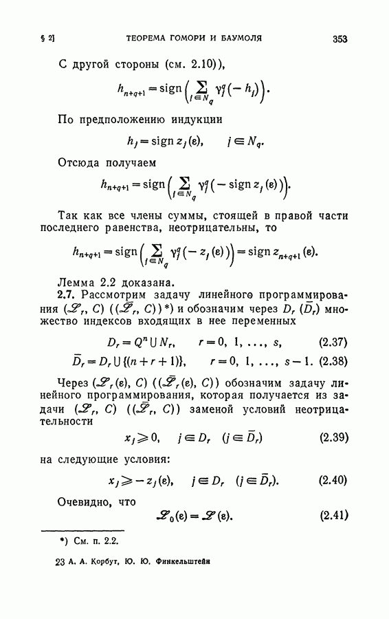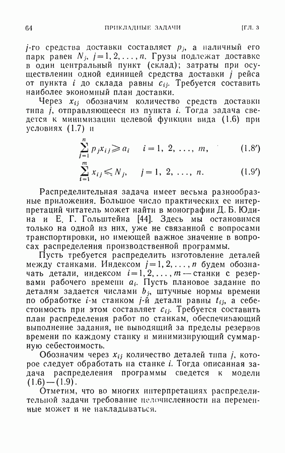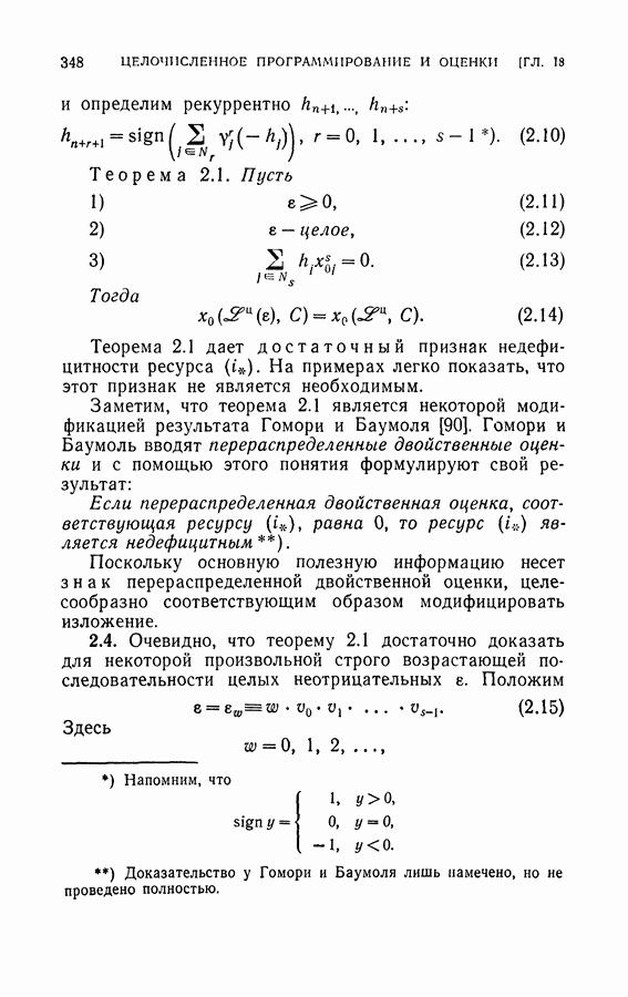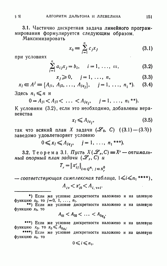 ГЛАВА 7. ТРЕТИЙ АЛГОРИТМ ГОМОРИ И ЕГО МОДИФИКАЦИЯВ этой главе излагается третий алгоритм Гомори [85а], [86], в литературе часто называемый полностью целочисленным, и при некоторых условиях доказывается его конечность. Приведен пример, когда эти условия нарушены и конечность алгоритма Гомори не имеет места. Предложена модификация алгоритма, обеспечивающая конечность при менее ограничительных условиях (пример и модификация алгоритма предложены Финкельштейном [32]). § 1 О влиянии ошибок округления. Идея третьего алгоритма Гомори1.1. Известно (см., например, Джекобе [101]), что влияние ошибок округления может привести к получению ошибочного решения при применении симплекс-метода (прямого или двойственного) в обычной задаче линейного программирования. При решении же с помощью изложенных выше алгоритмов целочисленной задачи линейного программирования влияние ошибок округления существенно усиливается по следующим причинам: 1) Увеличение объема вычислений из-за многократного применения в вычислениях при подсчете чисел типа дробных частей от округленных величин. В алгоритме Дальтона и Ллевелина место дробной части От вредного влияния ошибок округления свободен третий алгоритм, предложенный Гомори [86] для решения полностью целочисленной задачи линейного программирования: Максимизировать