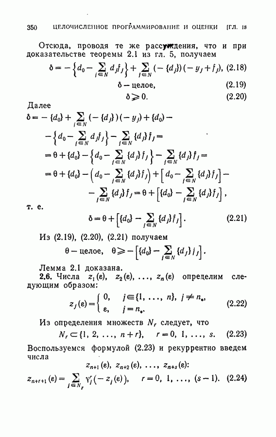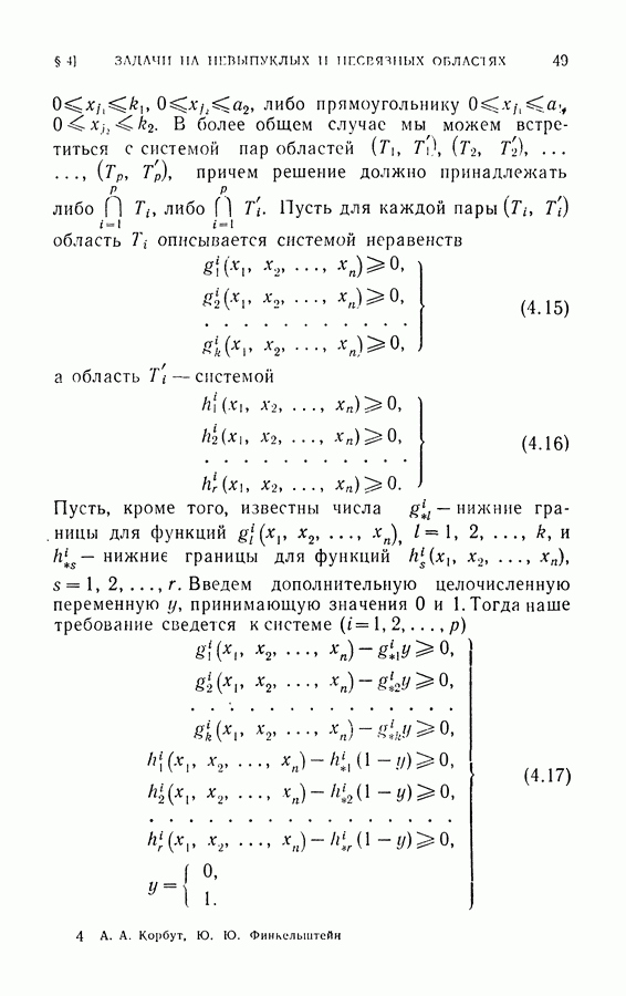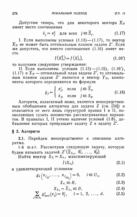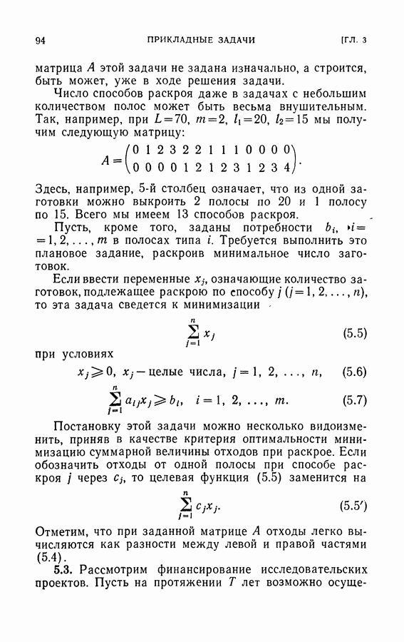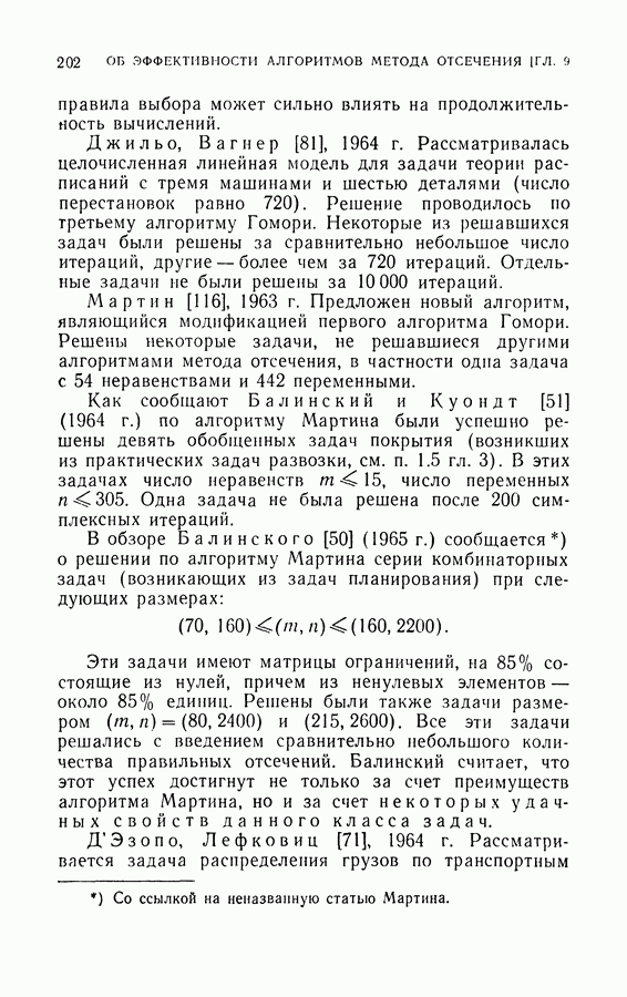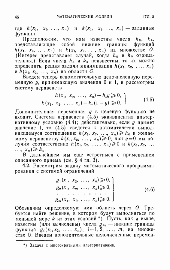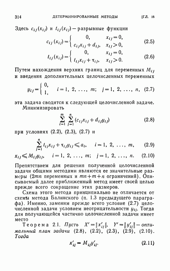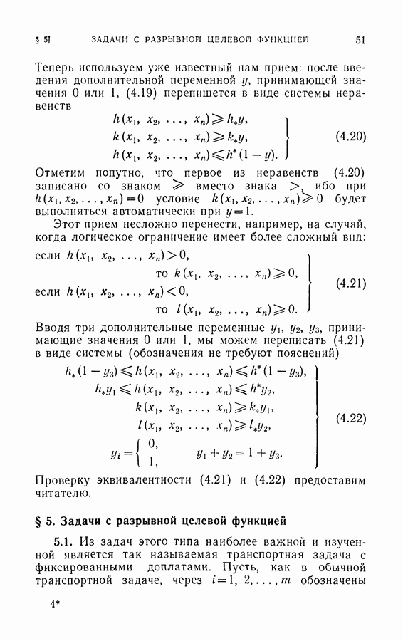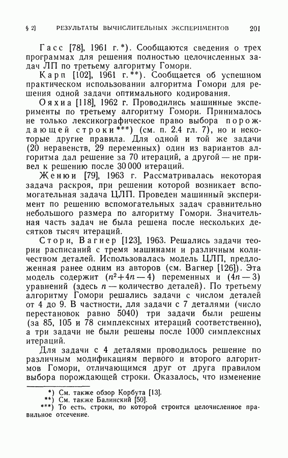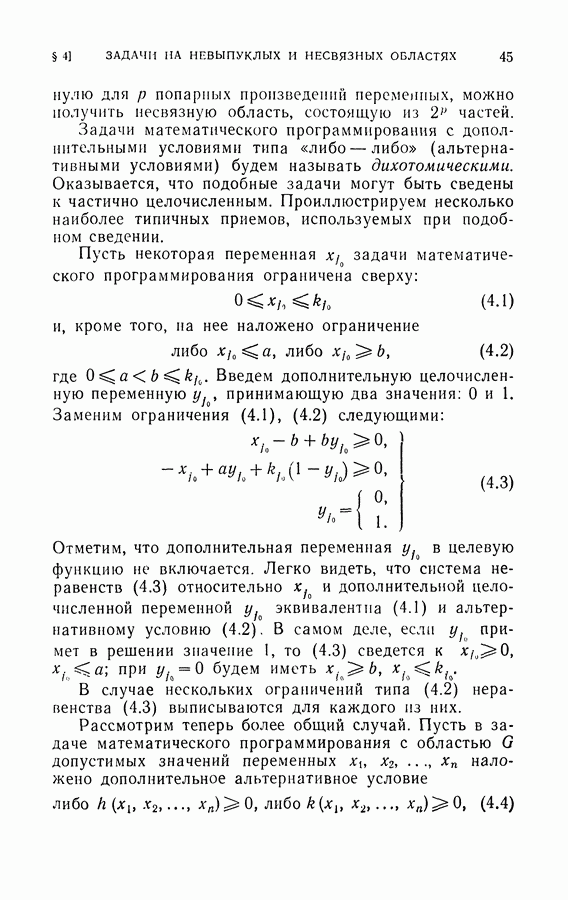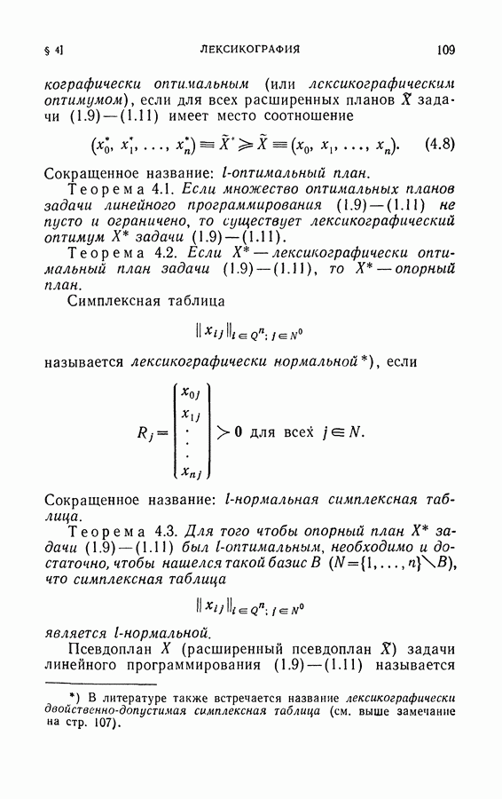 ГЛАВА 7. ТРЕТИЙ АЛГОРИТМ ГОМОРИ И ЕГО МОДИФИКАЦИЯВ этой главе излагается третий алгоритм Гомори [85а], [86], в литературе часто называемый полностью целочисленным, и при некоторых условиях доказывается его конечность. Приведен пример, когда эти условия нарушены и конечность алгоритма Гомори не имеет места. Предложена модификация алгоритма, обеспечивающая конечность при менее ограничительных условиях (пример и модификация алгоритма предложены Финкельштейном [32]). § 1 О влиянии ошибок округления. Идея третьего алгоритма Гомори1.1. Известно (см., например, Джекобе [101]), что влияние ошибок округления может привести к получению ошибочного решения при применении симплекс-метода (прямого или двойственного) в обычной задаче линейного программирования. При решении же с помощью изложенных выше алгоритмов целочисленной задачи линейного программирования влияние ошибок округления существенно усиливается по следующим причинам: 1) Увеличение объема вычислений из-за многократного применения в вычислениях при подсчете чисел типа дробных частей от округленных величин. В алгоритме Дальтона и Ллевелина место дробной части От вредного влияния ошибок округления свободен третий алгоритм, предложенный Гомори [86] для решения полностью целочисленной задачи линейного программирования: Максимизировать