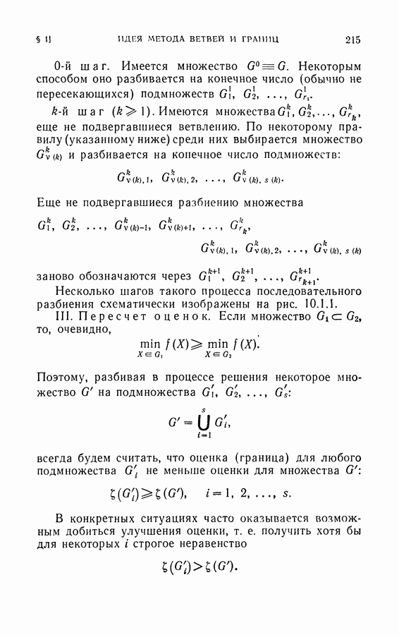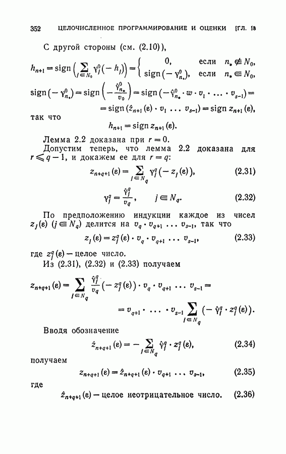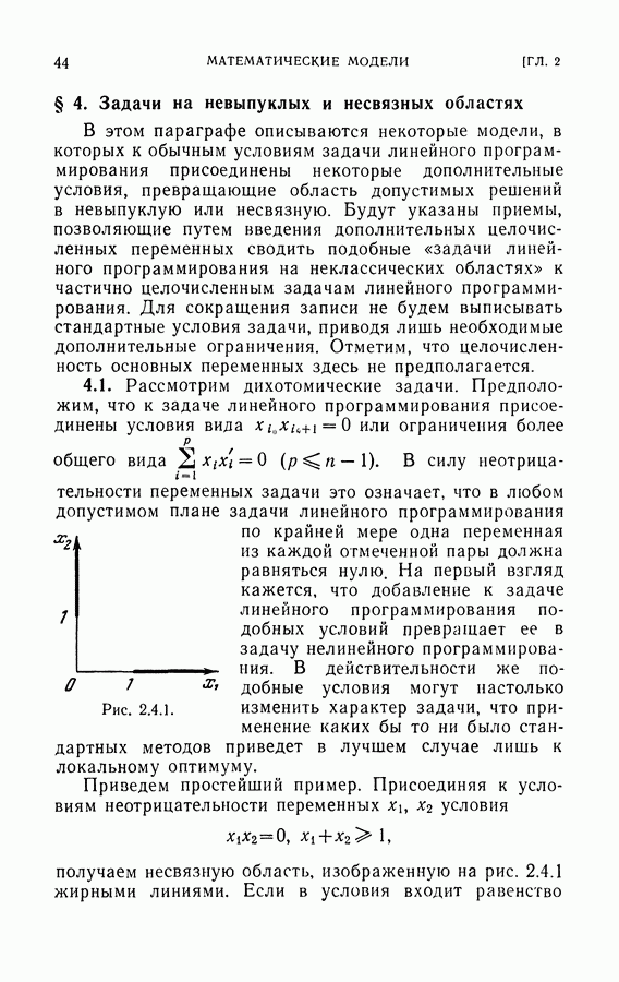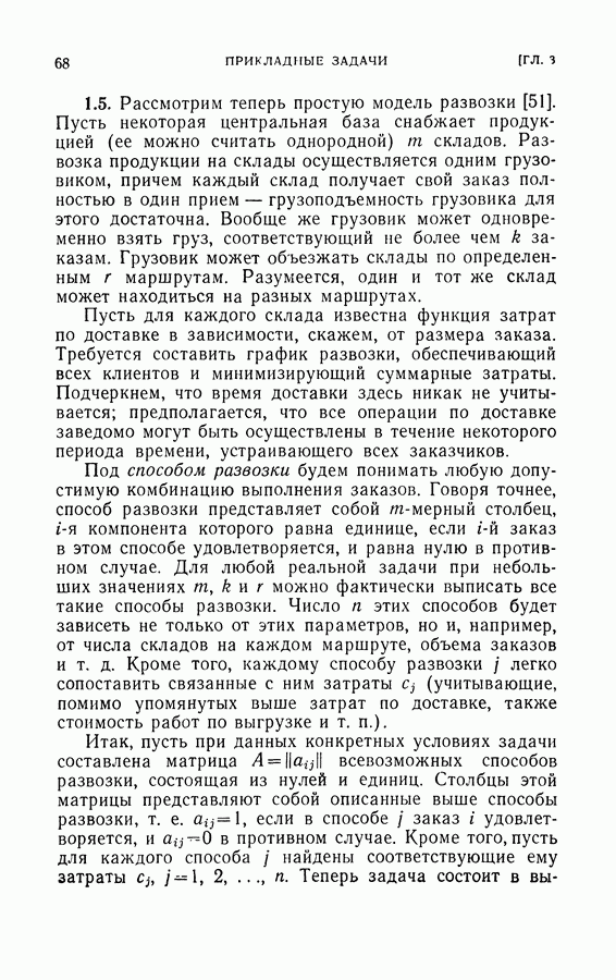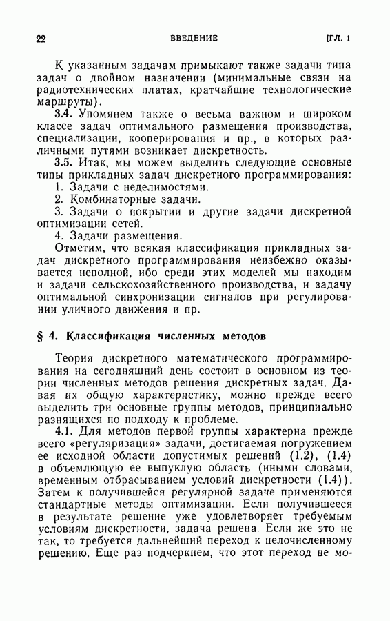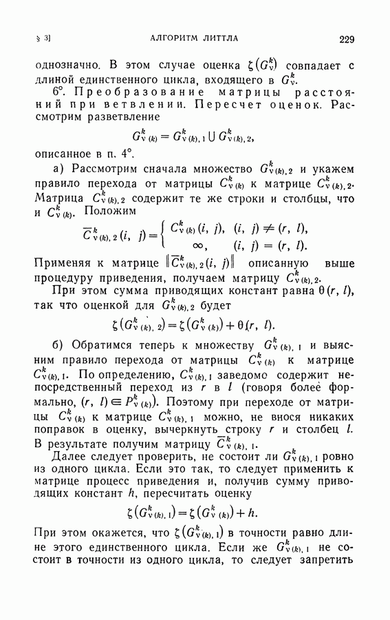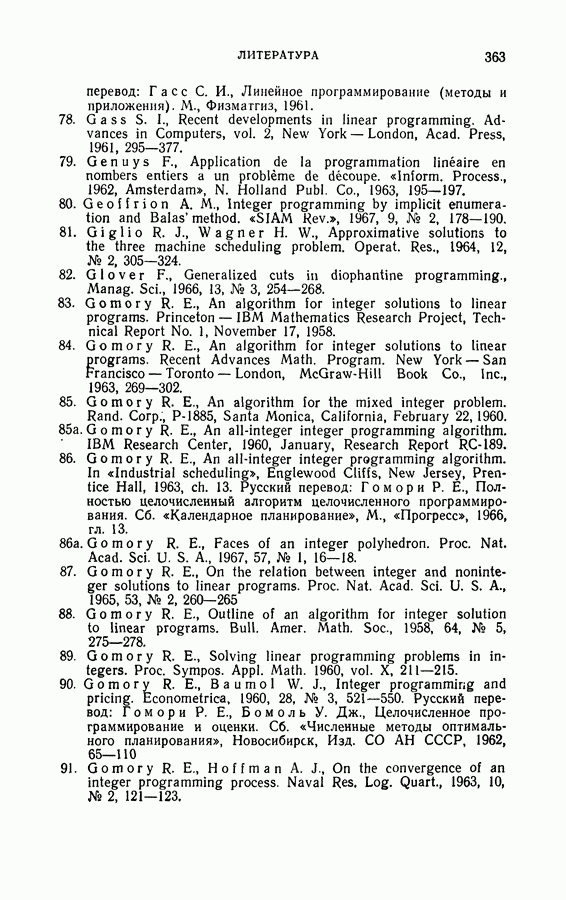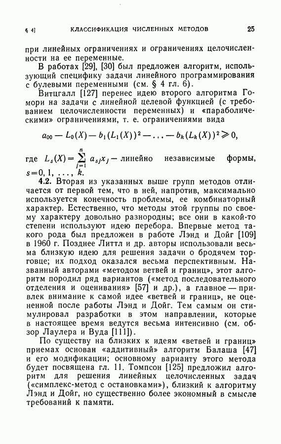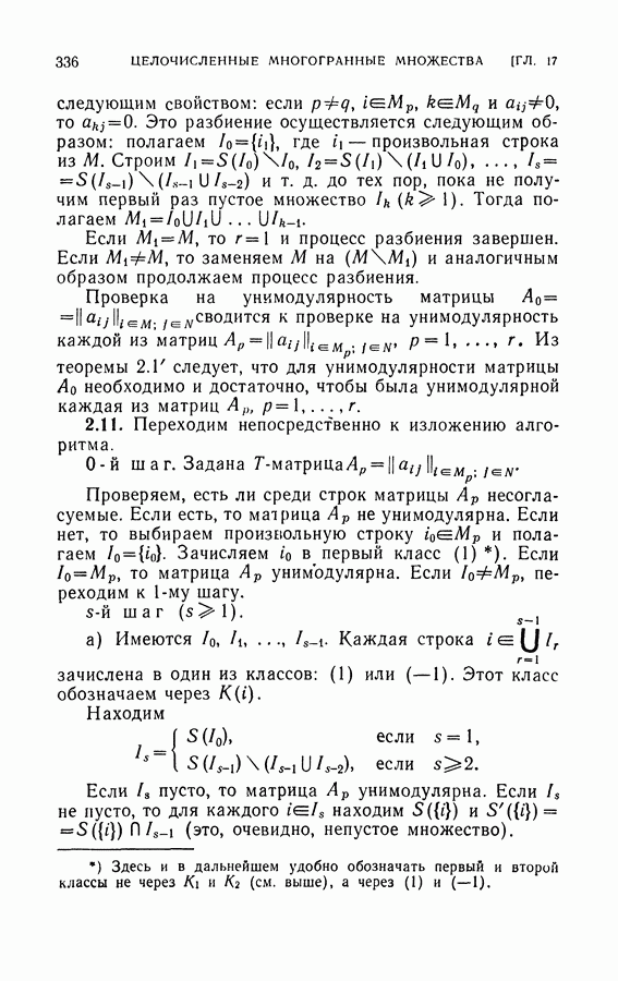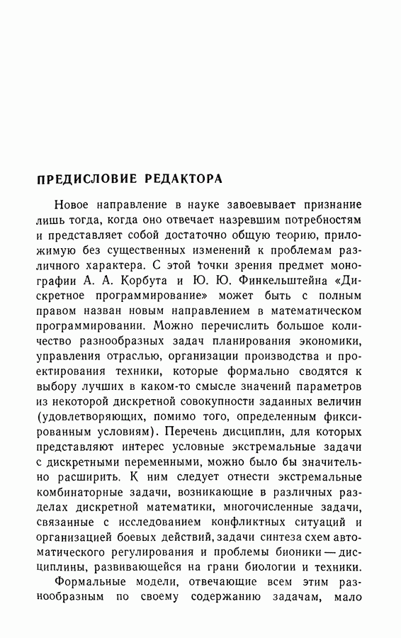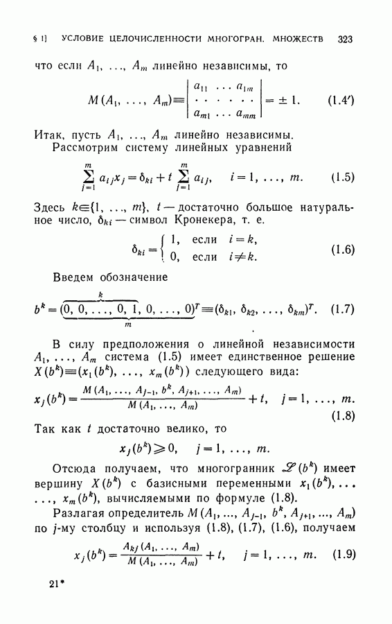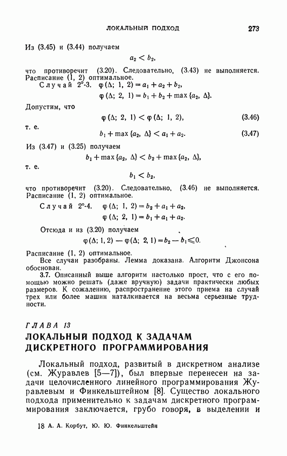 ГЛАВА 7. ТРЕТИЙ АЛГОРИТМ ГОМОРИ И ЕГО МОДИФИКАЦИЯВ этой главе излагается третий алгоритм Гомори [85а], [86], в литературе часто называемый полностью целочисленным, и при некоторых условиях доказывается его конечность. Приведен пример, когда эти условия нарушены и конечность алгоритма Гомори не имеет места. Предложена модификация алгоритма, обеспечивающая конечность при менее ограничительных условиях (пример и модификация алгоритма предложены Финкельштейном [32]). § 1 О влиянии ошибок округления. Идея третьего алгоритма Гомори1.1. Известно (см., например, Джекобе [101]), что влияние ошибок округления может привести к получению ошибочного решения при применении симплекс-метода (прямого или двойственного) в обычной задаче линейного программирования. При решении же с помощью изложенных выше алгоритмов целочисленной задачи линейного программирования влияние ошибок округления существенно усиливается по следующим причинам: 1) Увеличение объема вычислений из-за многократного применения в вычислениях при подсчете чисел типа дробных частей от округленных величин. В алгоритме Дальтона и Ллевелина место дробной части От вредного влияния ошибок округления свободен третий алгоритм, предложенный Гомори [86] для решения полностью целочисленной задачи линейного программирования: Максимизировать