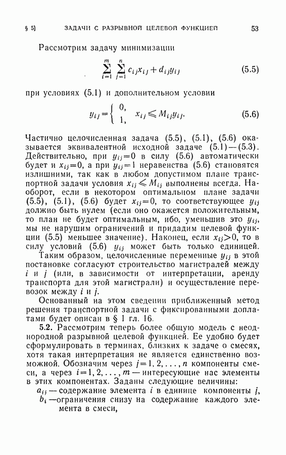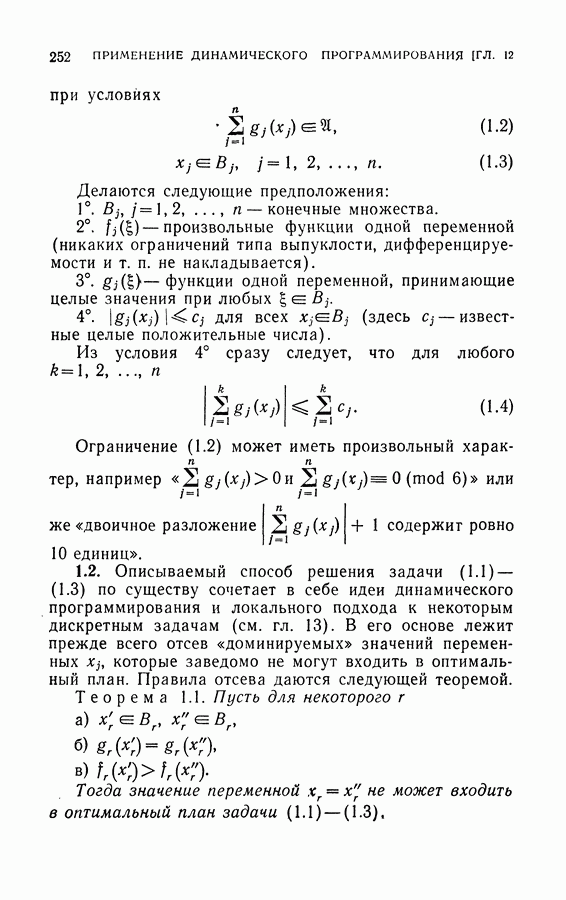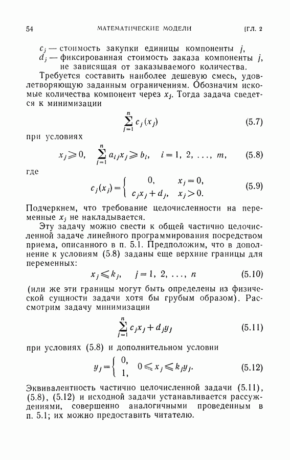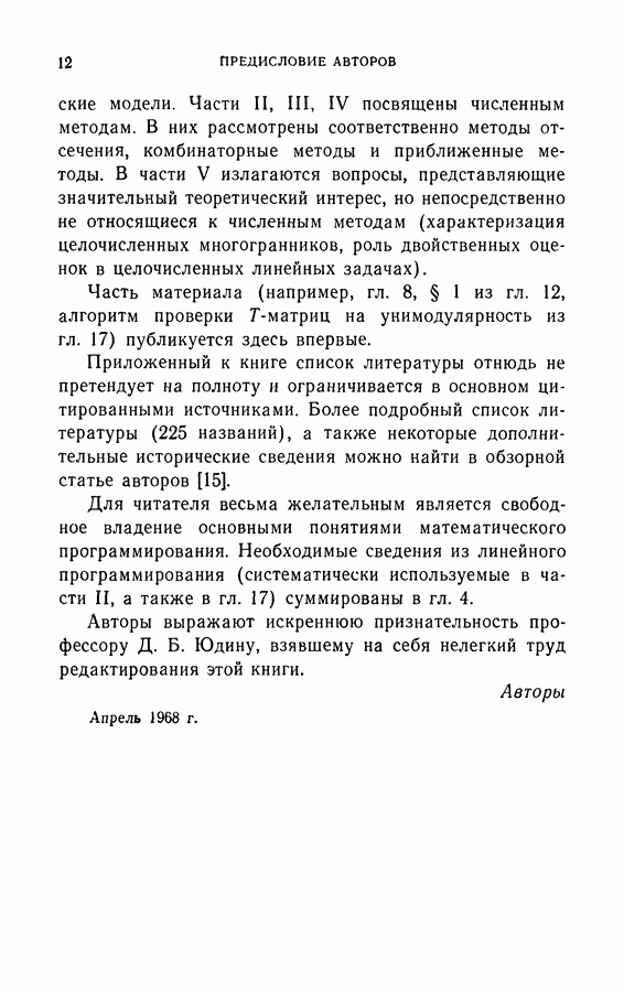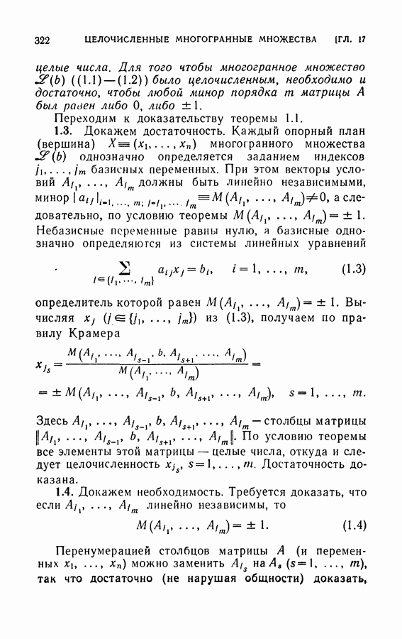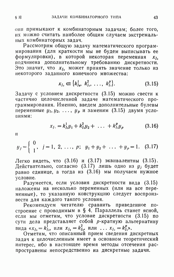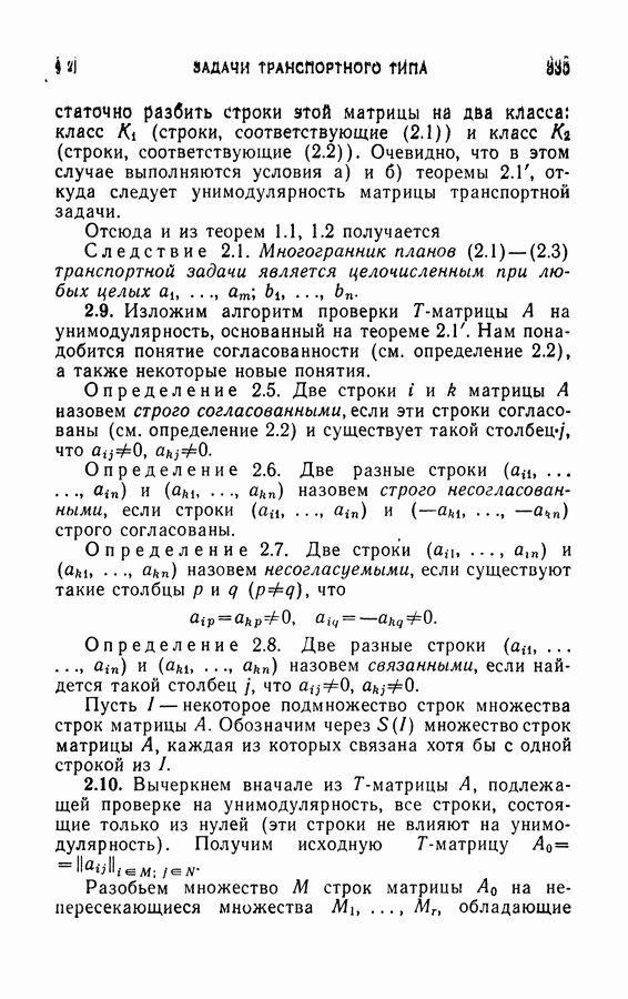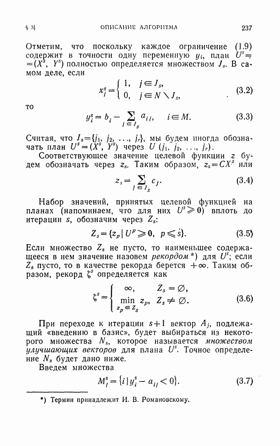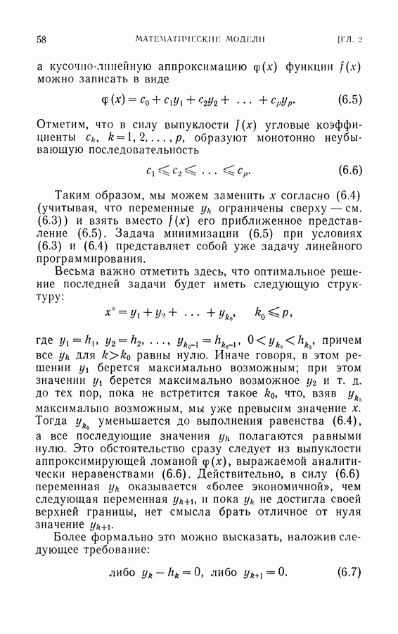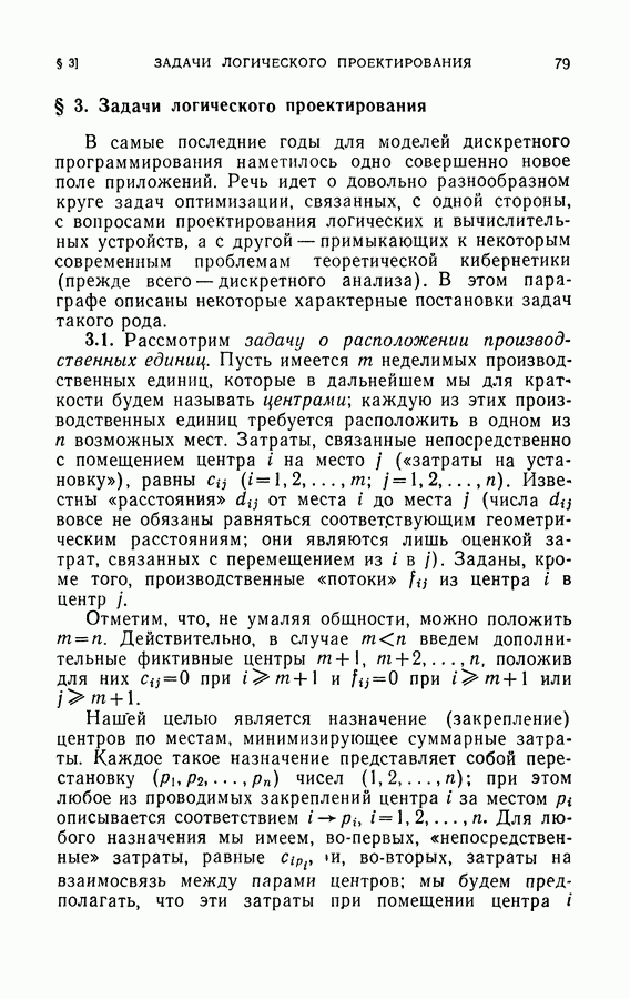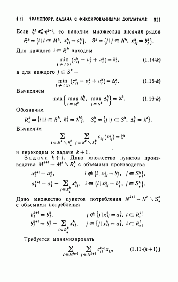 ГЛАВА 7. ТРЕТИЙ АЛГОРИТМ ГОМОРИ И ЕГО МОДИФИКАЦИЯВ этой главе излагается третий алгоритм Гомори [85а], [86], в литературе часто называемый полностью целочисленным, и при некоторых условиях доказывается его конечность. Приведен пример, когда эти условия нарушены и конечность алгоритма Гомори не имеет места. Предложена модификация алгоритма, обеспечивающая конечность при менее ограничительных условиях (пример и модификация алгоритма предложены Финкельштейном [32]). § 1 О влиянии ошибок округления. Идея третьего алгоритма Гомори1.1. Известно (см., например, Джекобе [101]), что влияние ошибок округления может привести к получению ошибочного решения при применении симплекс-метода (прямого или двойственного) в обычной задаче линейного программирования. При решении же с помощью изложенных выше алгоритмов целочисленной задачи линейного программирования влияние ошибок округления существенно усиливается по следующим причинам: 1) Увеличение объема вычислений из-за многократного применения в вычислениях при подсчете чисел типа дробных частей от округленных величин. В алгоритме Дальтона и Ллевелина место дробной части От вредного влияния ошибок округления свободен третий алгоритм, предложенный Гомори [86] для решения полностью целочисленной задачи линейного программирования: Максимизировать