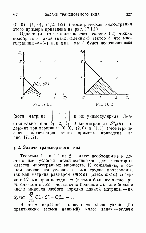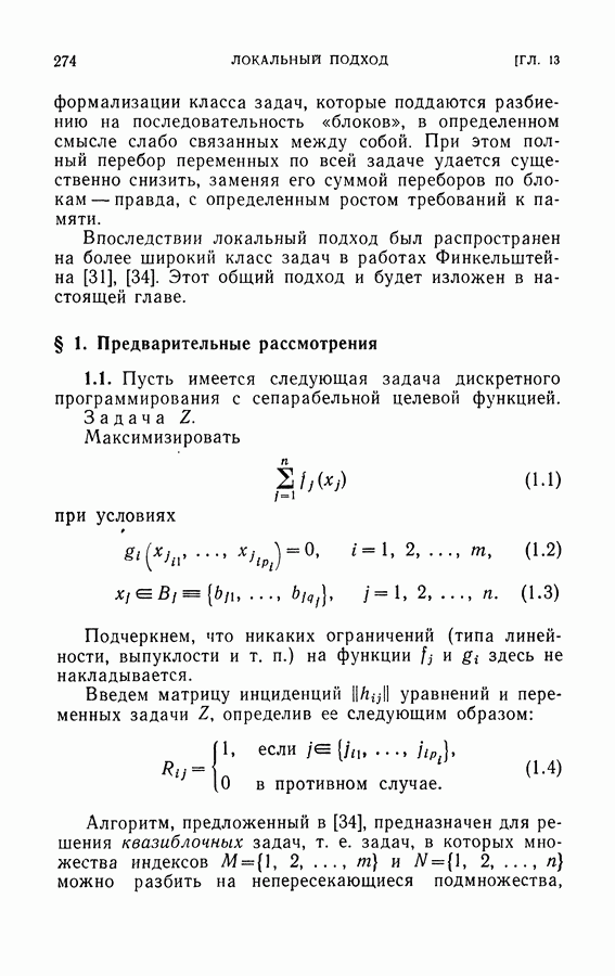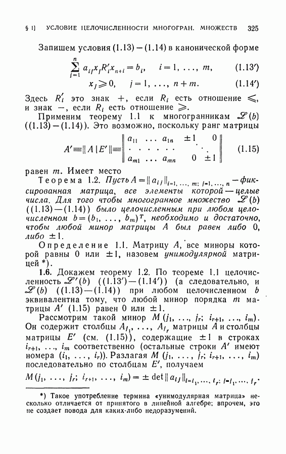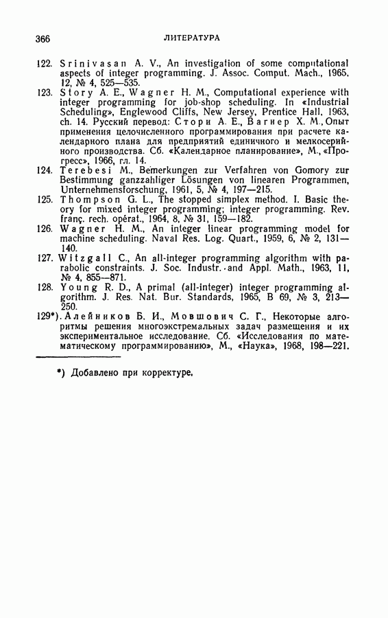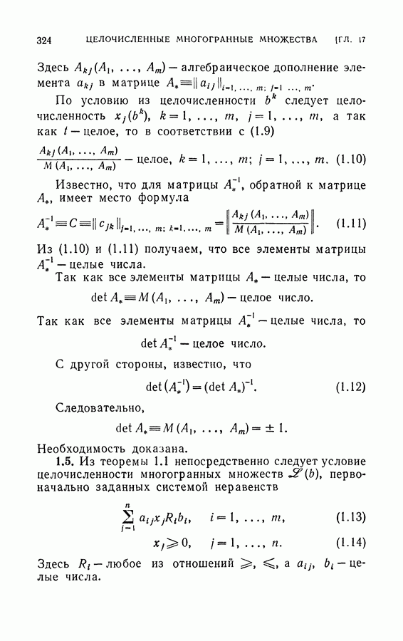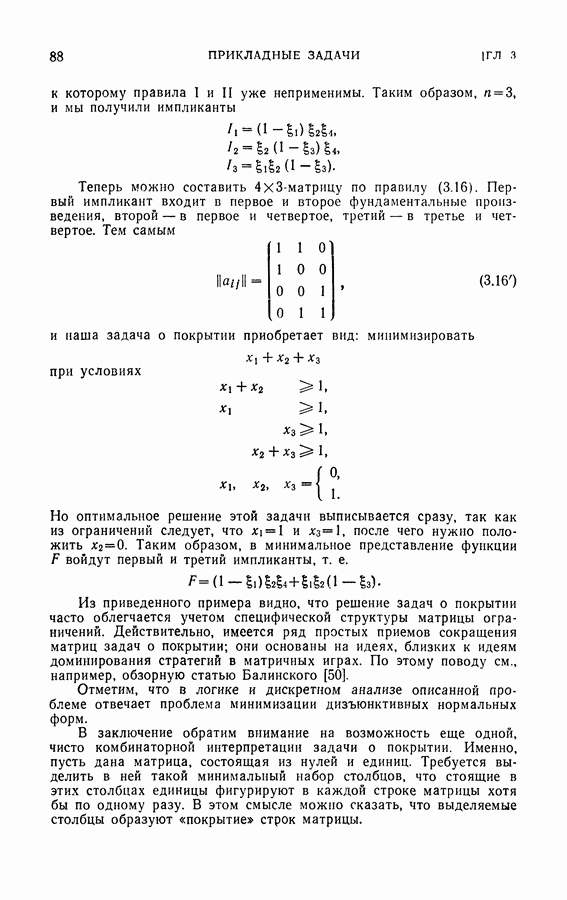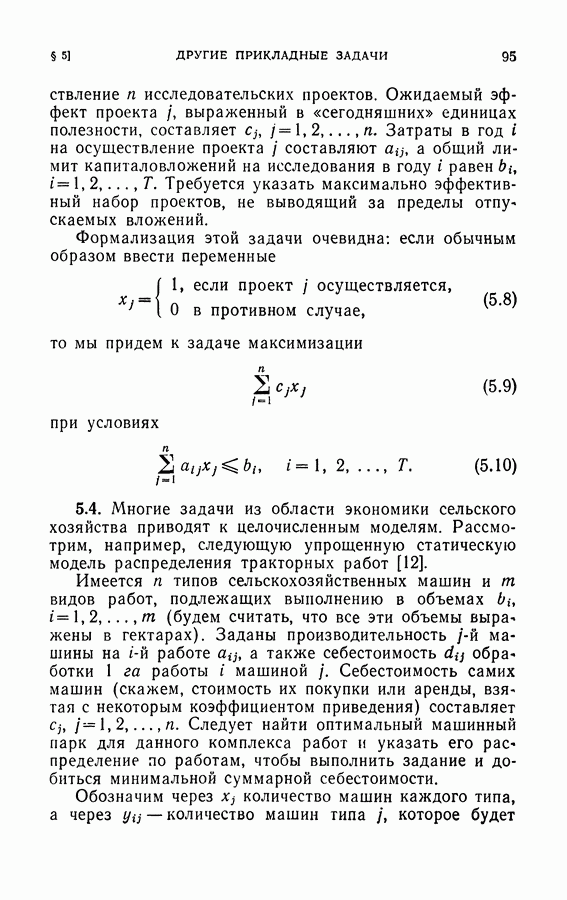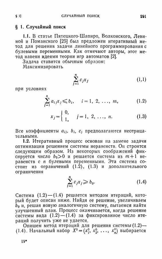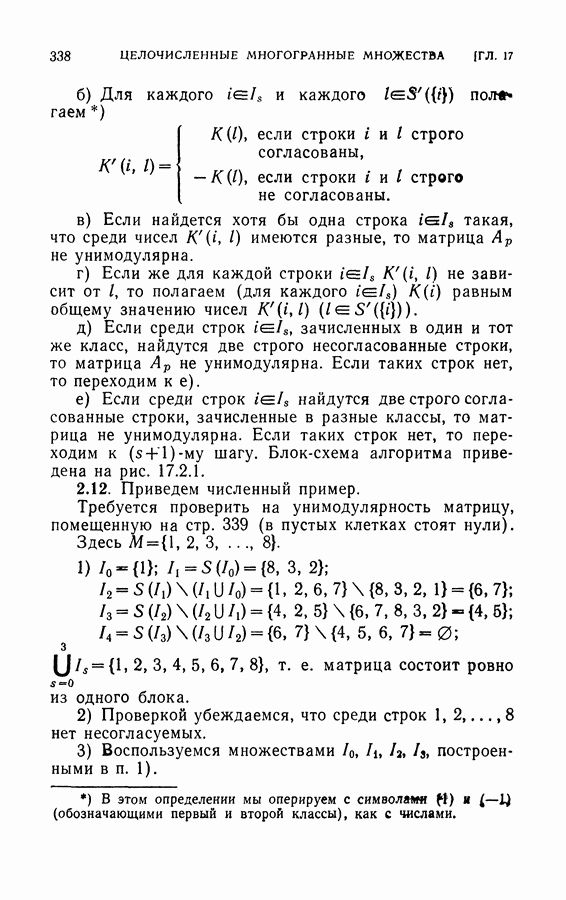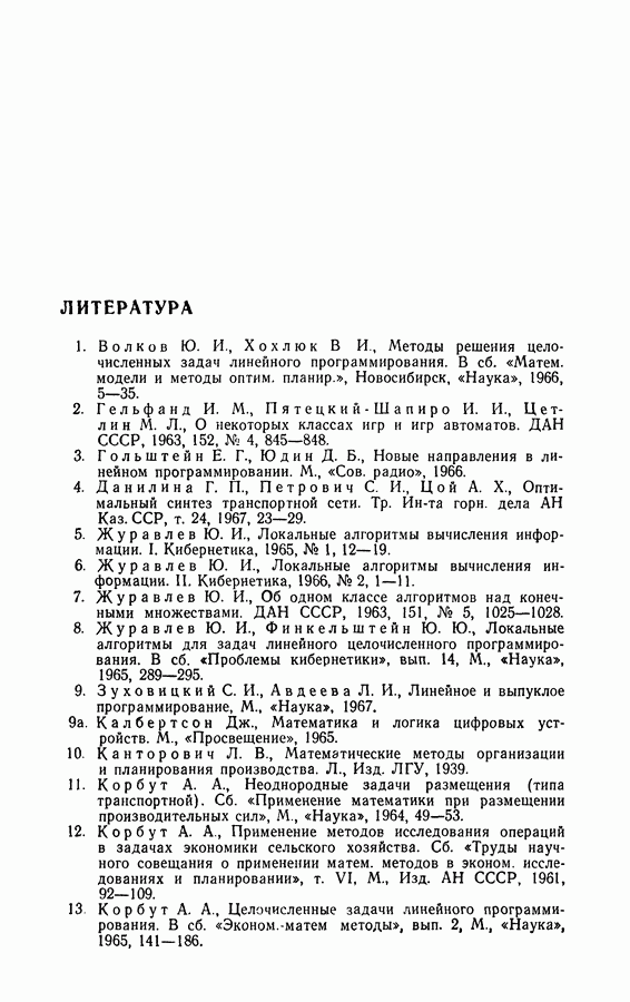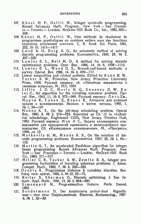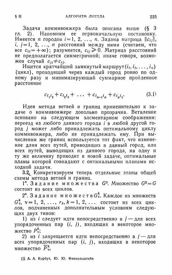 ГЛАВА 7. ТРЕТИЙ АЛГОРИТМ ГОМОРИ И ЕГО МОДИФИКАЦИЯВ этой главе излагается третий алгоритм Гомори [85а], [86], в литературе часто называемый полностью целочисленным, и при некоторых условиях доказывается его конечность. Приведен пример, когда эти условия нарушены и конечность алгоритма Гомори не имеет места. Предложена модификация алгоритма, обеспечивающая конечность при менее ограничительных условиях (пример и модификация алгоритма предложены Финкельштейном [32]). § 1 О влиянии ошибок округления. Идея третьего алгоритма Гомори1.1. Известно (см., например, Джекобе [101]), что влияние ошибок округления может привести к получению ошибочного решения при применении симплекс-метода (прямого или двойственного) в обычной задаче линейного программирования. При решении же с помощью изложенных выше алгоритмов целочисленной задачи линейного программирования влияние ошибок округления существенно усиливается по следующим причинам: 1) Увеличение объема вычислений из-за многократного применения в вычислениях при подсчете чисел типа дробных частей от округленных величин. В алгоритме Дальтона и Ллевелина место дробной части От вредного влияния ошибок округления свободен третий алгоритм, предложенный Гомори [86] для решения полностью целочисленной задачи линейного программирования: Максимизировать