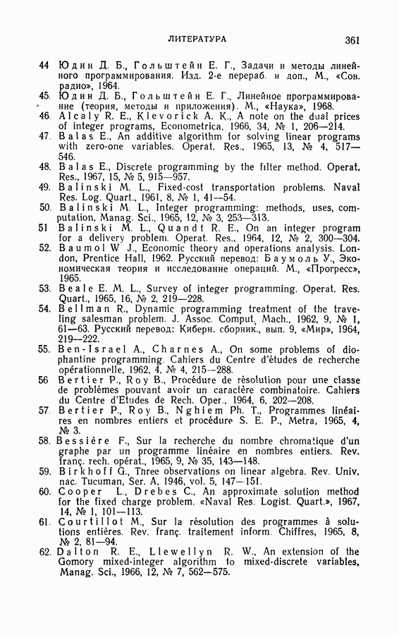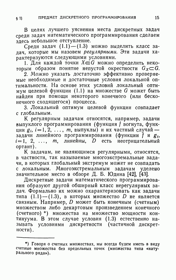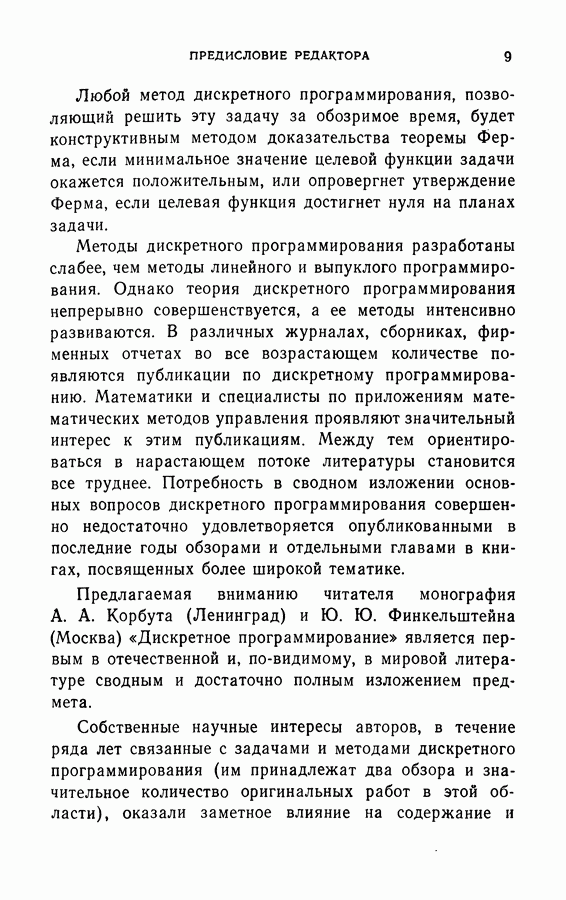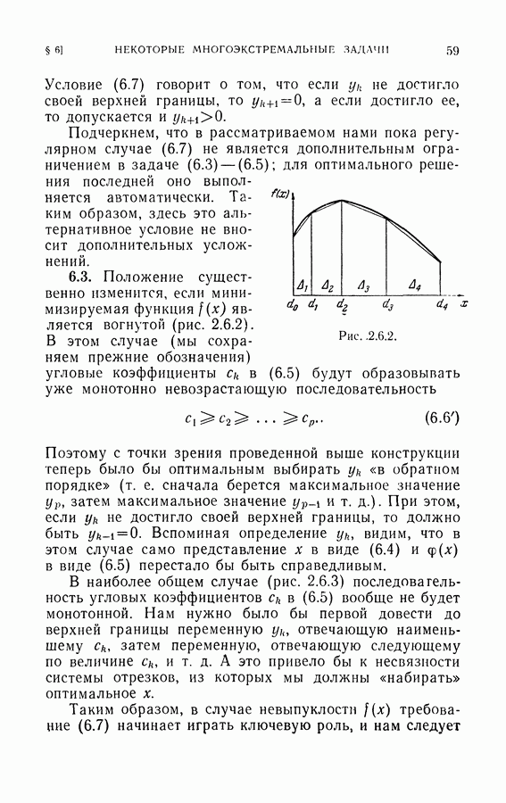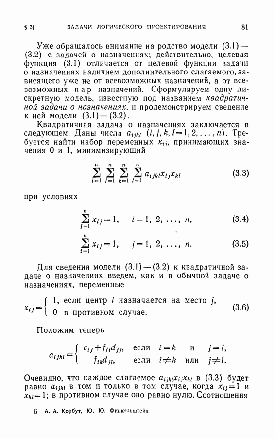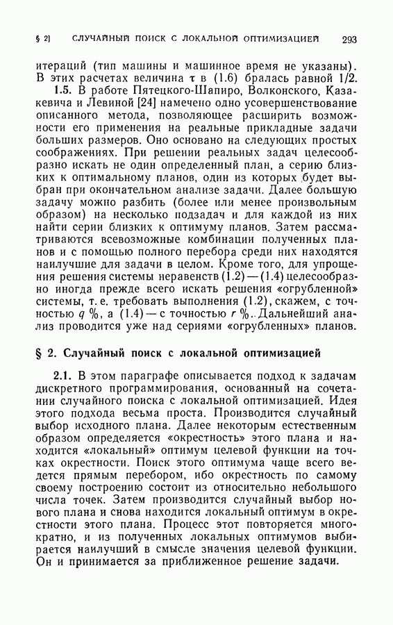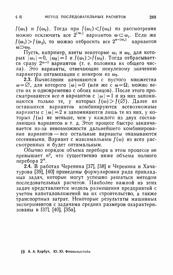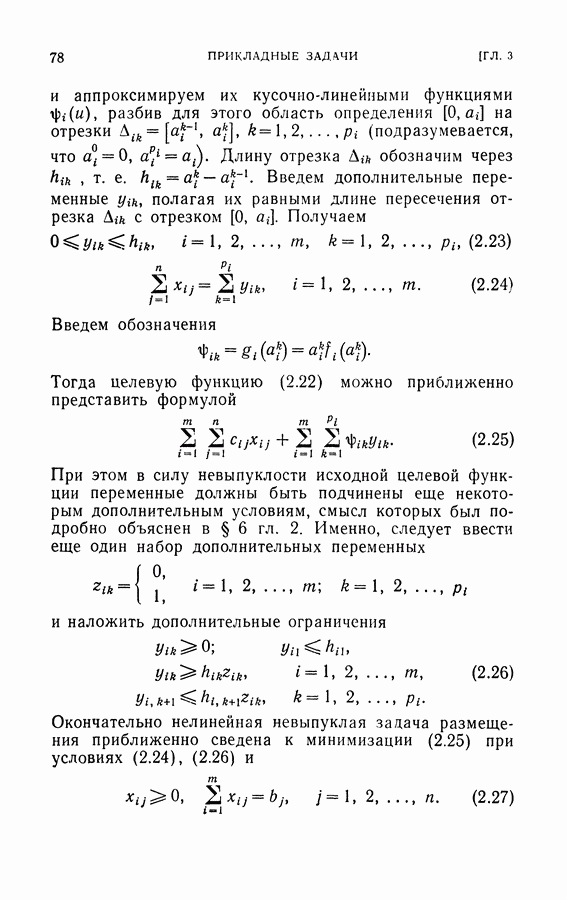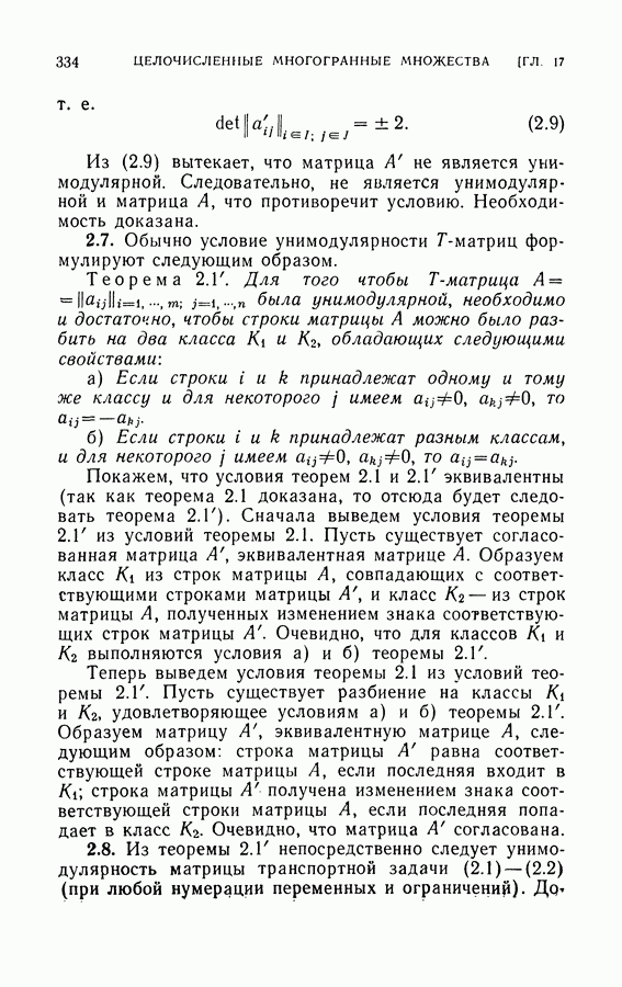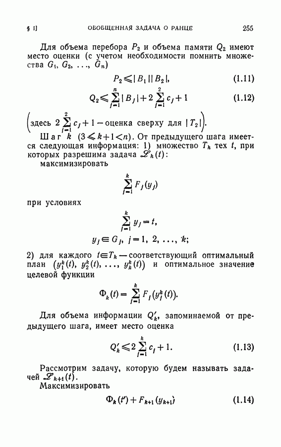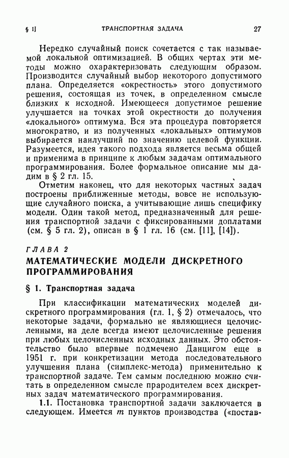 ГЛАВА 7. ТРЕТИЙ АЛГОРИТМ ГОМОРИ И ЕГО МОДИФИКАЦИЯВ этой главе излагается третий алгоритм Гомори [85а], [86], в литературе часто называемый полностью целочисленным, и при некоторых условиях доказывается его конечность. Приведен пример, когда эти условия нарушены и конечность алгоритма Гомори не имеет места. Предложена модификация алгоритма, обеспечивающая конечность при менее ограничительных условиях (пример и модификация алгоритма предложены Финкельштейном [32]). § 1 О влиянии ошибок округления. Идея третьего алгоритма Гомори1.1. Известно (см., например, Джекобе [101]), что влияние ошибок округления может привести к получению ошибочного решения при применении симплекс-метода (прямого или двойственного) в обычной задаче линейного программирования. При решении же с помощью изложенных выше алгоритмов целочисленной задачи линейного программирования влияние ошибок округления существенно усиливается по следующим причинам: 1) Увеличение объема вычислений из-за многократного применения в вычислениях при подсчете чисел типа дробных частей от округленных величин. В алгоритме Дальтона и Ллевелина место дробной части От вредного влияния ошибок округления свободен третий алгоритм, предложенный Гомори [86] для решения полностью целочисленной задачи линейного программирования: Максимизировать