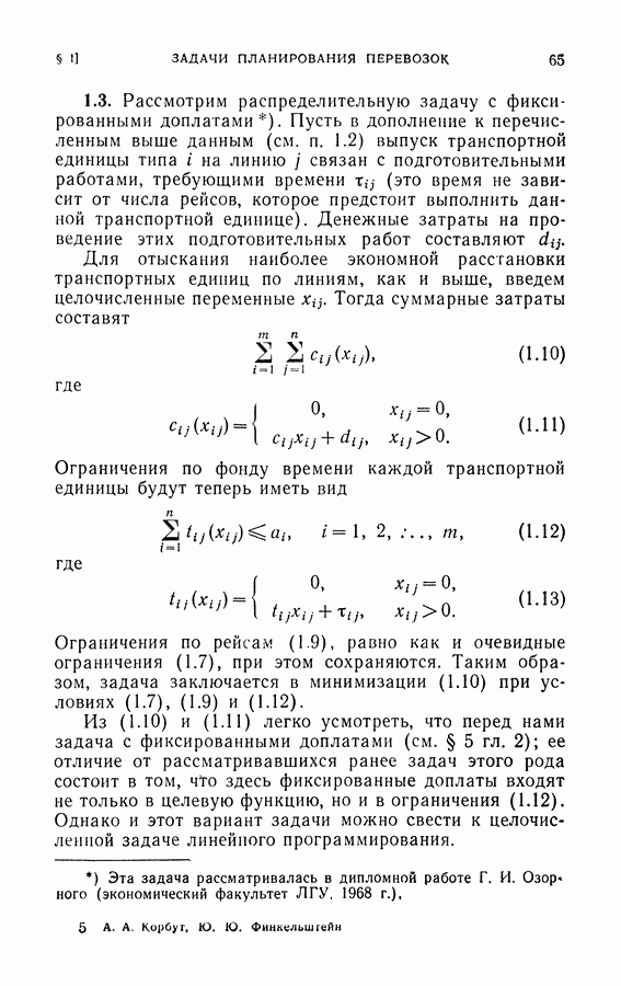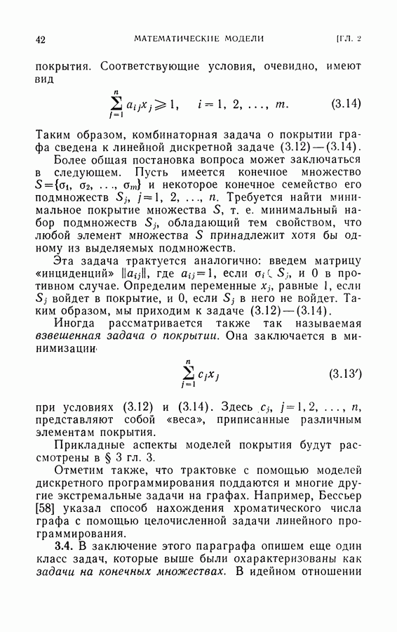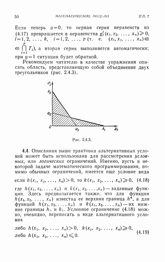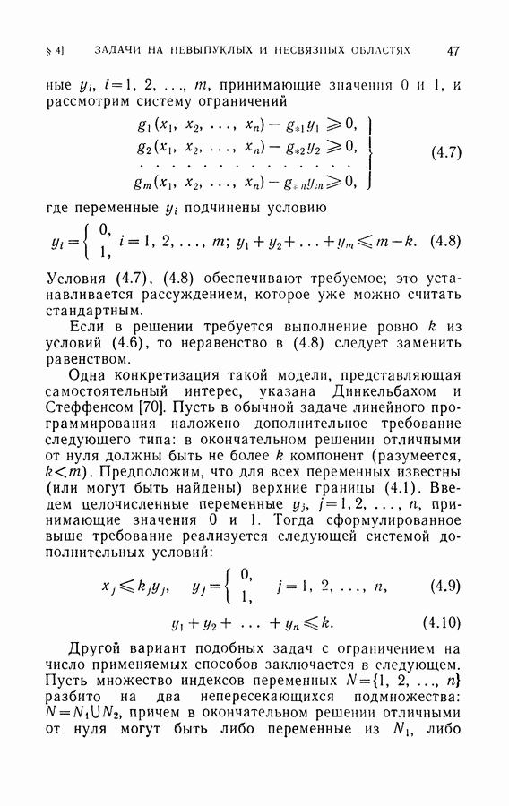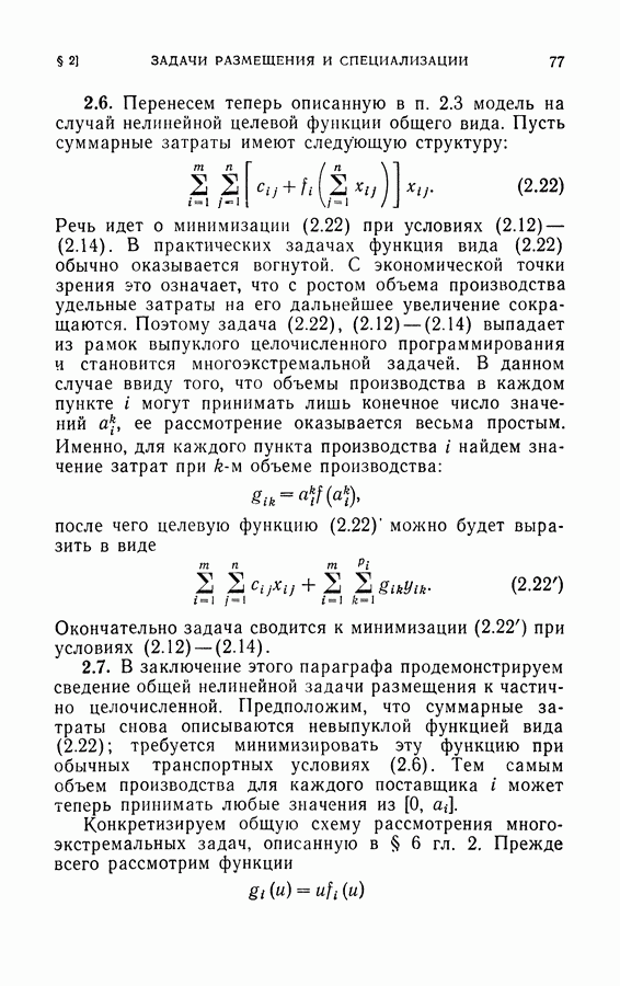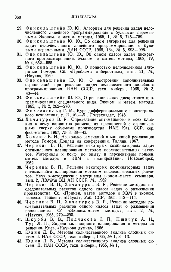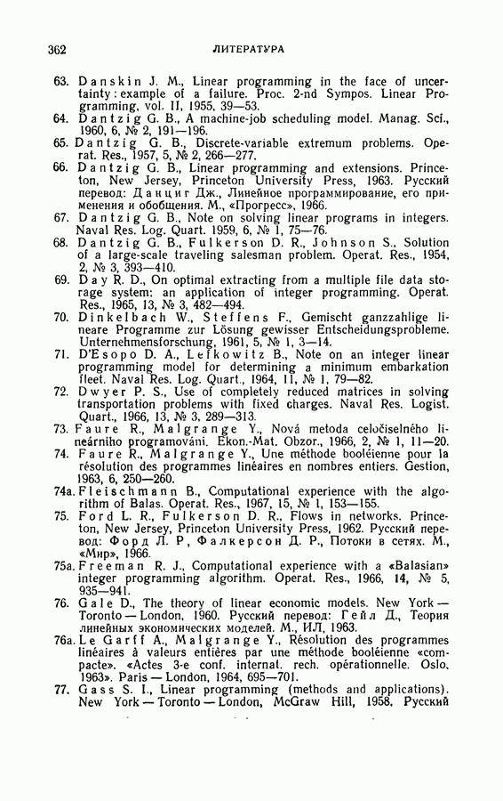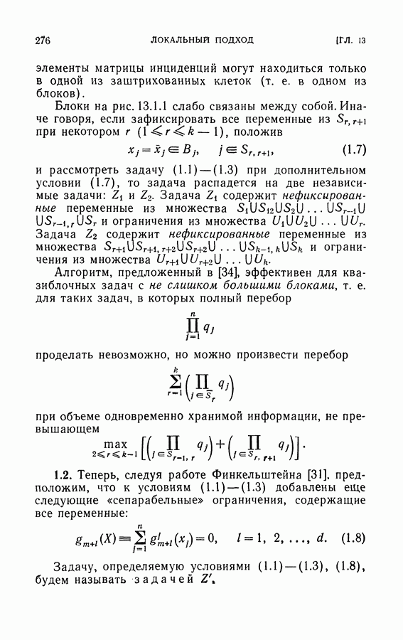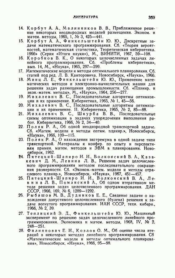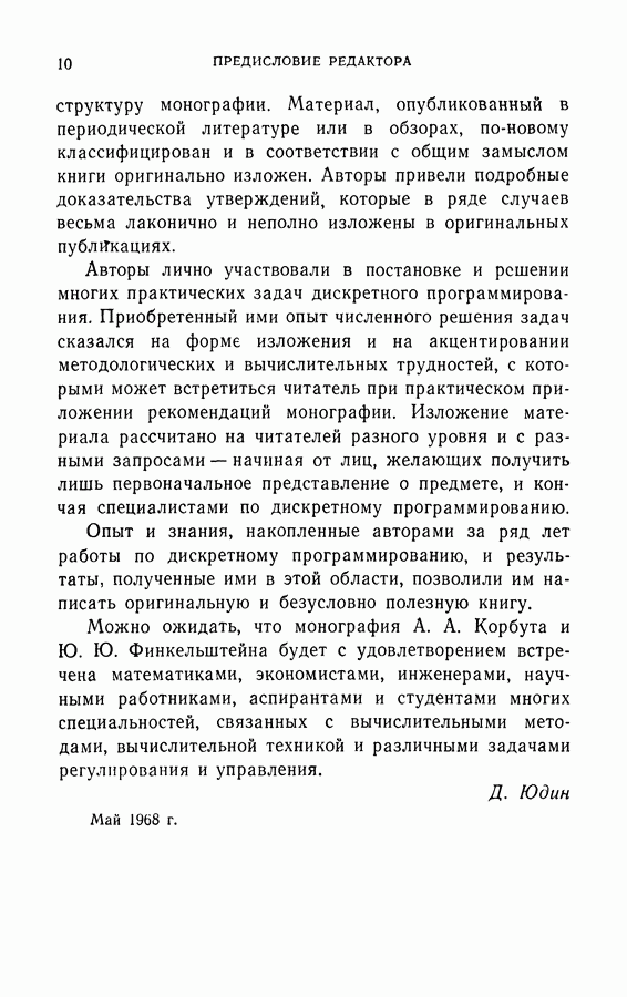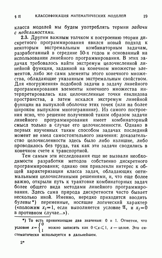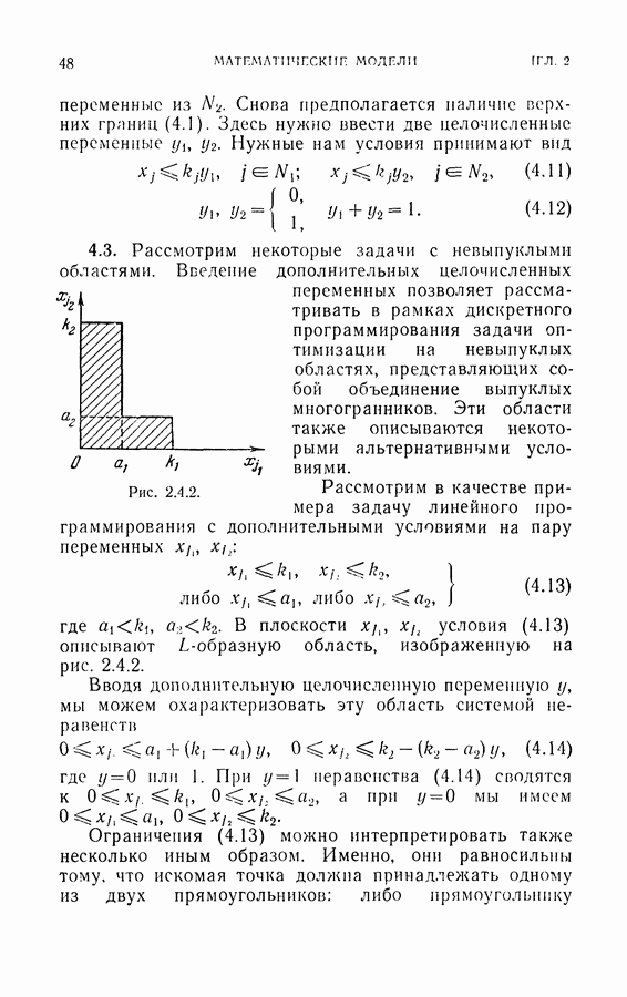 ГЛАВА 7. ТРЕТИЙ АЛГОРИТМ ГОМОРИ И ЕГО МОДИФИКАЦИЯВ этой главе излагается третий алгоритм Гомори [85а], [86], в литературе часто называемый полностью целочисленным, и при некоторых условиях доказывается его конечность. Приведен пример, когда эти условия нарушены и конечность алгоритма Гомори не имеет места. Предложена модификация алгоритма, обеспечивающая конечность при менее ограничительных условиях (пример и модификация алгоритма предложены Финкельштейном [32]). § 1 О влиянии ошибок округления. Идея третьего алгоритма Гомори1.1. Известно (см., например, Джекобе [101]), что влияние ошибок округления может привести к получению ошибочного решения при применении симплекс-метода (прямого или двойственного) в обычной задаче линейного программирования. При решении же с помощью изложенных выше алгоритмов целочисленной задачи линейного программирования влияние ошибок округления существенно усиливается по следующим причинам: 1) Увеличение объема вычислений из-за многократного применения в вычислениях при подсчете чисел типа дробных частей от округленных величин. В алгоритме Дальтона и Ллевелина место дробной части От вредного влияния ошибок округления свободен третий алгоритм, предложенный Гомори [86] для решения полностью целочисленной задачи линейного программирования: Максимизировать