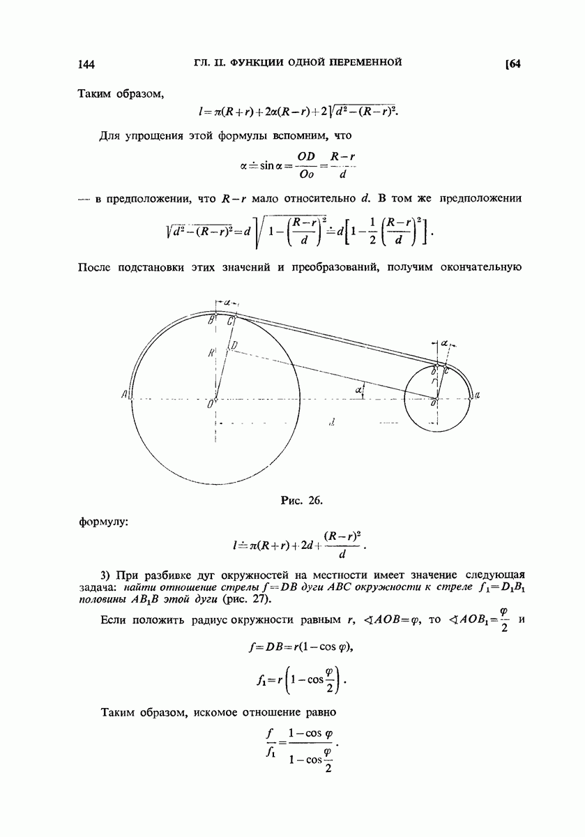 3) При разбивке дуг окружностей на местности имеет значение следующая задача: найти отношение стрелы