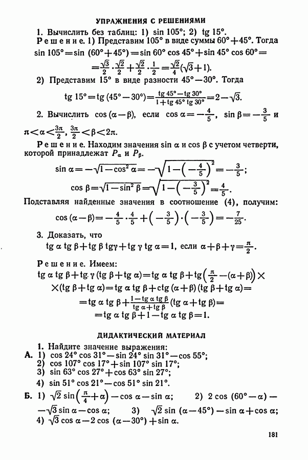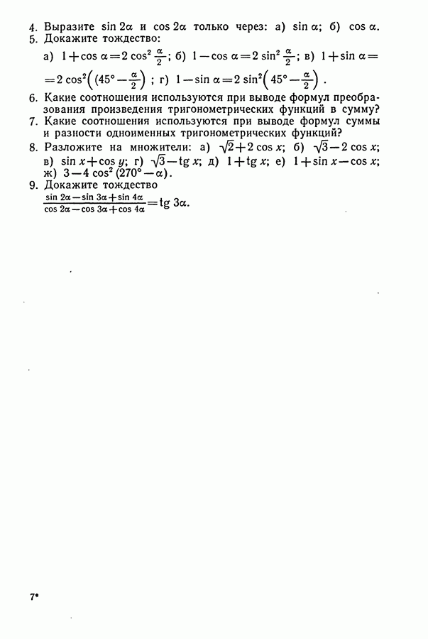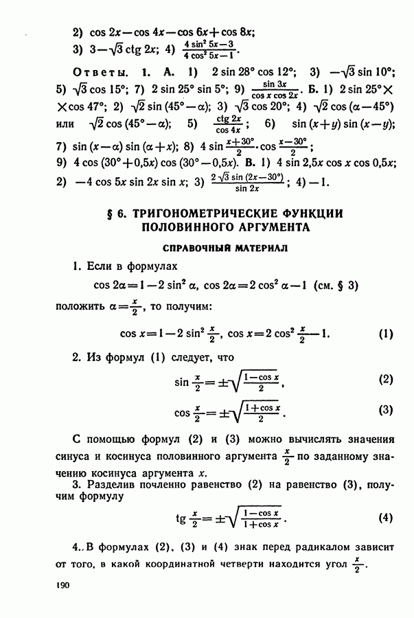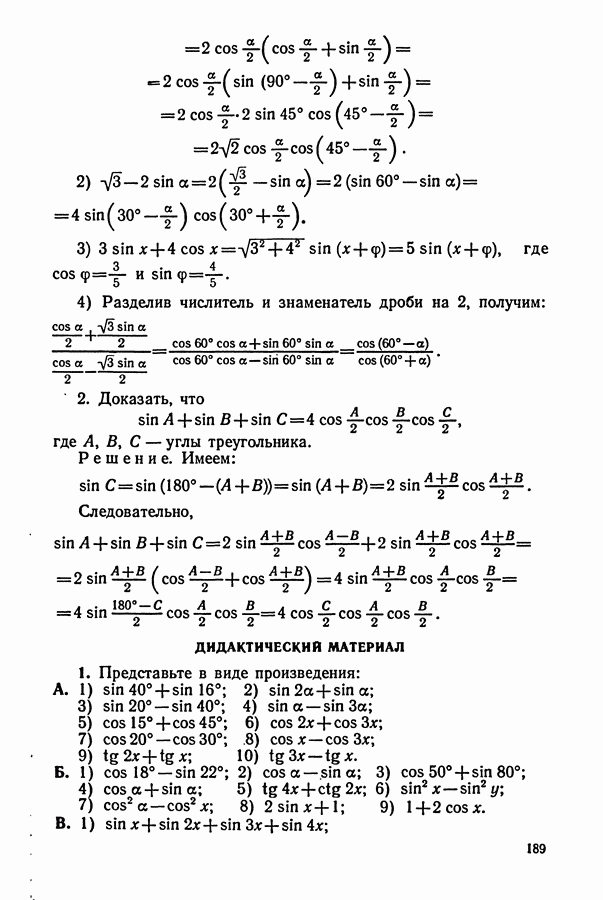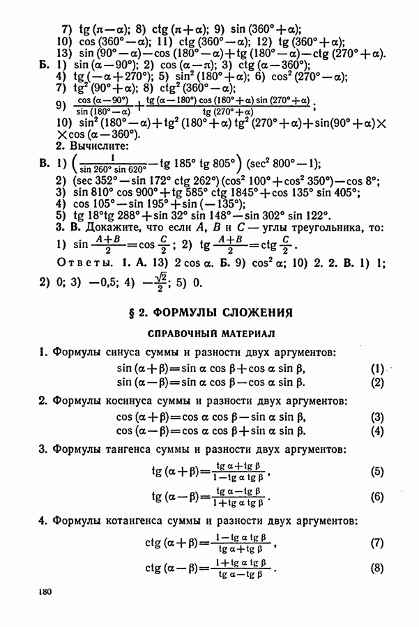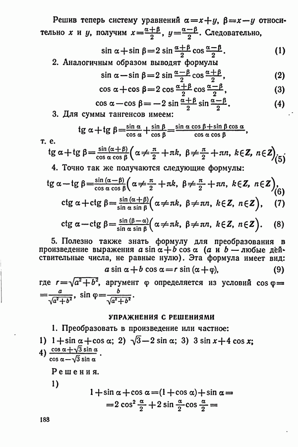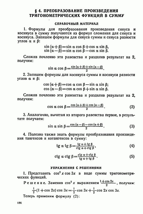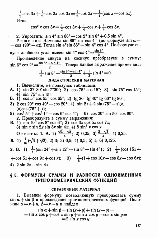 § 5. ФОРМУЛЫ СУММЫ И РАЗНОСТИ ОДНОИМЕННЫХ ТРИГОНОМЕТРИЧЕСКИХ ФУНКЦИЙ