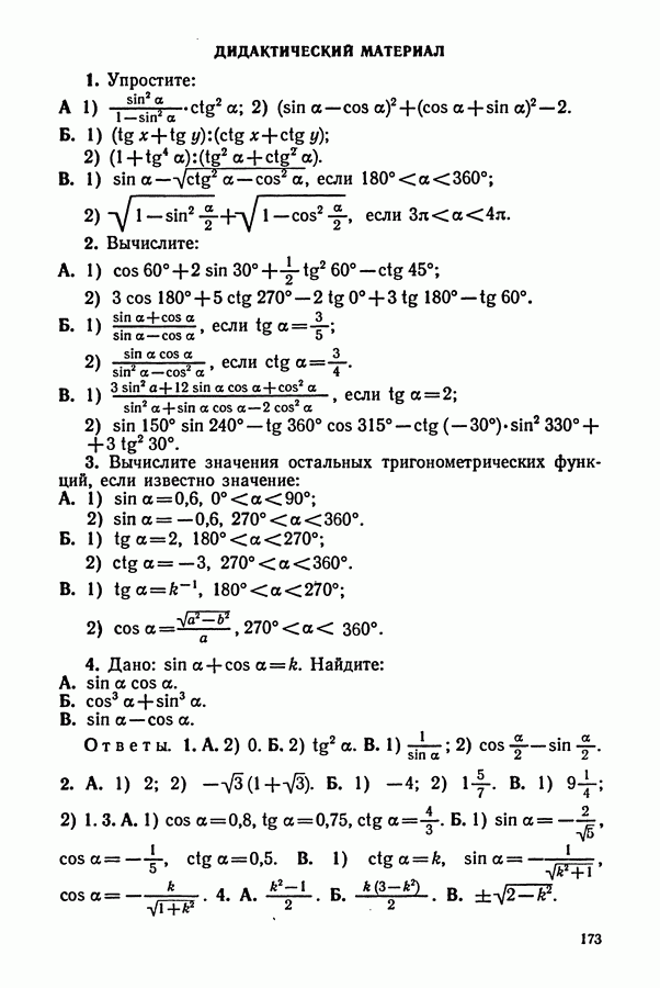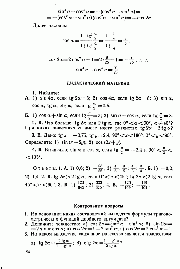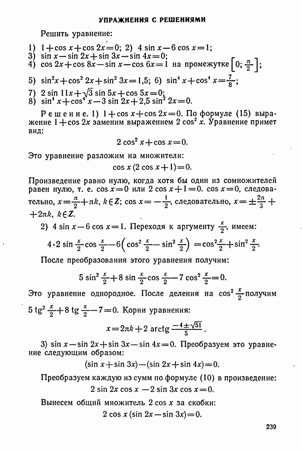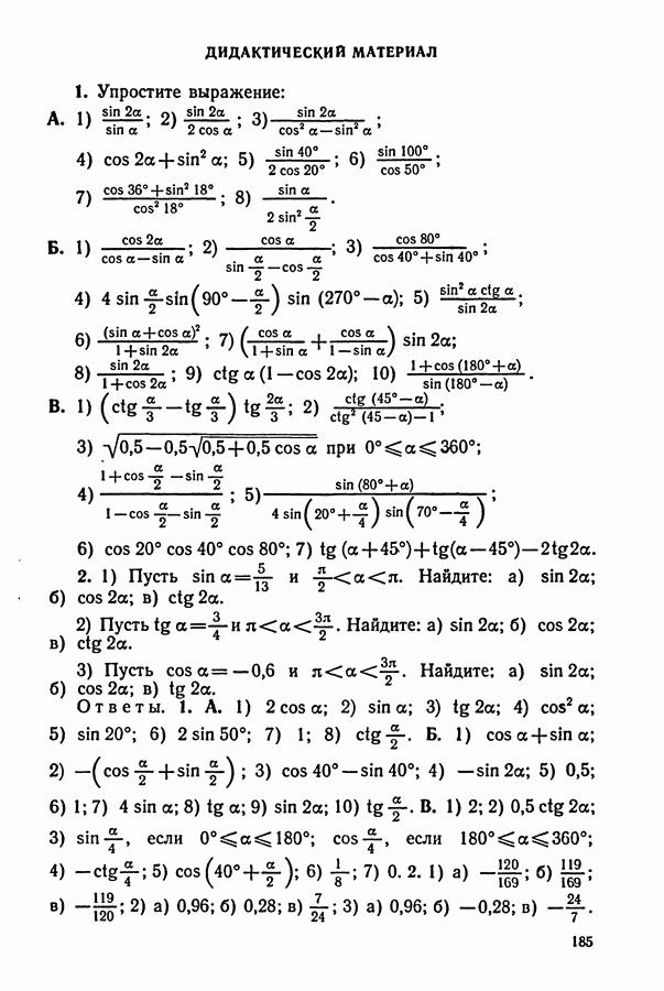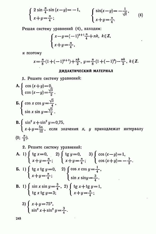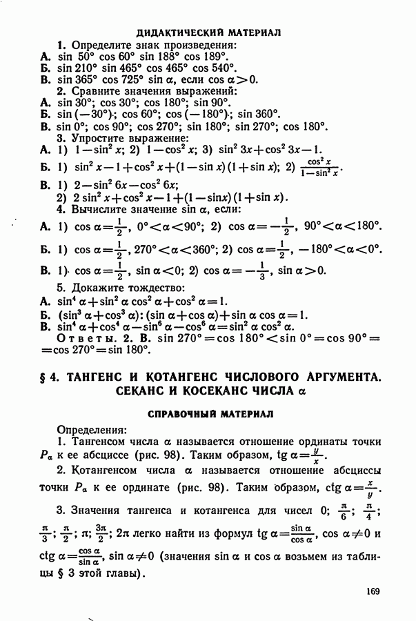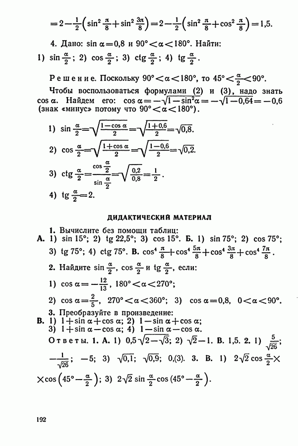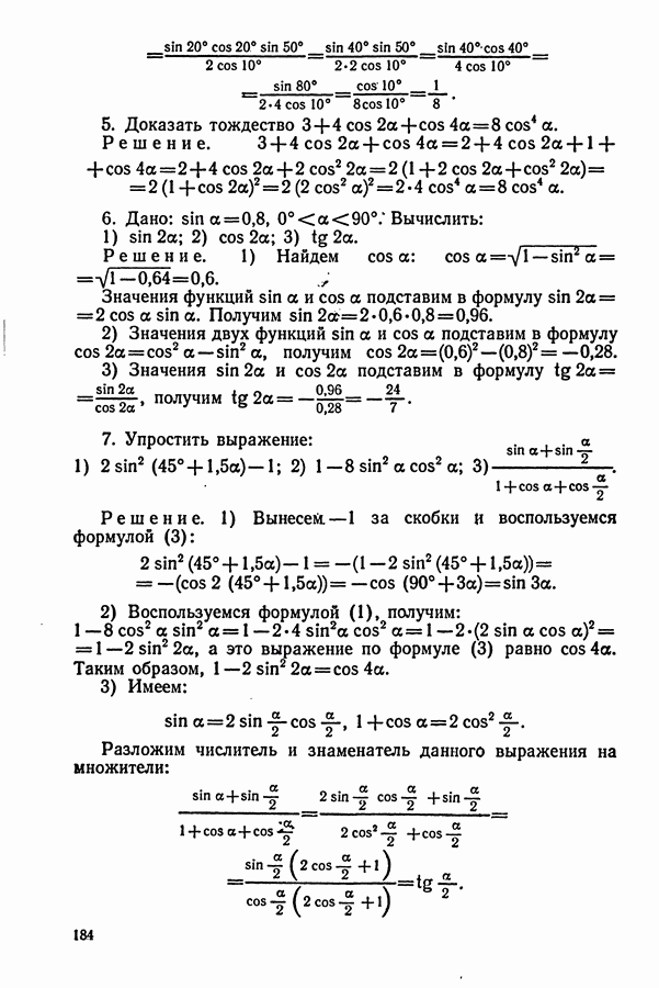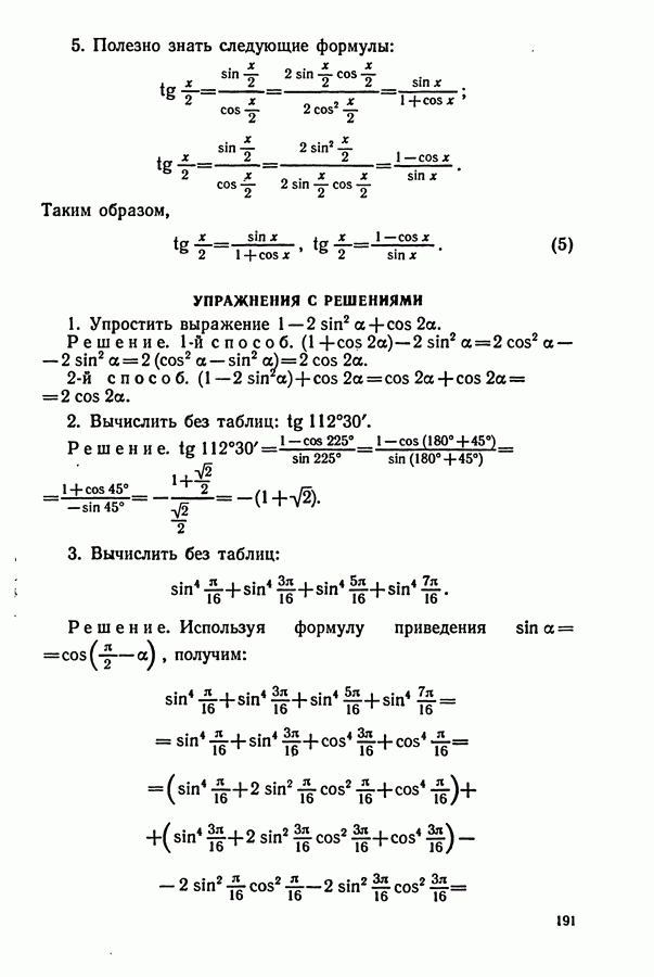 § 5. ФОРМУЛЫ СУММЫ И РАЗНОСТИ ОДНОИМЕННЫХ ТРИГОНОМЕТРИЧЕСКИХ ФУНКЦИЙ