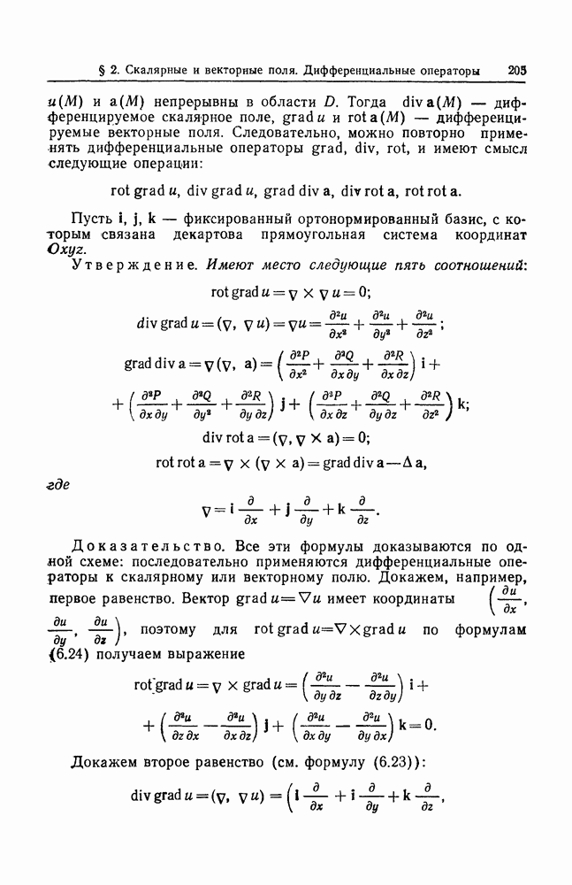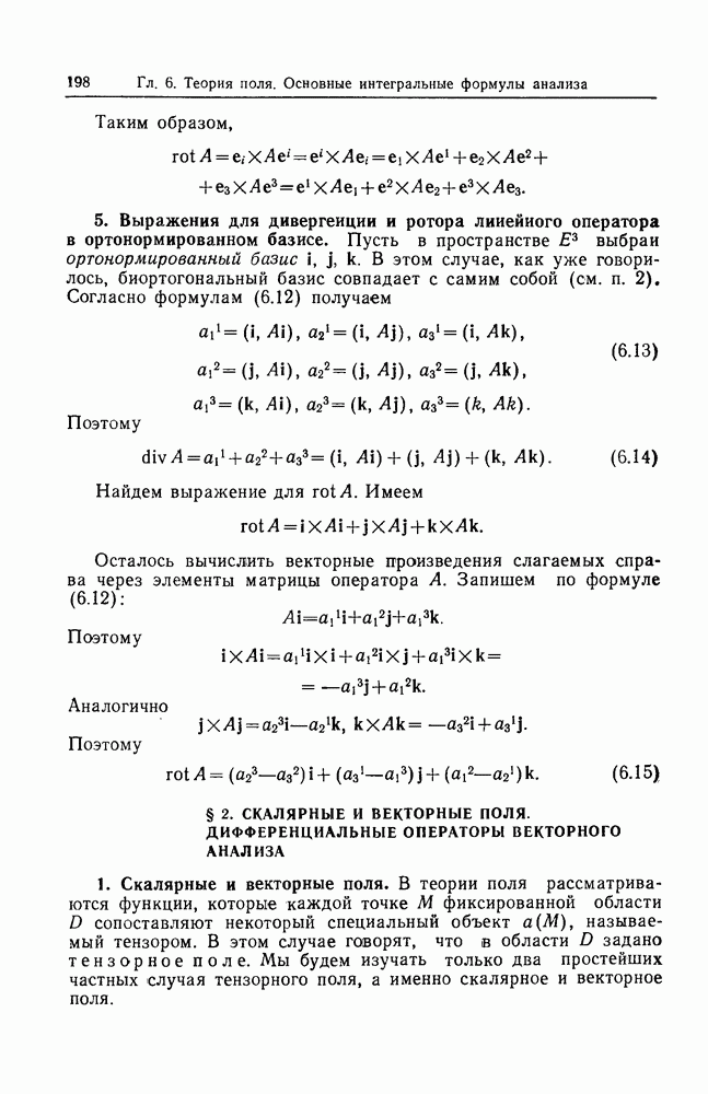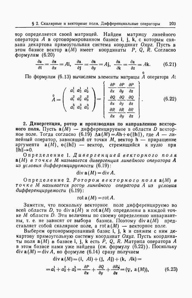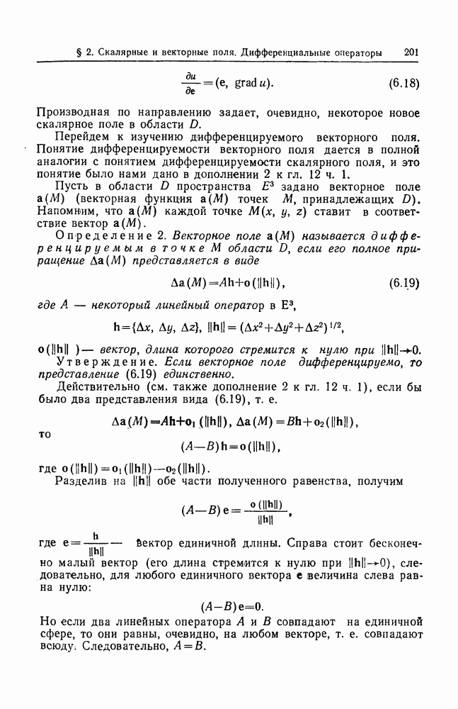 Утверждение. Если векторное поле дифференцируемо, то представление (6.19) единственно. Действительно (см. также дополнение 2 к гл. 12 ч. 1), если бы было два представления вида (6.19), т. е.