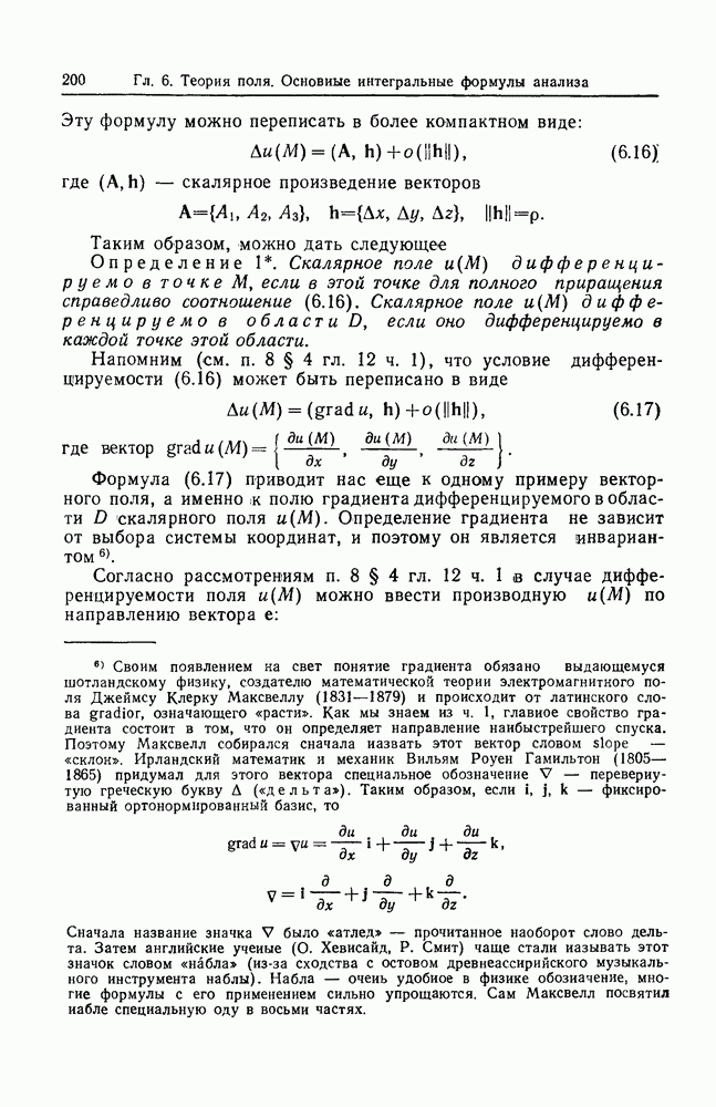 Таким образом, можно дать следующее Определение 1. Скалярное поле Напомним (см. п. 8 § 4 гл. 12 ч. 1), что условие дифференцируемости (6.16) может быть переписано в виде