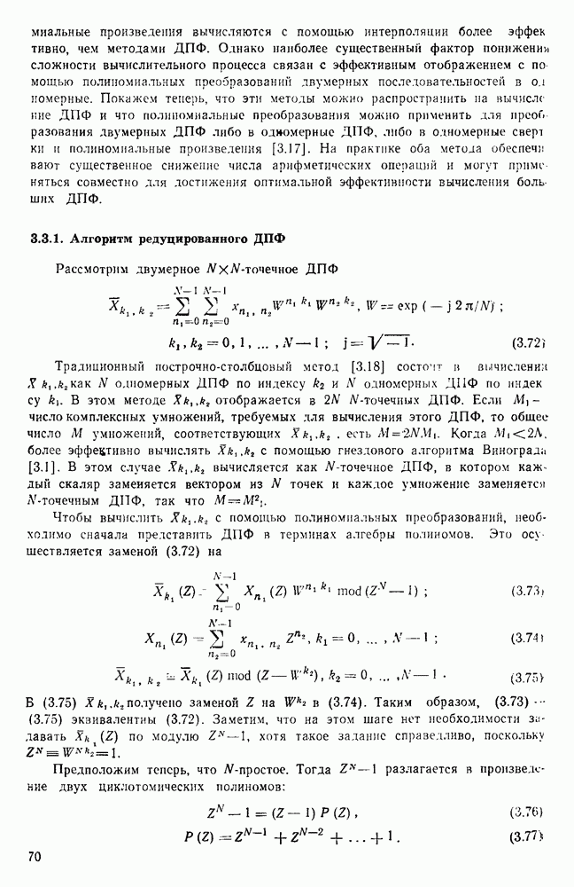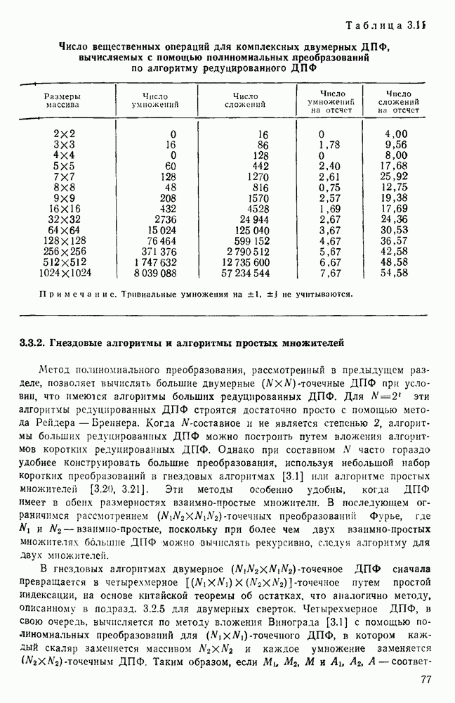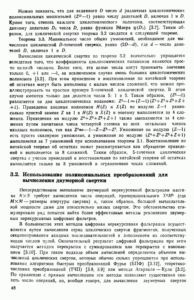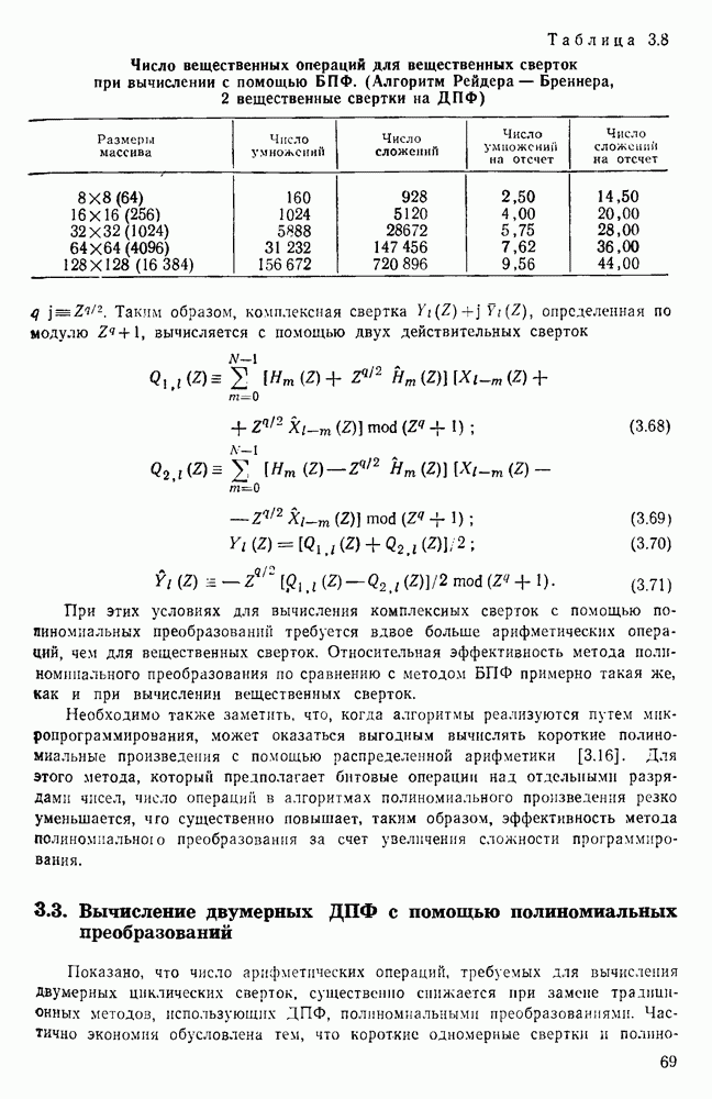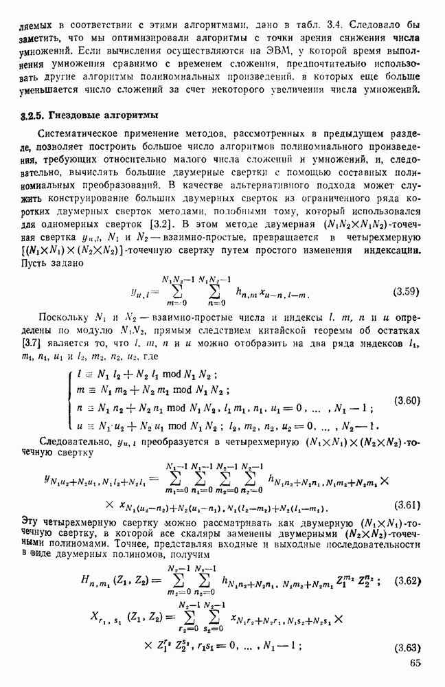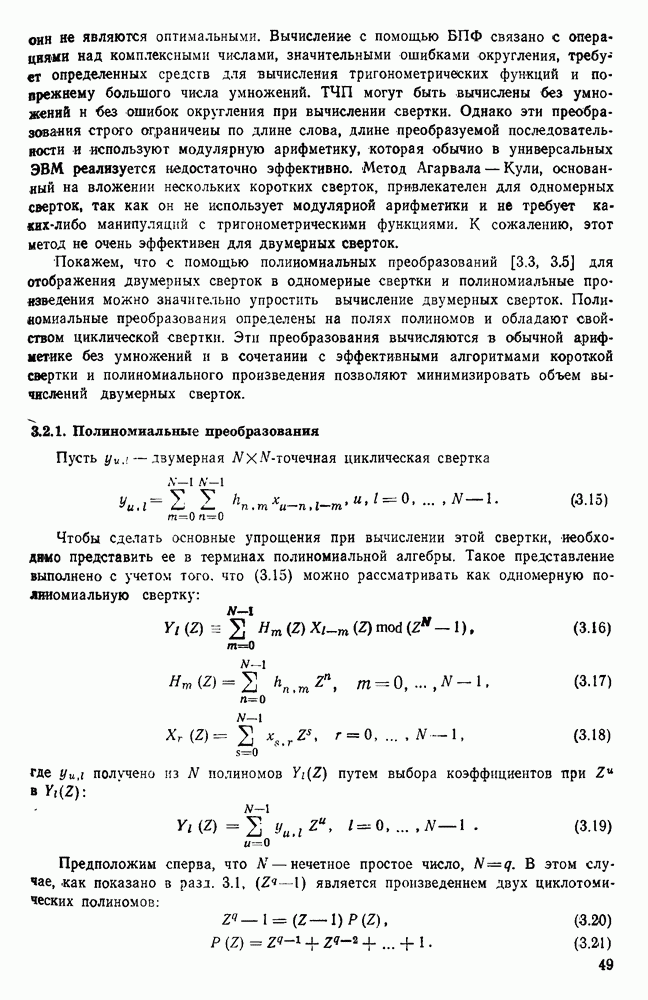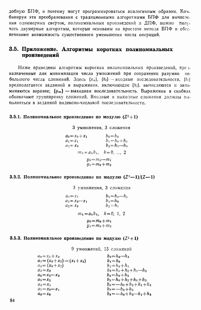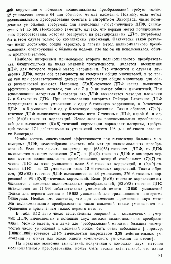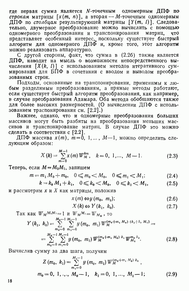 подобную БПФ, и поэтому могут программироваться аналогичным образом. Комбинируя эти преобразования с традиционными алгоритмами БПФ для вычисления одномерных сверток, полиномиальных произведений и ДПФ, можно получить двумерные алгоритмы, которые основаны на простоте метода БПФ и обеспечивают возможность существенного уменьшения числа операций.
