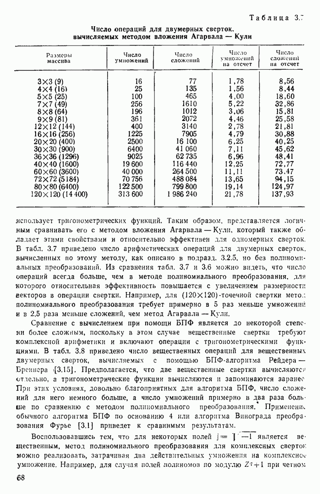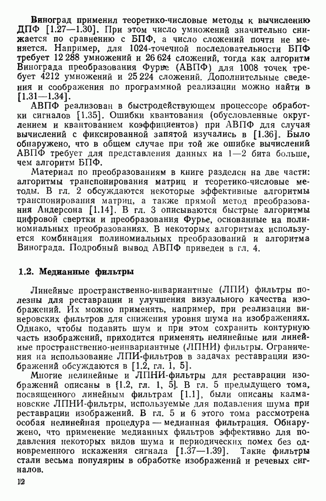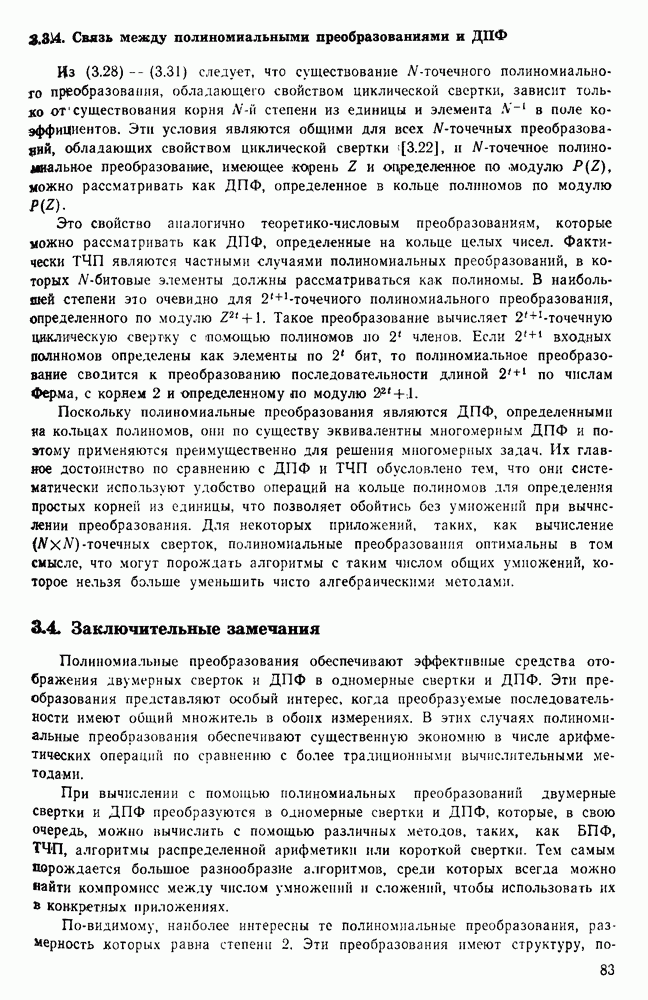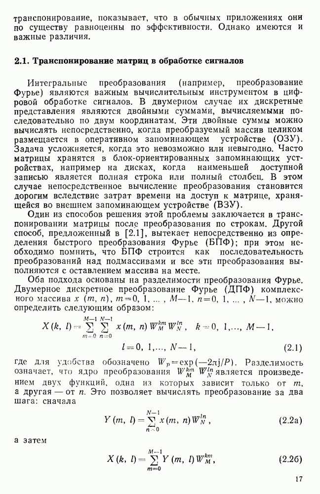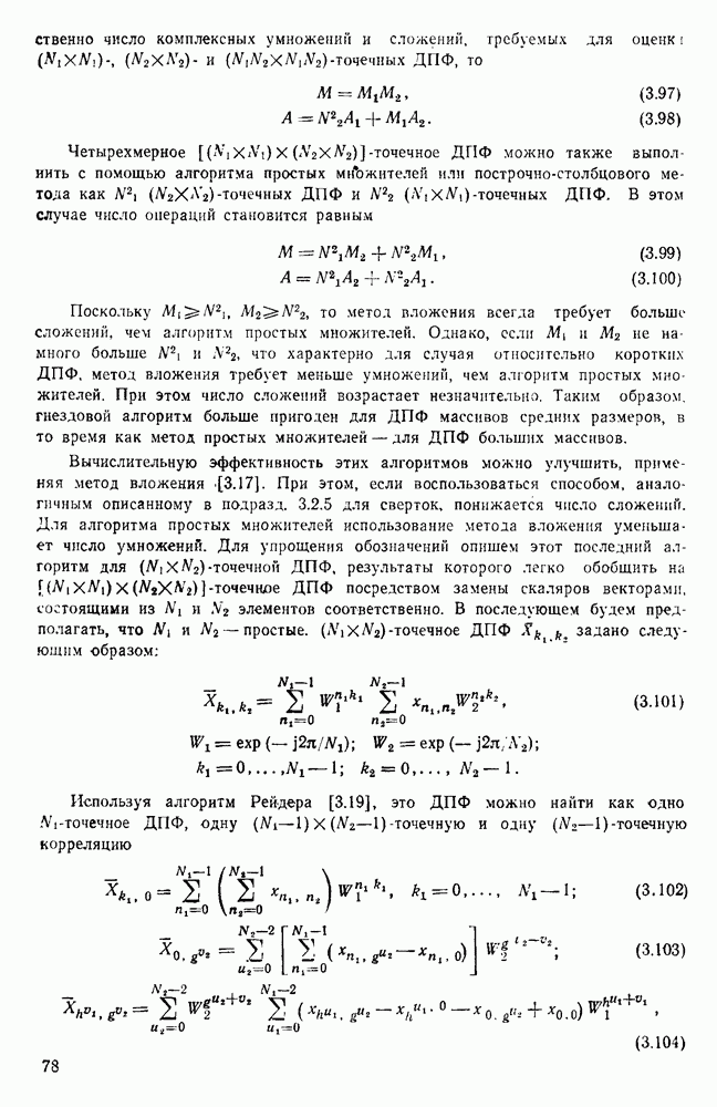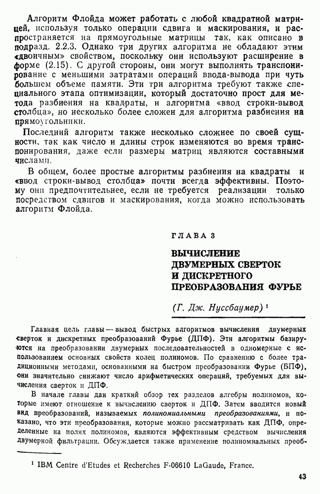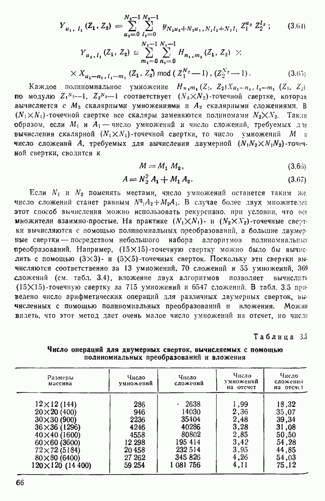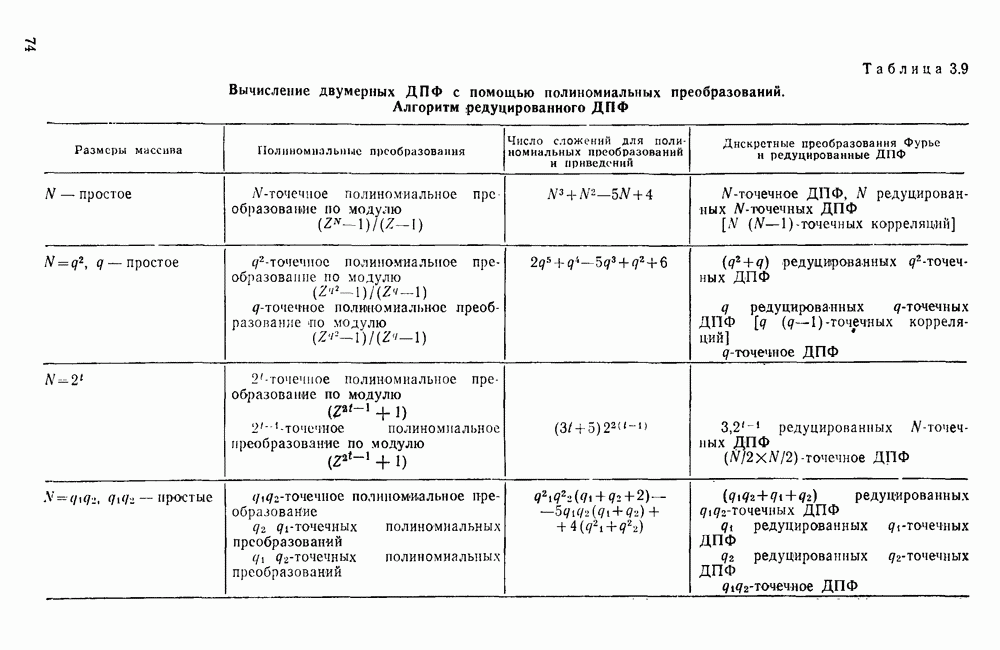 подобную БПФ, и поэтому могут программироваться аналогичным образом. Комбинируя эти преобразования с традиционными алгоритмами БПФ для вычисления одномерных сверток, полиномиальных произведений и ДПФ, можно получить двумерные алгоритмы, которые основаны на простоте метода БПФ и обеспечивают возможность существенного уменьшения числа операций.