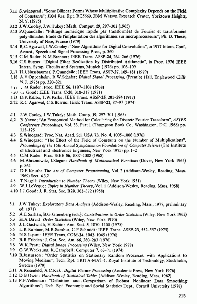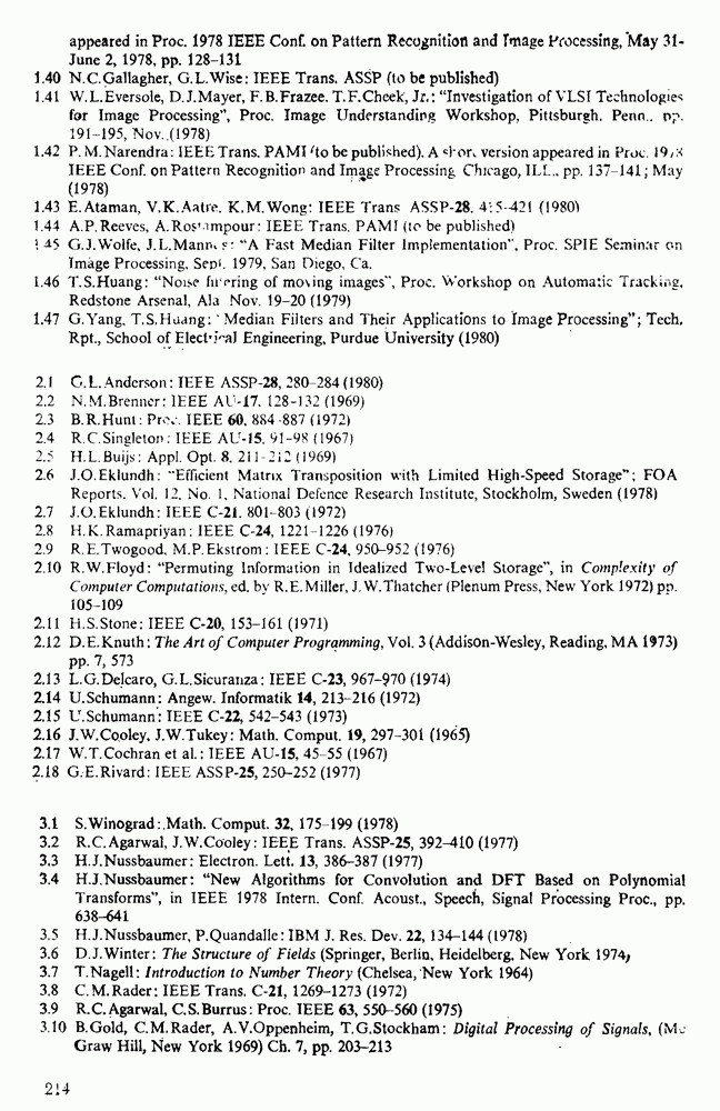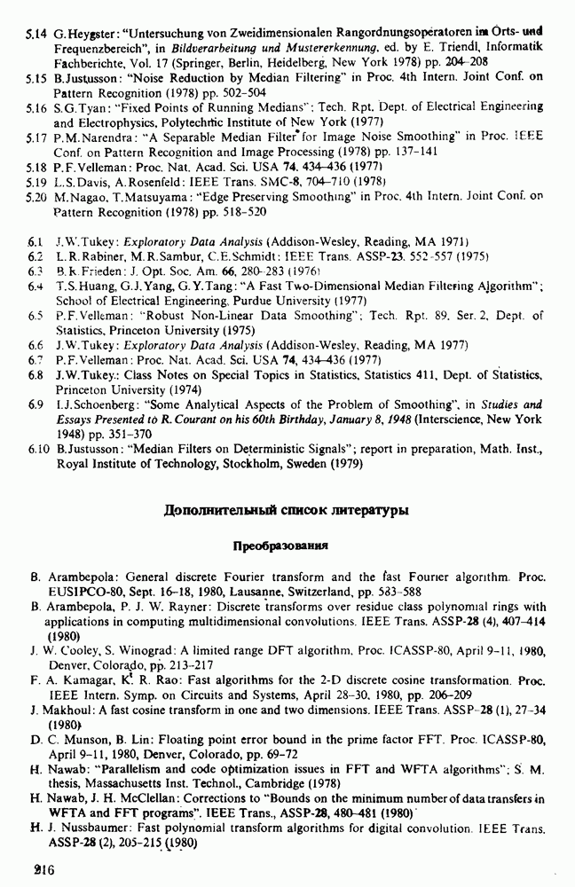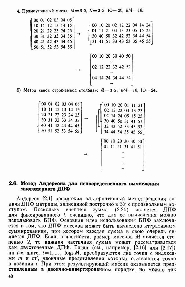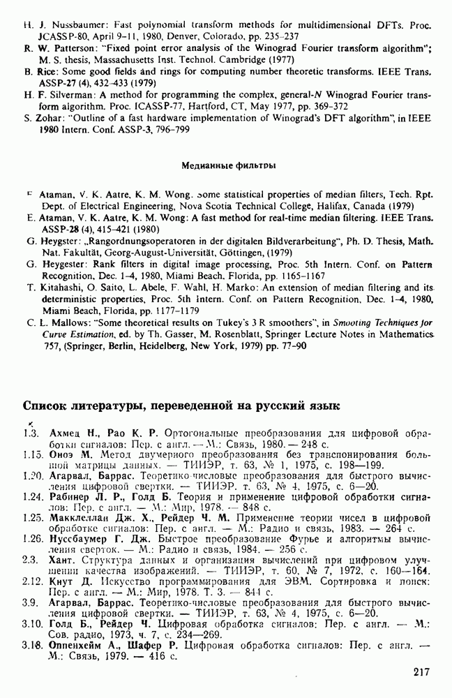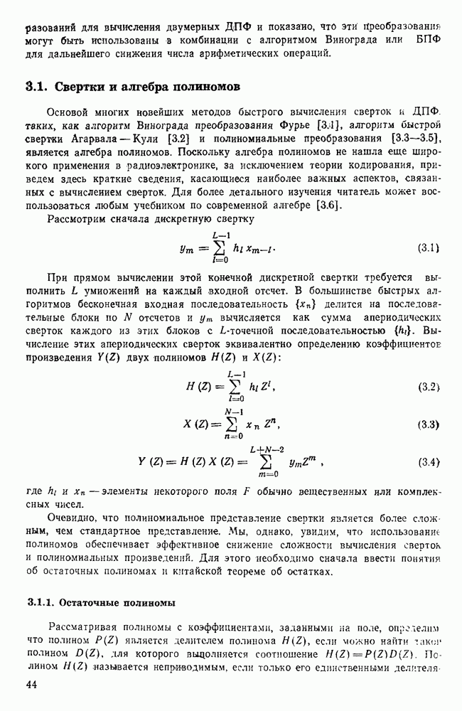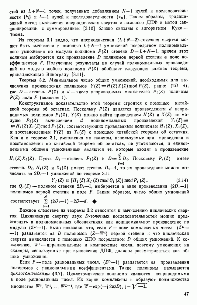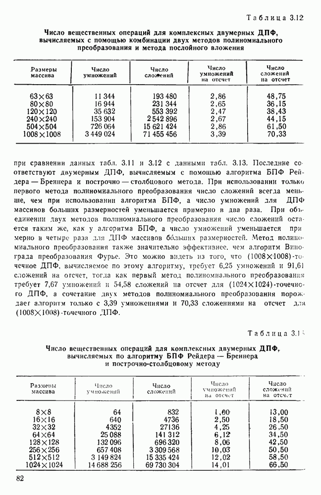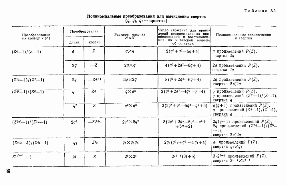 подобную БПФ, и поэтому могут программироваться аналогичным образом. Комбинируя эти преобразования с традиционными алгоритмами БПФ для вычисления одномерных сверток, полиномиальных произведений и ДПФ, можно получить двумерные алгоритмы, которые основаны на простоте метода БПФ и обеспечивают возможность существенного уменьшения числа операций.