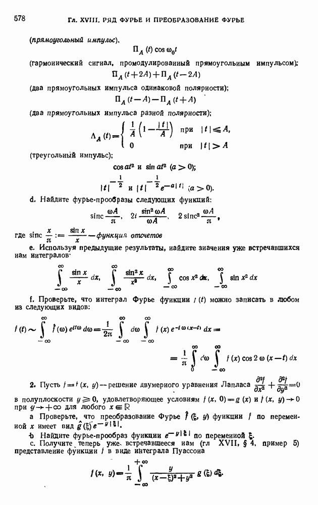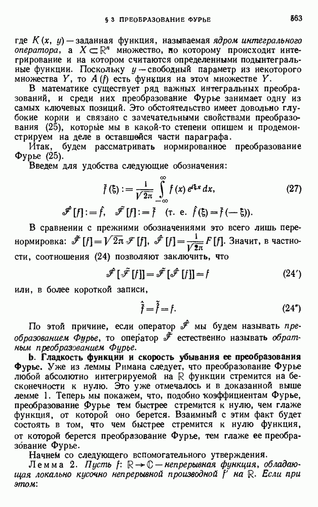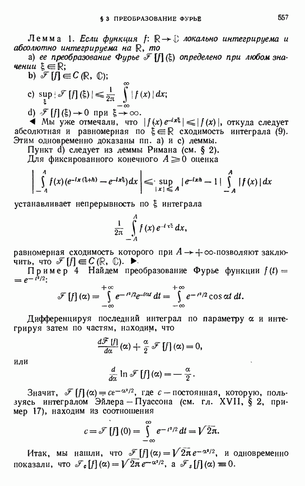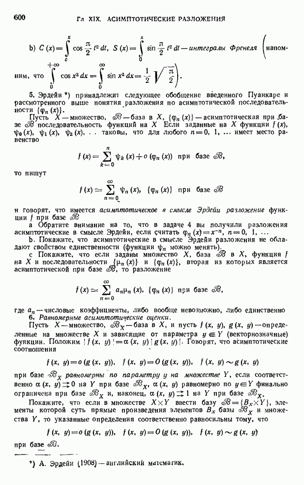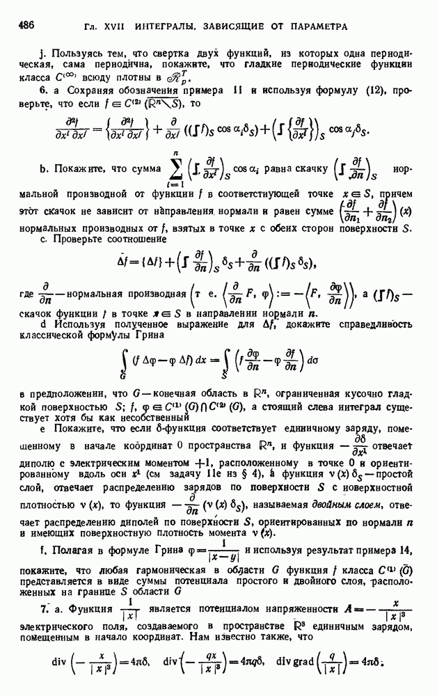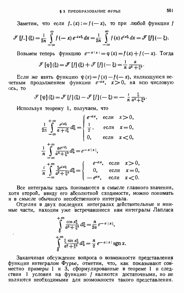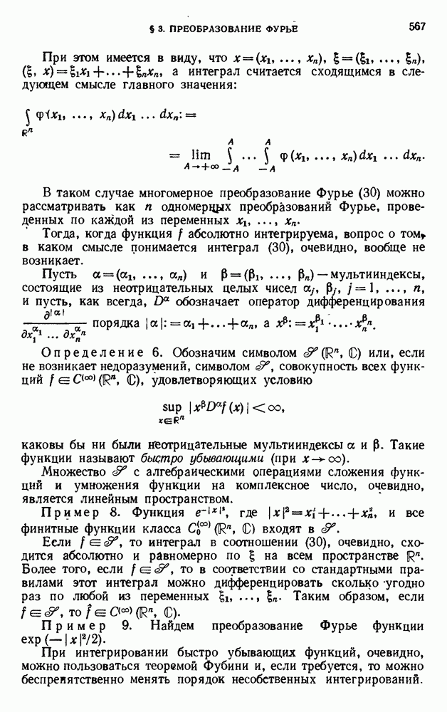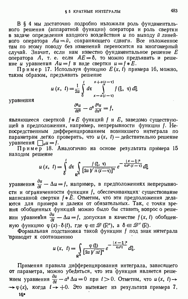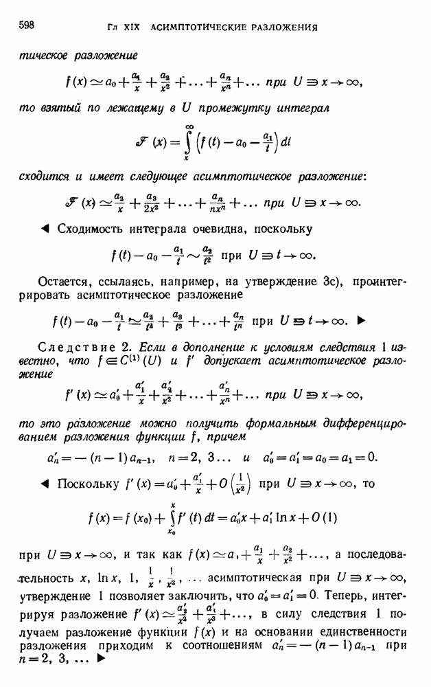 асимптотика которого описывается специальной леммой (Эрдейи), имеющей для интеграла Фурье ту же роль, что и лемма Ватсона для интеграла Лапласа. Указанная схема исследования асимптотики интеграла Фурье называется методом стационарной фазы. Природа принципа локализации в методе стационарной фазы совсем иная, чем в случае интеграла Лапласа, но общая схема метода Лапласа, как видно, оказывается пригодной и здесь Некоторые, подробности, относящиеся к методу стационарной фазы, читатель найдет в Задачах 12—17 Задачи и упражнения(см. скан) (см. скан) (см. скан) (см. скан) (см. скан) (см. скан)