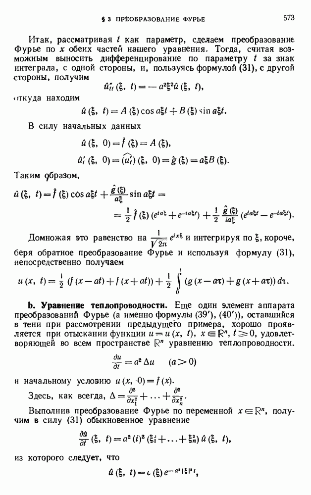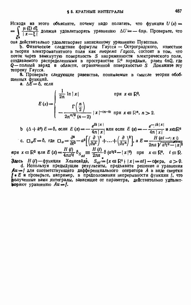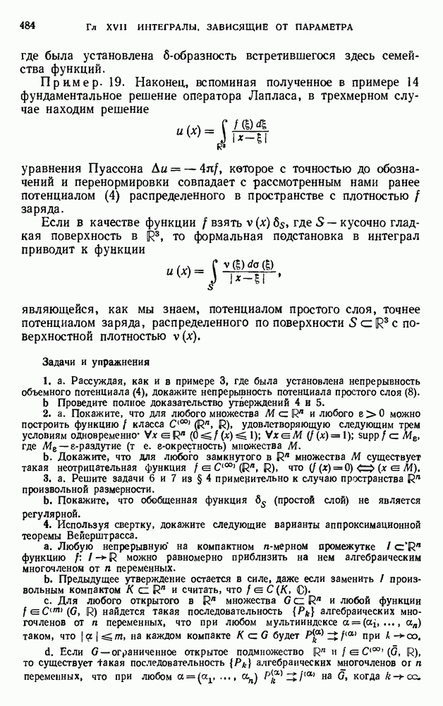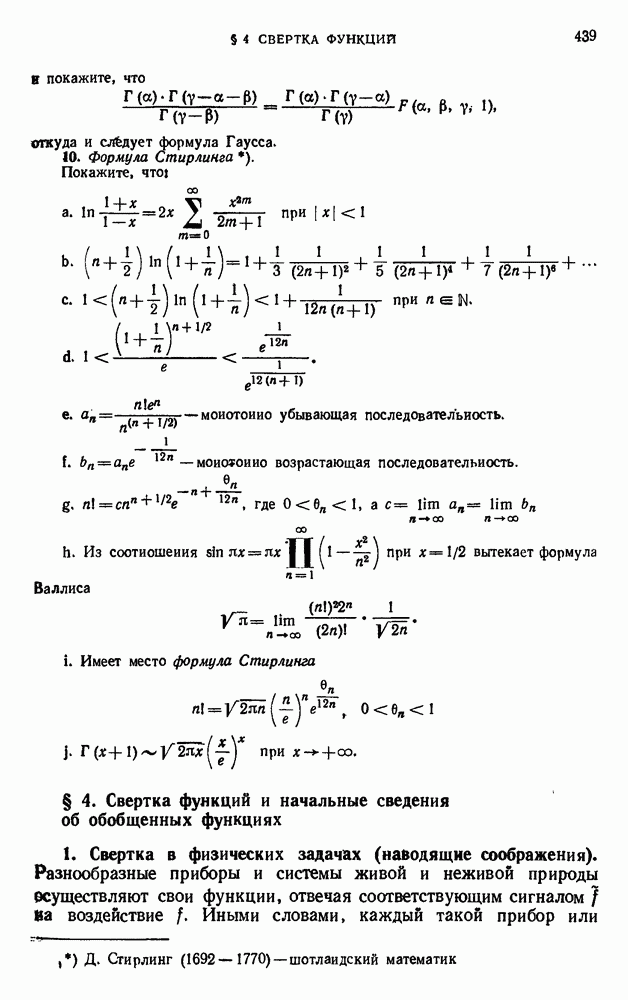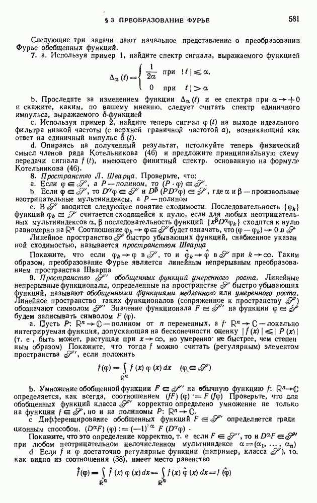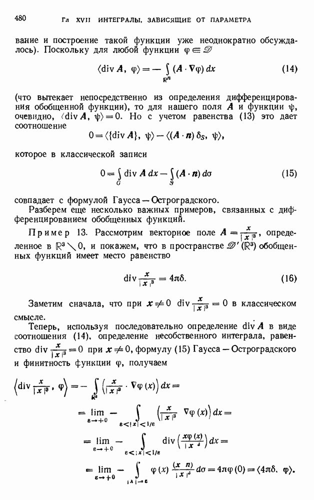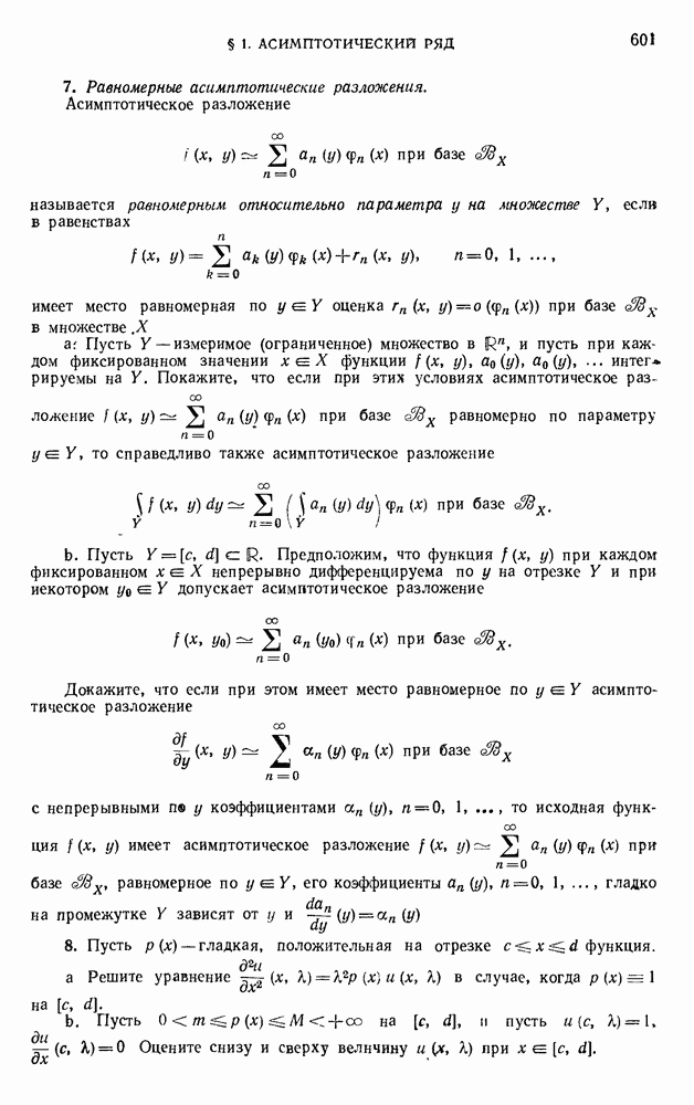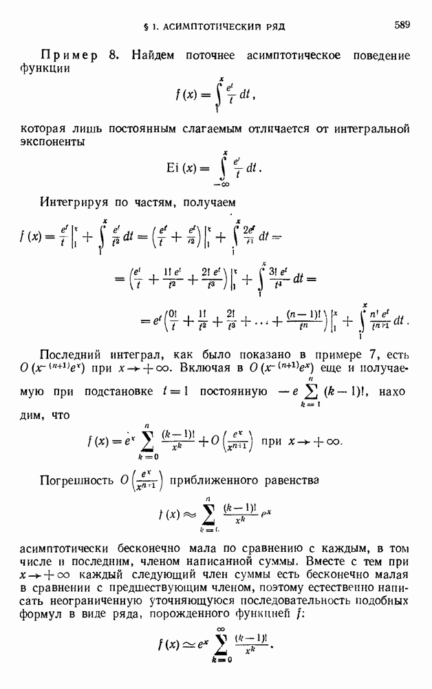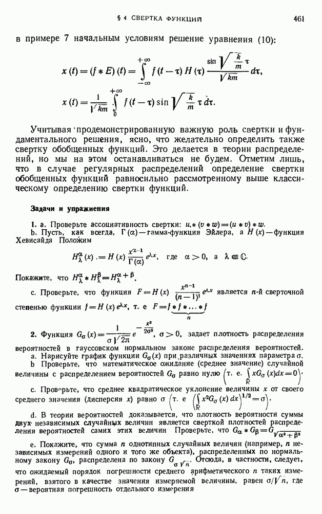 асимптотика которого описывается специальной леммой (Эрдейи), имеющей для интеграла Фурье ту же роль, что и лемма Ватсона для интеграла Лапласа. Указанная схема исследования асимптотики интеграла Фурье называется методом стационарной фазы. Природа принципа локализации в методе стационарной фазы совсем иная, чем в случае интеграла Лапласа, но общая схема метода Лапласа, как видно, оказывается пригодной и здесь Некоторые, подробности, относящиеся к методу стационарной фазы, читатель найдет в Задачах 12—17 Задачи и упражнения(см. скан) (см. скан) (см. скан) (см. скан) (см. скан) (см. скан)