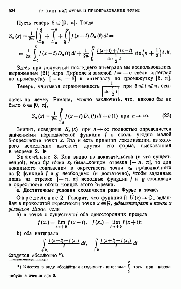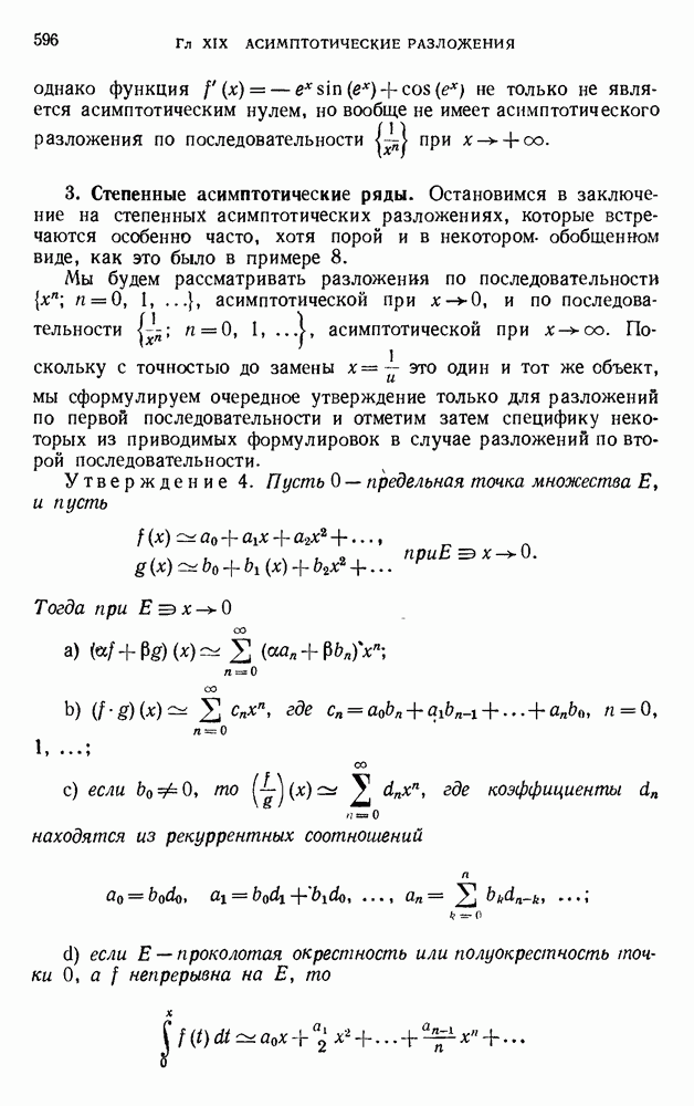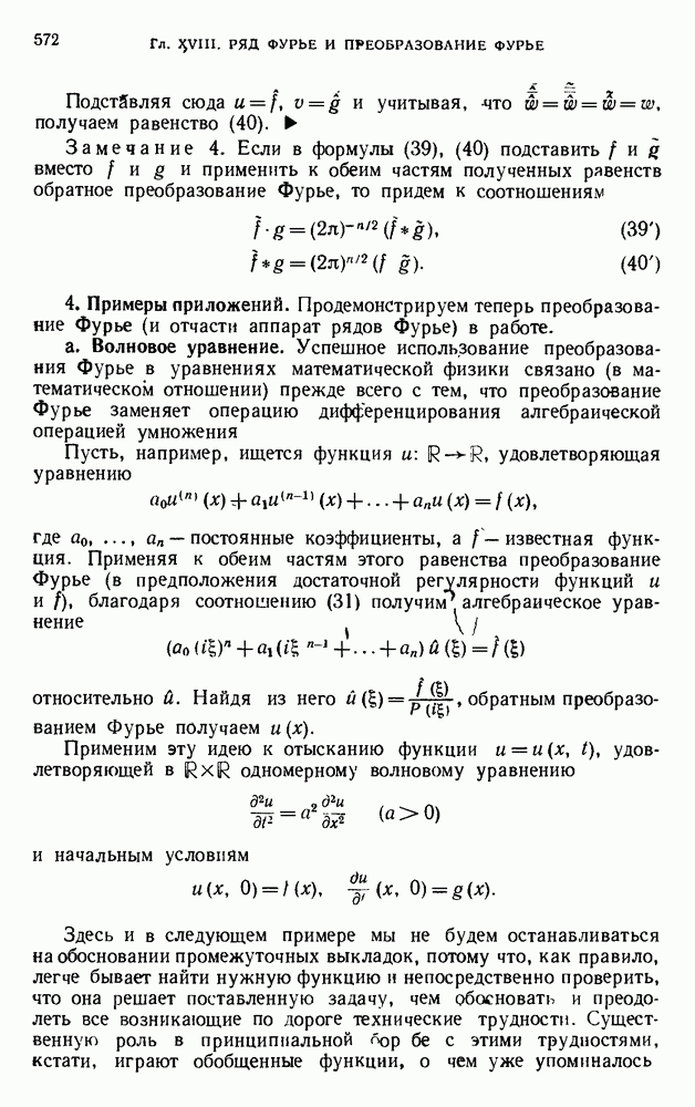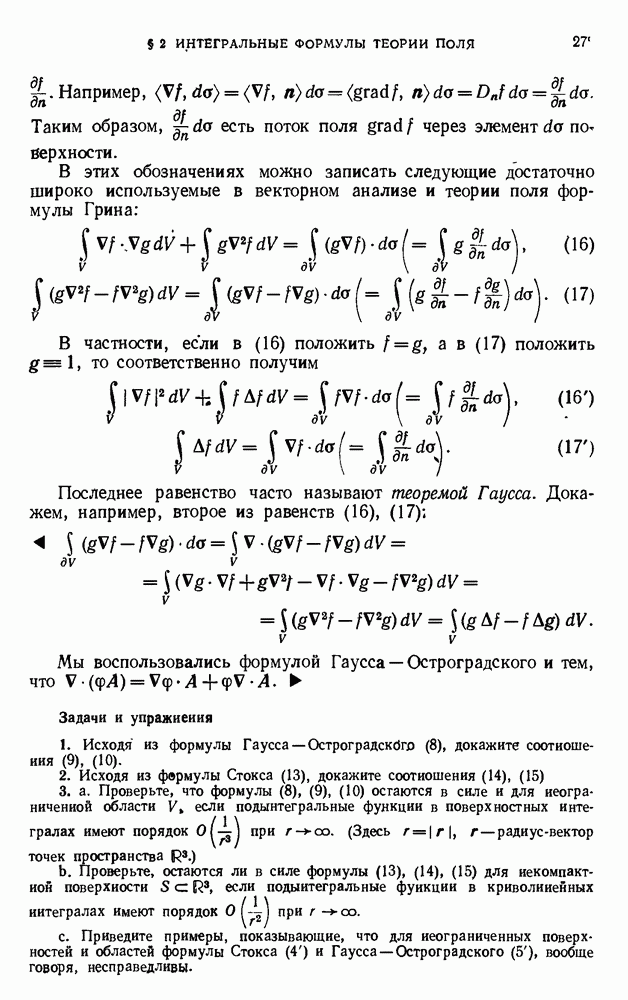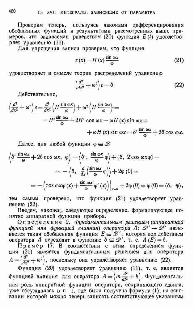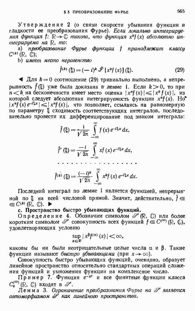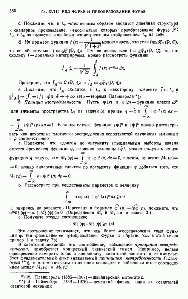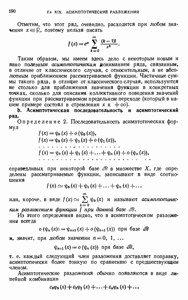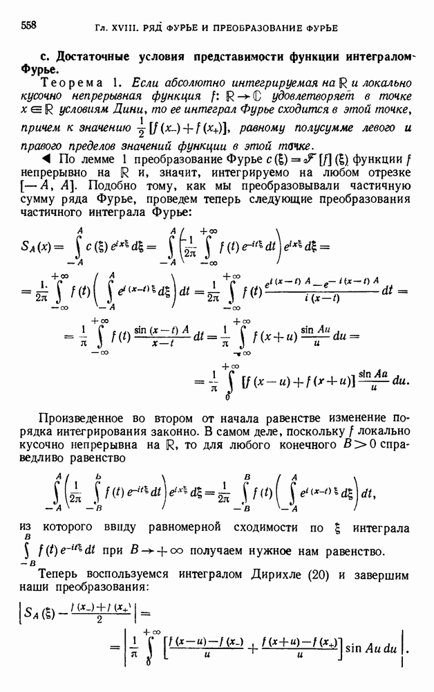 асимптотика которого описывается специальной леммой (Эрдейи), имеющей для интеграла Фурье ту же роль, что и лемма Ватсона для интеграла Лапласа. Указанная схема исследования асимптотики интеграла Фурье называется методом стационарной фазы. Природа принципа локализации в методе стационарной фазы совсем иная, чем в случае интеграла Лапласа, но общая схема метода Лапласа, как видно, оказывается пригодной и здесь Некоторые, подробности, относящиеся к методу стационарной фазы, читатель найдет в Задачах 12—17 Задачи и упражнения(см. скан) (см. скан) (см. скан) (см. скан) (см. скан) (см. скан)