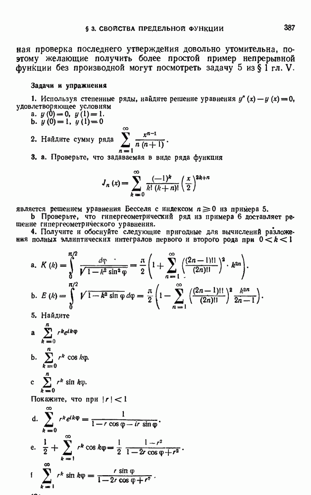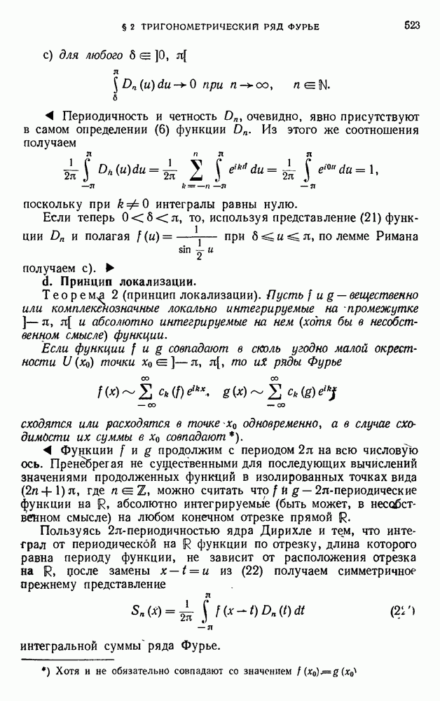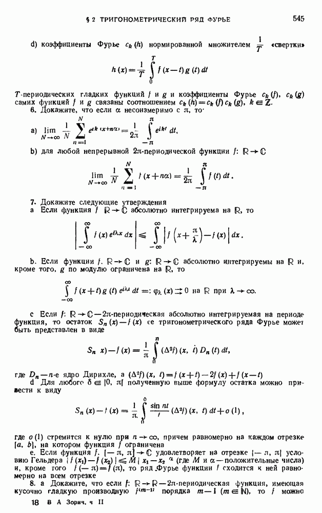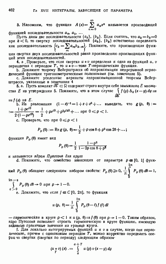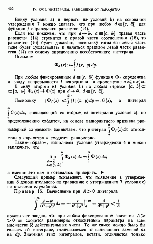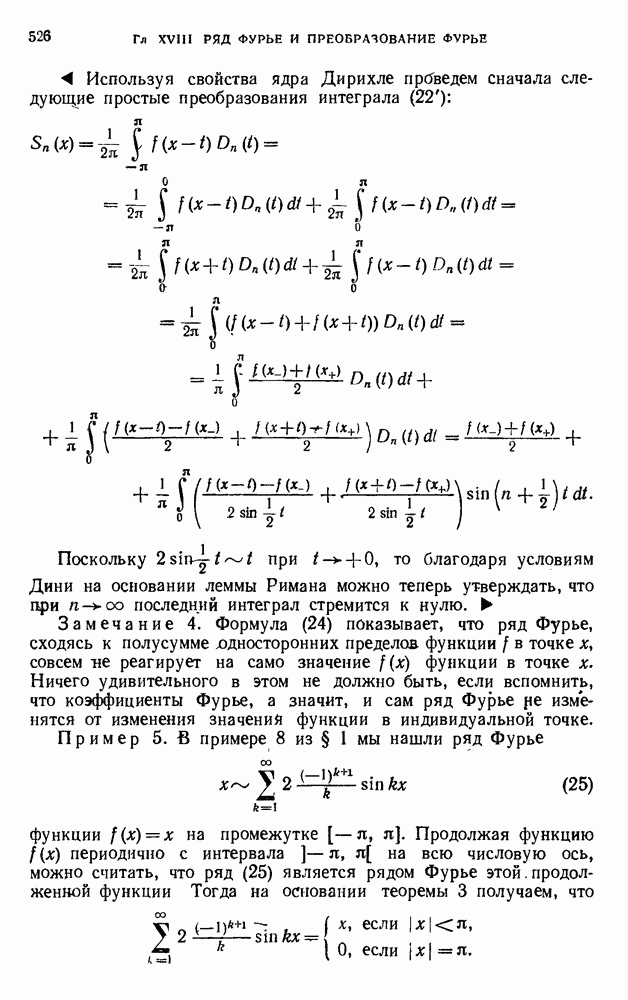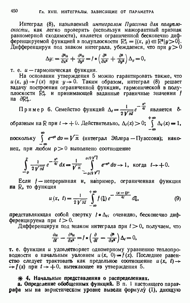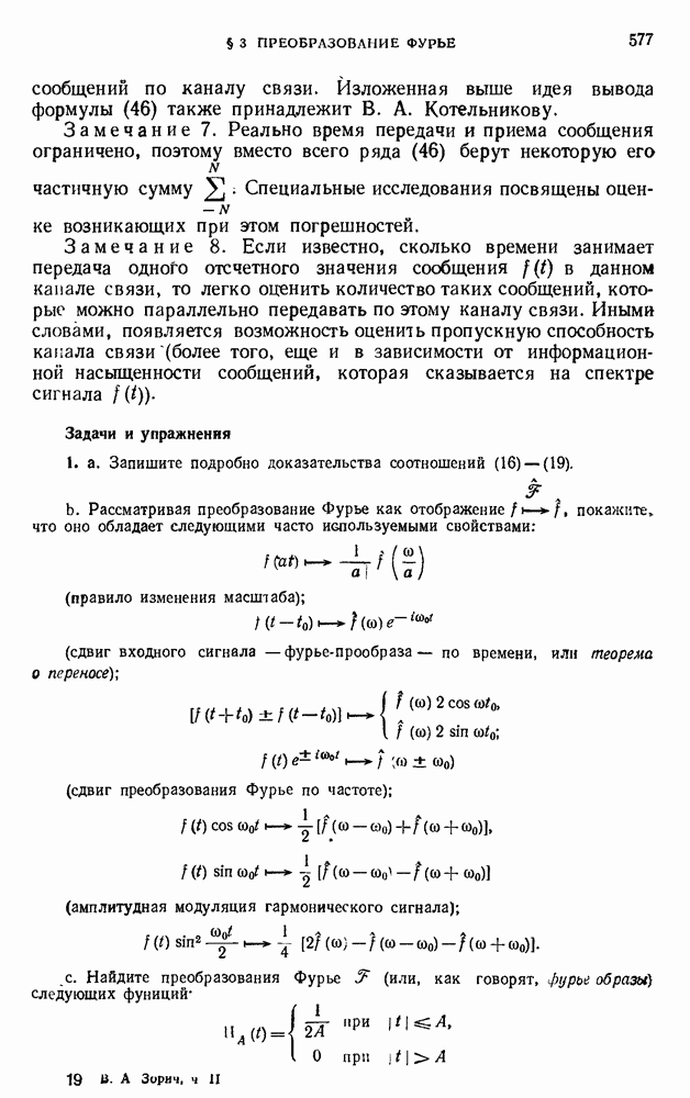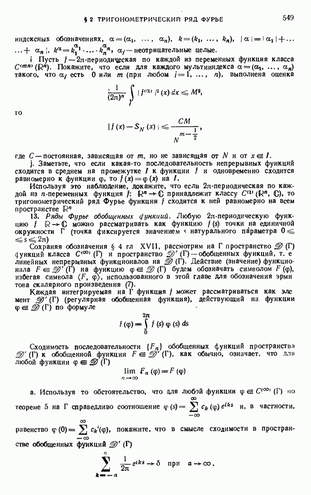 асимптотика которого описывается специальной леммой (Эрдейи), имеющей для интеграла Фурье ту же роль, что и лемма Ватсона для интеграла Лапласа. Указанная схема исследования асимптотики интеграла Фурье называется методом стационарной фазы. Природа принципа локализации в методе стационарной фазы совсем иная, чем в случае интеграла Лапласа, но общая схема метода Лапласа, как видно, оказывается пригодной и здесь Некоторые, подробности, относящиеся к методу стационарной фазы, читатель найдет в Задачах 12—17 Задачи и упражнения(см. скан) (см. скан) (см. скан) (см. скан) (см. скан) (см. скан)