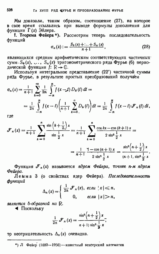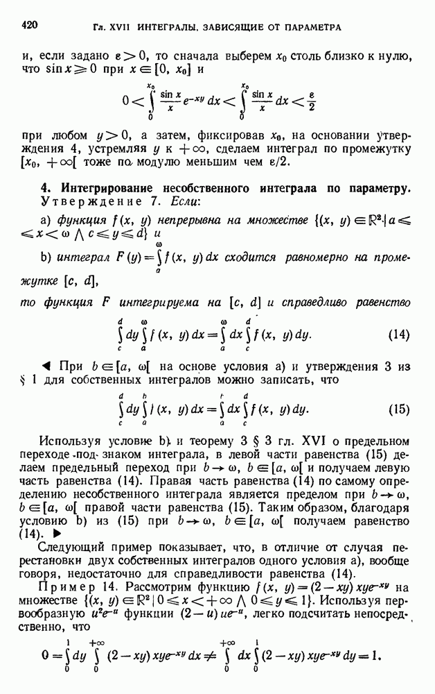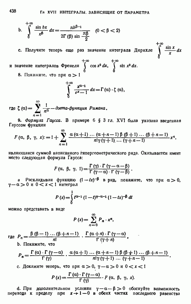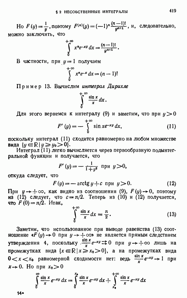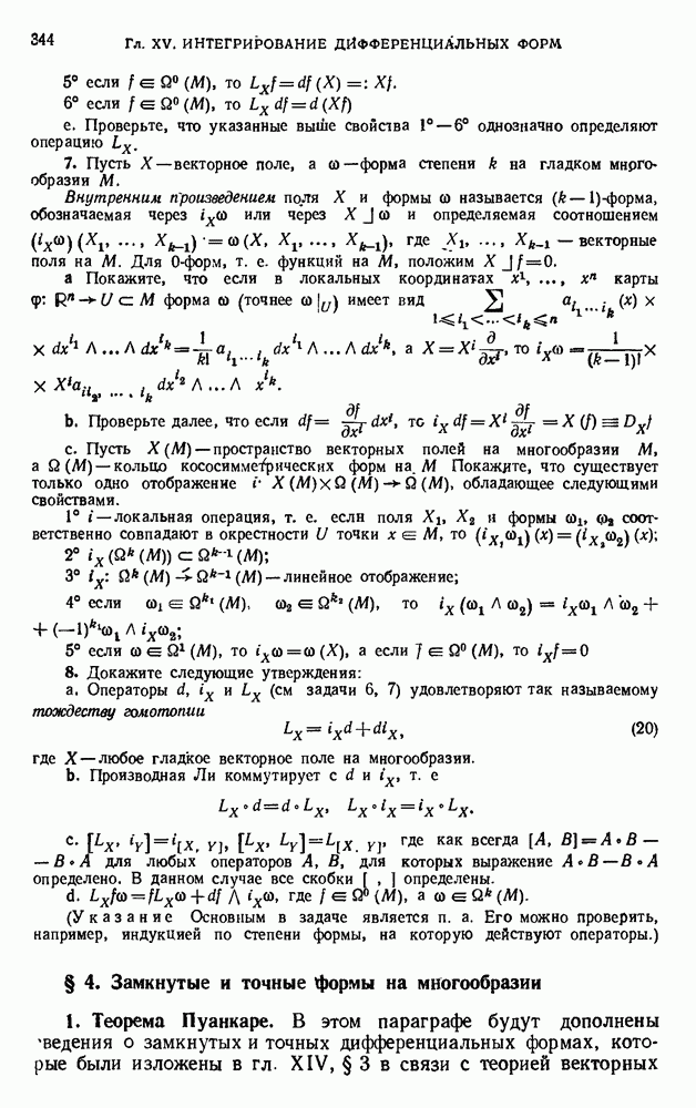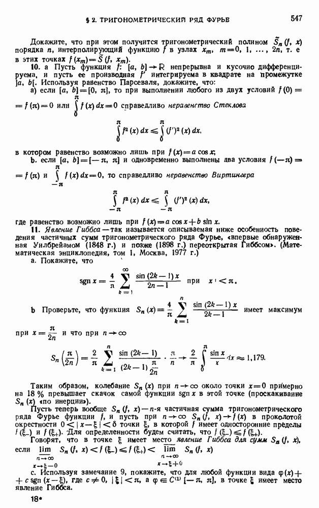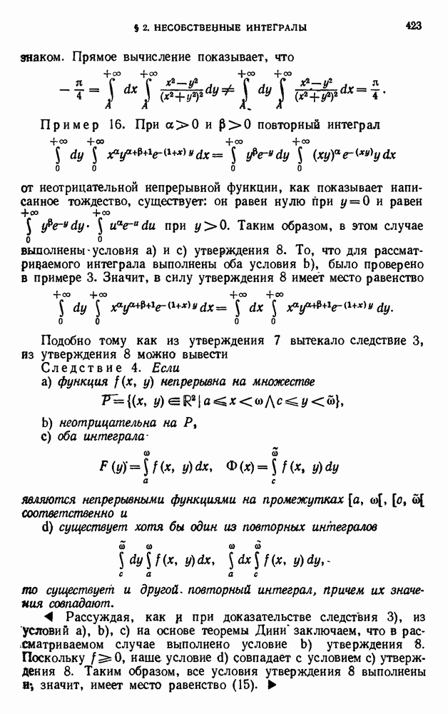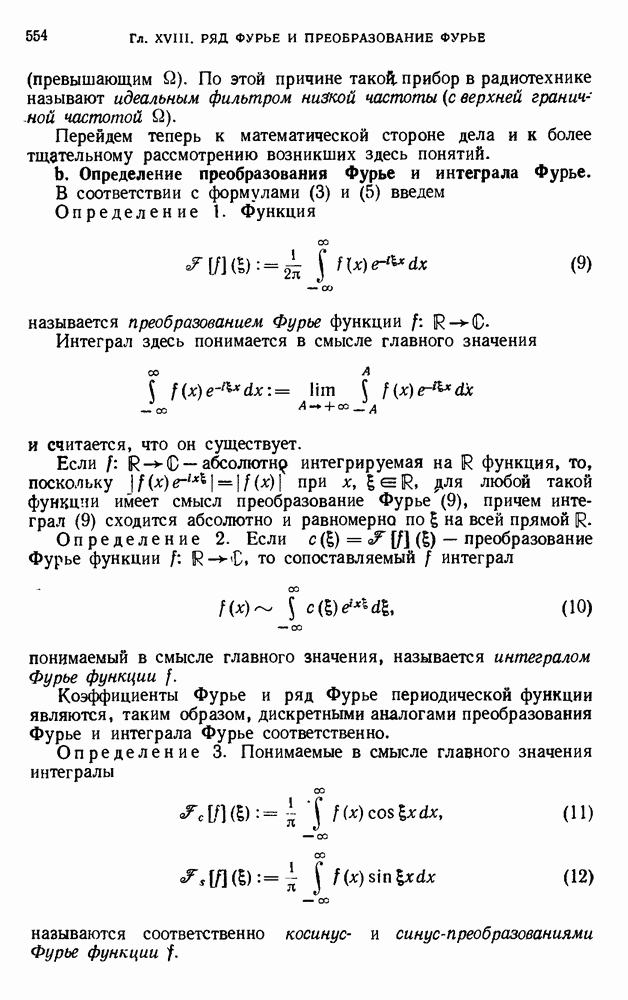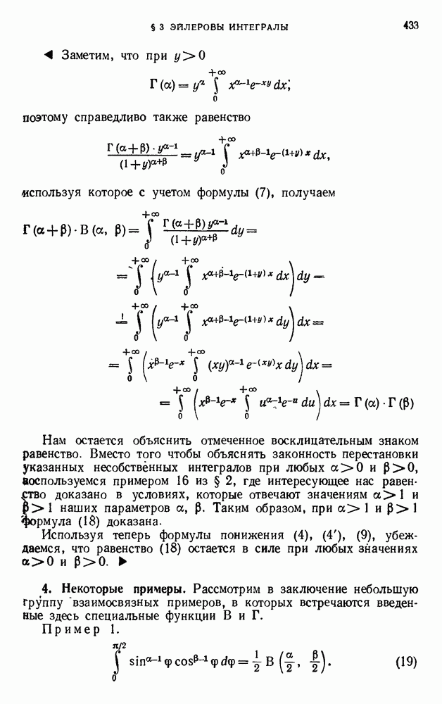 асимптотика которого описывается специальной леммой (Эрдейи), имеющей для интеграла Фурье ту же роль, что и лемма Ватсона для интеграла Лапласа. Указанная схема исследования асимптотики интеграла Фурье называется методом стационарной фазы. Природа принципа локализации в методе стационарной фазы совсем иная, чем в случае интеграла Лапласа, но общая схема метода Лапласа, как видно, оказывается пригодной и здесь Некоторые, подробности, относящиеся к методу стационарной фазы, читатель найдет в Задачах 12—17 Задачи и упражнения(см. скан) (см. скан) (см. скан) (см. скан) (см. скан) (см. скан)