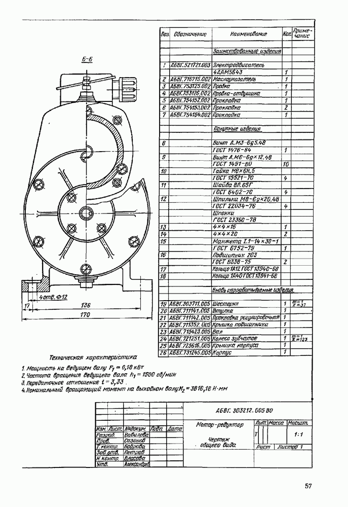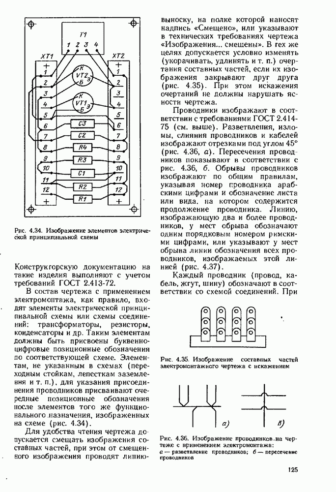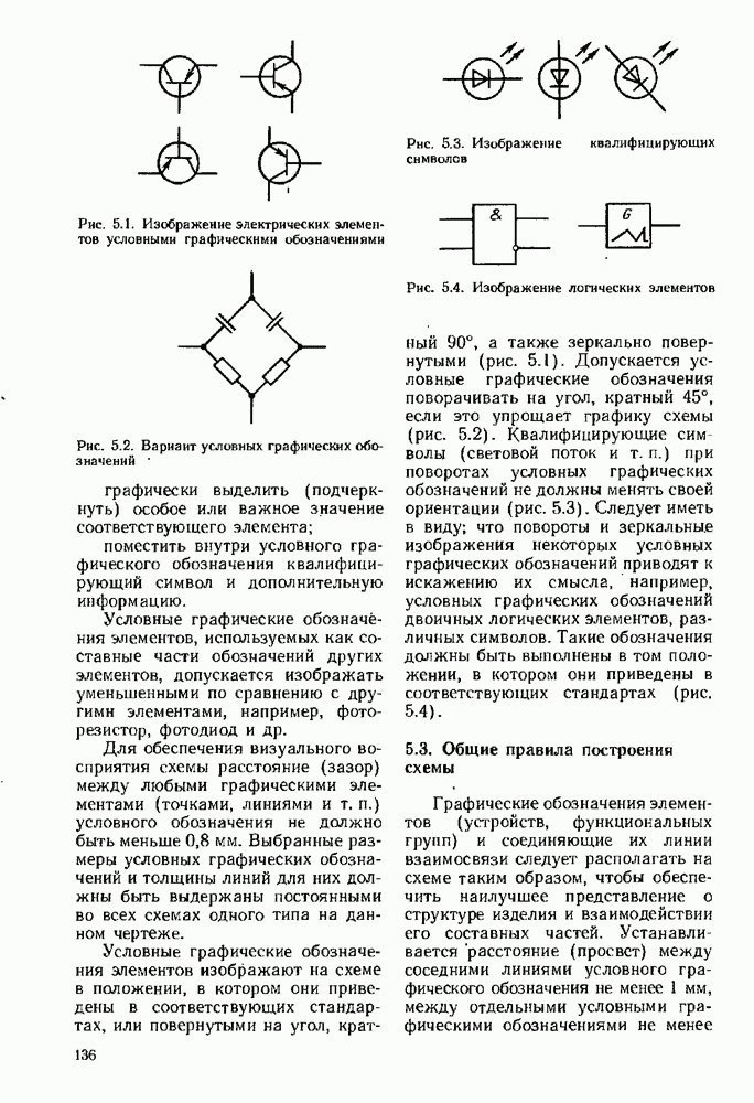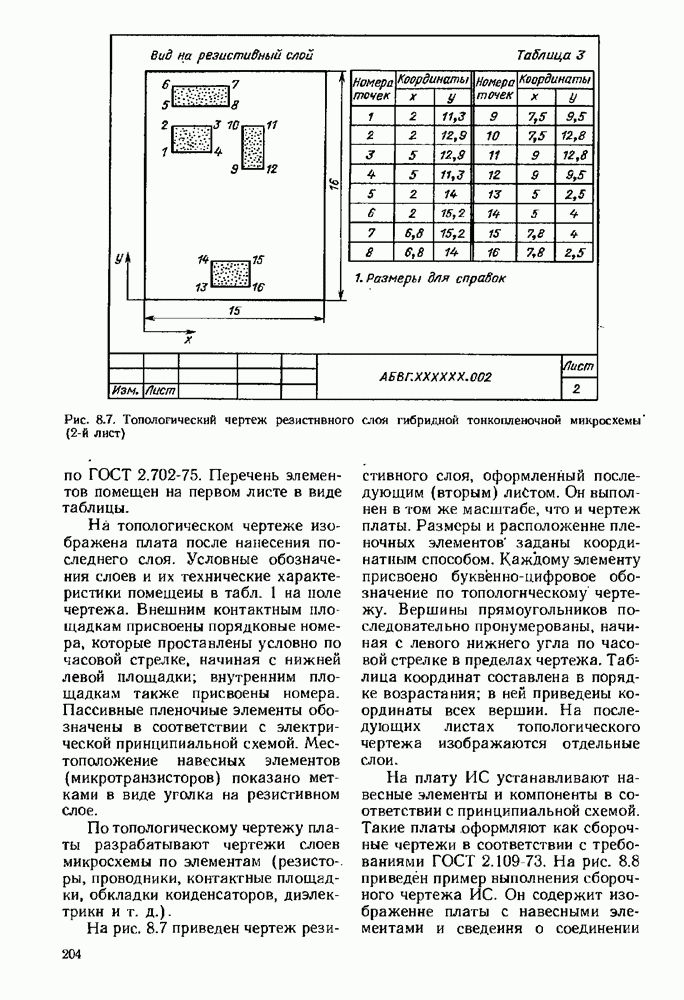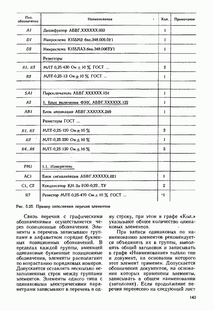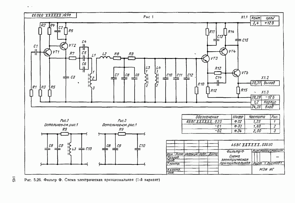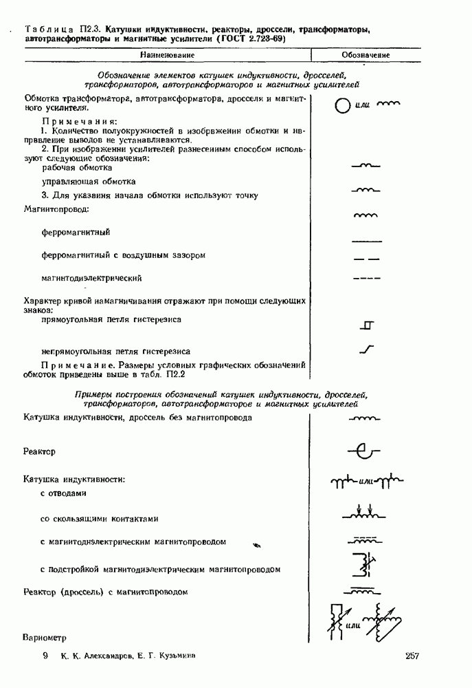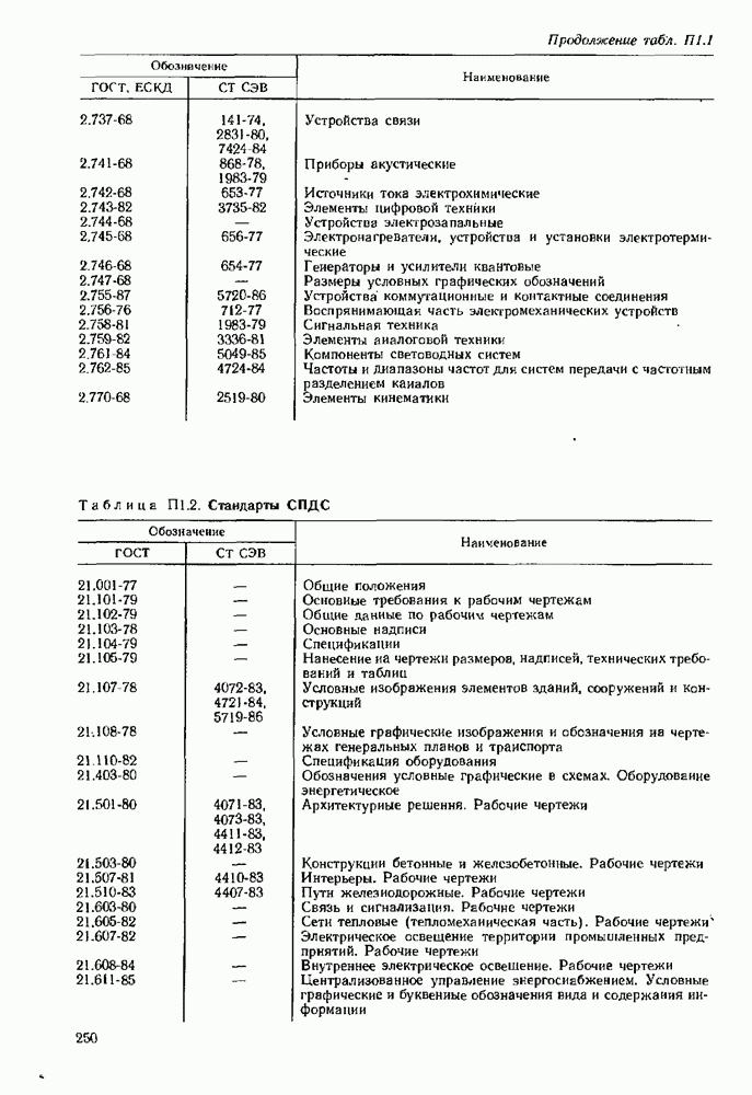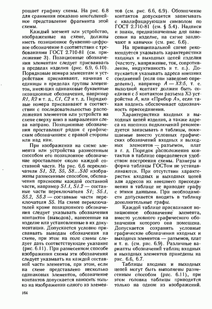 (кликните для просмотра скана) Рис. 1.7. (см. скан) Конструкторский документ—пояснительная записка Сборочный чертеж содержит упрощенное изображение сборочной единицы и другие данные, необходимые для ее изготовления (сборки). На сборочном чертеже (рис, 1.5) составные части сборочной единицы снабжаются полками-выносками, на которых проставляются номера позиций этих составных частей в соответствии с порядковым номером позиции в спецификации. На сборочном чертеже (рис. 1.5) приведены требования по условиям пайки п. 2 и габаритный размер по длине кабеля ВЧ после сборки. Схема представляет собой конструкторский документ, на котором в виде условных графических обозначений показаны составные части изделия, а также связи между ними. В зависимости от входящих в состав изделия элементов и связей между ними схемы подразделяют на следующие виды (ГОСТ 2.701-84): электрические, гидравлические, пневматические, газовые (кроме пневматических), кинематические, вакуумные, оптические, энергетические, деления, комбинированные. Назначение схемы определяет ее Рис. 1.8. (см. скан) Образец текста пояснительной записки тип: структурная, функциональная, принципиальная (полная), соединений (монтажная), подключения, общая, расположения, объединенная. Схема кинематическая принципиальная «Электропривод» (рис. 1.6) содержит: а) изображение схемы, которое состоит из условных графических обозначений элементов, связей между элементами, буквенно-цифровых позиционных обозначений элементов; б) перечень составных элементов схемы, выполненный в виде таблицы. По изображению можно представить передачу и преобразование движения в электроприводе от двигателя до ведомого звена. В перечне составных элементов разъясняются обозначения элементов и приводятся некоторые их параметры. Пояснительная записка (ГОСТ 2.106-68) содержит в общем случае сведения о назначении и области применения проектируемого изделия, техническую характеристику, описание устройства и принципа действия изделия, обоснование принятых при разработке технических решений, технико-экономические показатели. Первым листом пояснительной записки является титульный лист (рис. 1.7), который выполняется на формате А4 и содержит наименование министерства или ведомства, разработавшего документ, код изделия по общесоюзному классификатору продукции (ОКП), грифы согласования и утверждения, наименование изделия, обозначение документа, подписи разработчиков документа, год издания документа. Пример выполнения промежуточной страницы пояснительной записки приведен на рис. 1.8. (см. скан) Расчеты включают эскиз или схему рассчитываемого изделия, задачу расчета, данные для расчета, условия расчета, расчет, заключение. Из других конструкторских документов следует упомянуть: а) теоретический чертеж, который определяет геометрическую форму (обводы) изделия и координаты расположения составных частей; б) габаритный чертеж, содержащий контурное изображение изделия с габаритными, установочными и присоединительными размерами; в) монтажный чертеж, необходимый для монтажа изделия на месте применения. Каждый конструкторский документ имеет код по ГОСТ 2.102-68. Так, чертеж общего вида имеет код