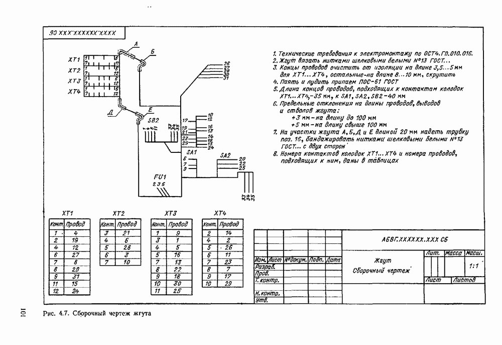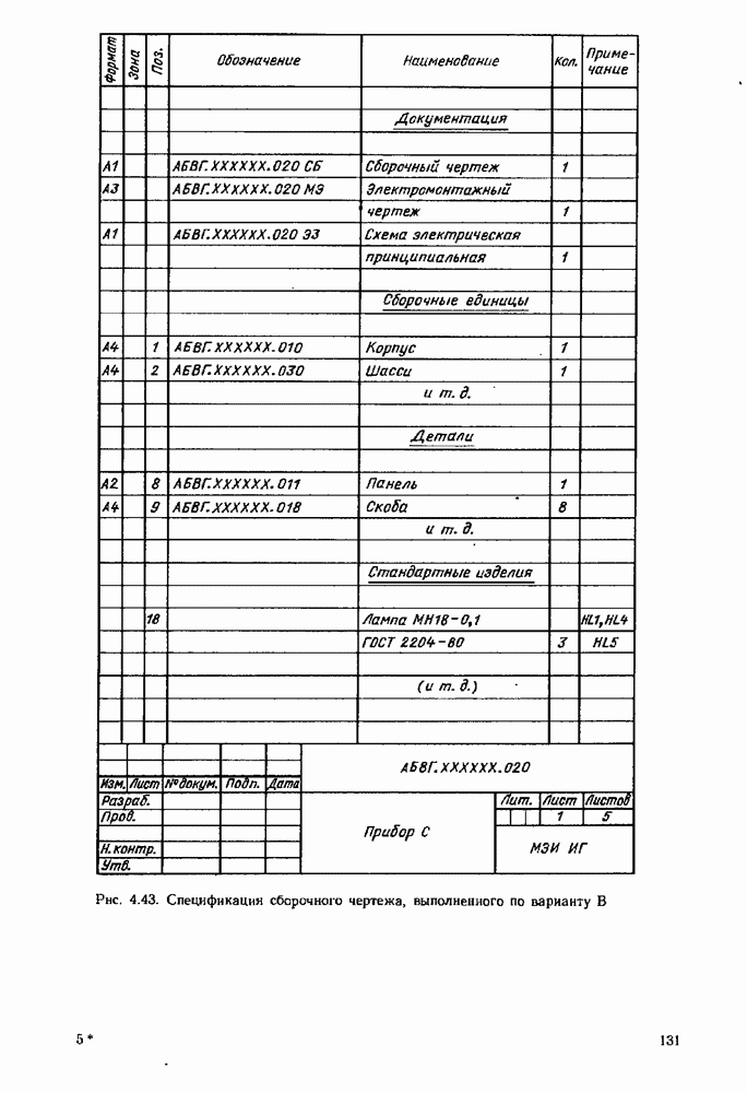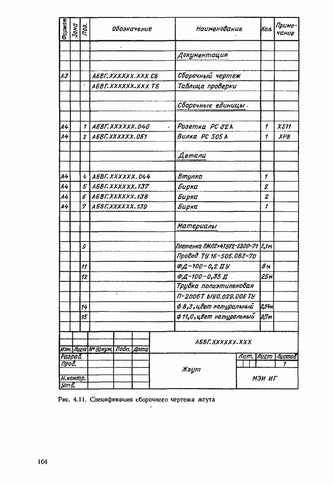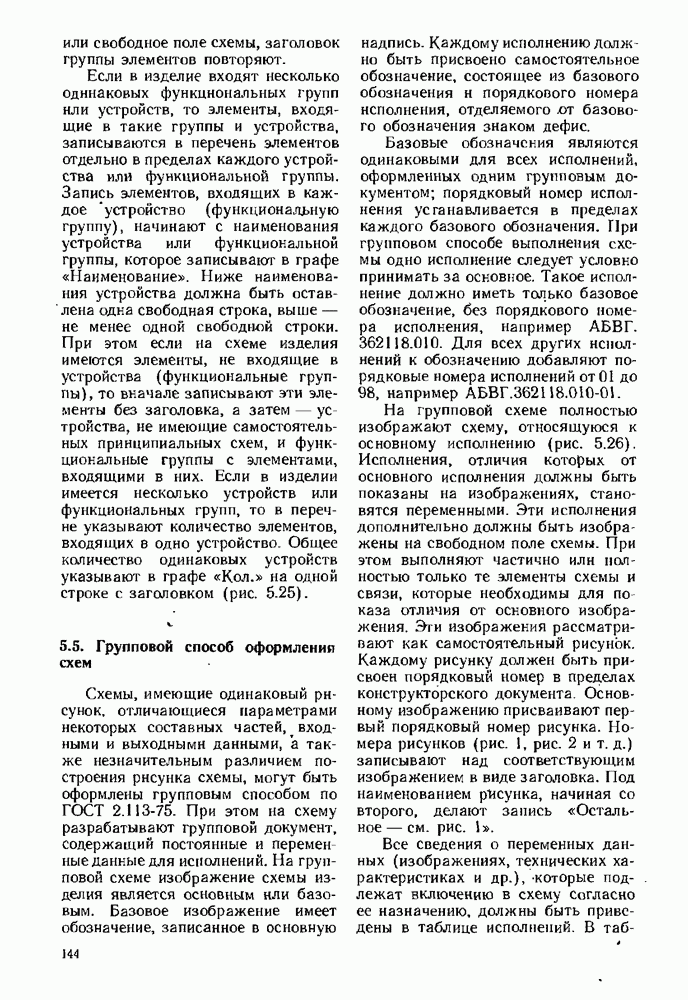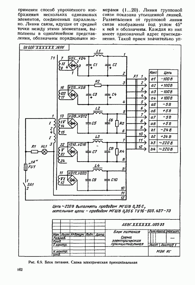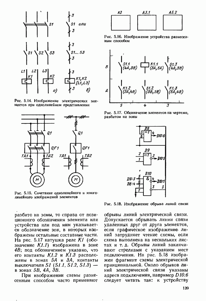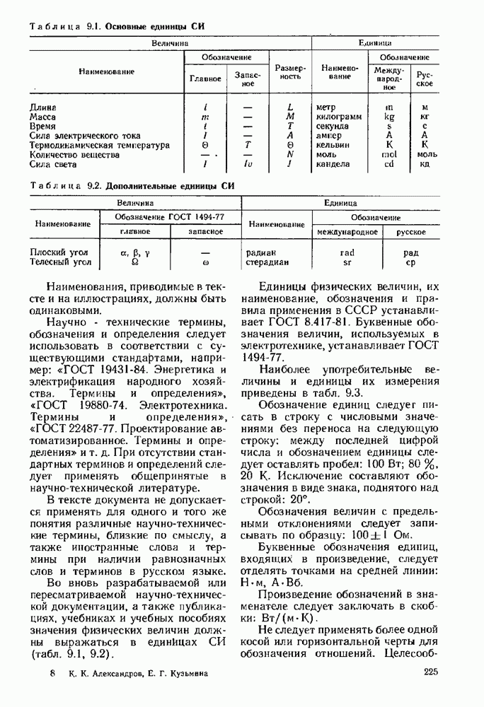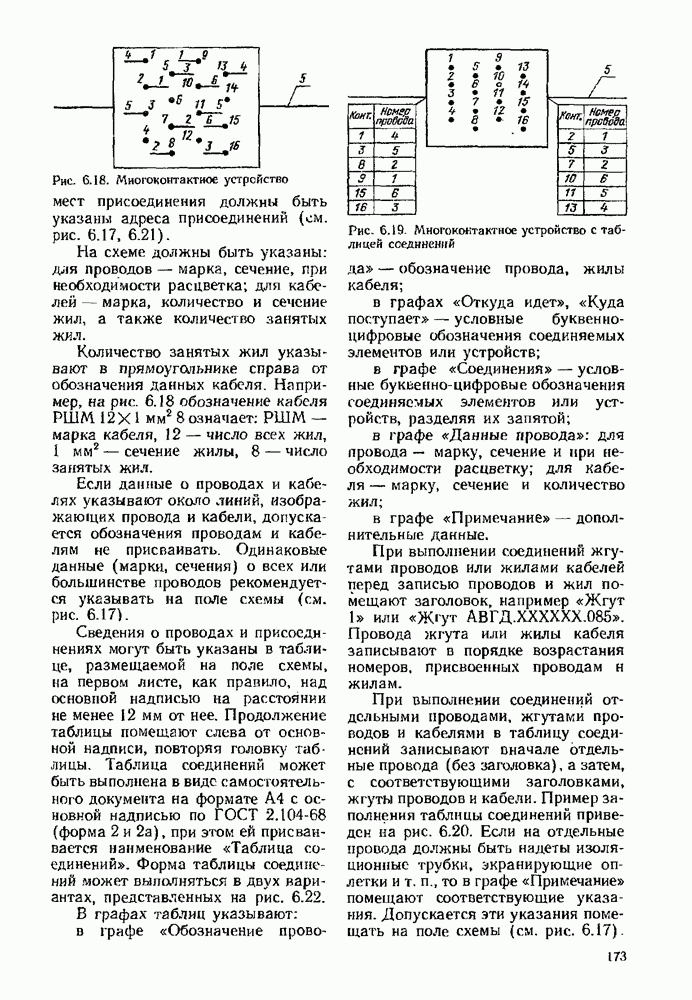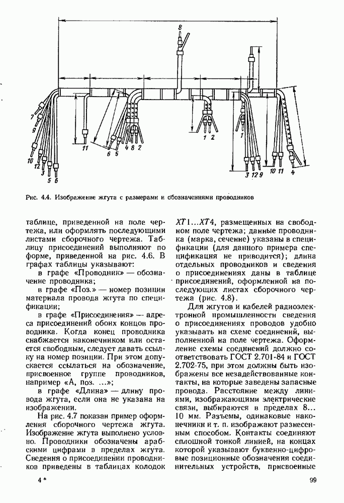 (кликните для просмотра скана) Рис. 1.7. (см. скан) Конструкторский документ—пояснительная записка Сборочный чертеж содержит упрощенное изображение сборочной единицы и другие данные, необходимые для ее изготовления (сборки). На сборочном чертеже (рис, 1.5) составные части сборочной единицы снабжаются полками-выносками, на которых проставляются номера позиций этих составных частей в соответствии с порядковым номером позиции в спецификации. На сборочном чертеже (рис. 1.5) приведены требования по условиям пайки п. 2 и габаритный размер по длине кабеля ВЧ после сборки. Схема представляет собой конструкторский документ, на котором в виде условных графических обозначений показаны составные части изделия, а также связи между ними. В зависимости от входящих в состав изделия элементов и связей между ними схемы подразделяют на следующие виды (ГОСТ 2.701-84): электрические, гидравлические, пневматические, газовые (кроме пневматических), кинематические, вакуумные, оптические, энергетические, деления, комбинированные. Назначение схемы определяет ее Рис. 1.8. (см. скан) Образец текста пояснительной записки тип: структурная, функциональная, принципиальная (полная), соединений (монтажная), подключения, общая, расположения, объединенная. Схема кинематическая принципиальная «Электропривод» (рис. 1.6) содержит: а) изображение схемы, которое состоит из условных графических обозначений элементов, связей между элементами, буквенно-цифровых позиционных обозначений элементов; б) перечень составных элементов схемы, выполненный в виде таблицы. По изображению можно представить передачу и преобразование движения в электроприводе от двигателя до ведомого звена. В перечне составных элементов разъясняются обозначения элементов и приводятся некоторые их параметры. Пояснительная записка (ГОСТ 2.106-68) содержит в общем случае сведения о назначении и области применения проектируемого изделия, техническую характеристику, описание устройства и принципа действия изделия, обоснование принятых при разработке технических решений, технико-экономические показатели. Первым листом пояснительной записки является титульный лист (рис. 1.7), который выполняется на формате А4 и содержит наименование министерства или ведомства, разработавшего документ, код изделия по общесоюзному классификатору продукции (ОКП), грифы согласования и утверждения, наименование изделия, обозначение документа, подписи разработчиков документа, год издания документа. Пример выполнения промежуточной страницы пояснительной записки приведен на рис. 1.8. (см. скан) Расчеты включают эскиз или схему рассчитываемого изделия, задачу расчета, данные для расчета, условия расчета, расчет, заключение. Из других конструкторских документов следует упомянуть: а) теоретический чертеж, который определяет геометрическую форму (обводы) изделия и координаты расположения составных частей; б) габаритный чертеж, содержащий контурное изображение изделия с габаритными, установочными и присоединительными размерами; в) монтажный чертеж, необходимый для монтажа изделия на месте применения. Каждый конструкторский документ имеет код по ГОСТ 2.102-68. Так, чертеж общего вида имеет код