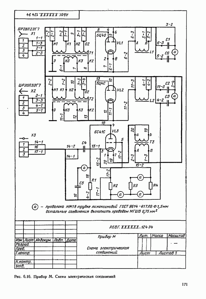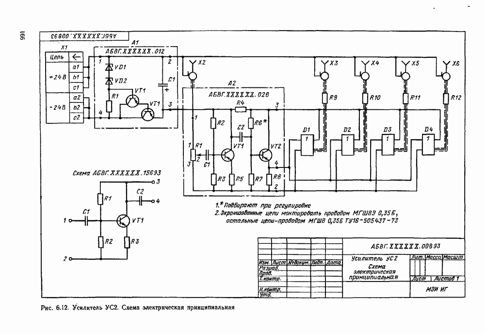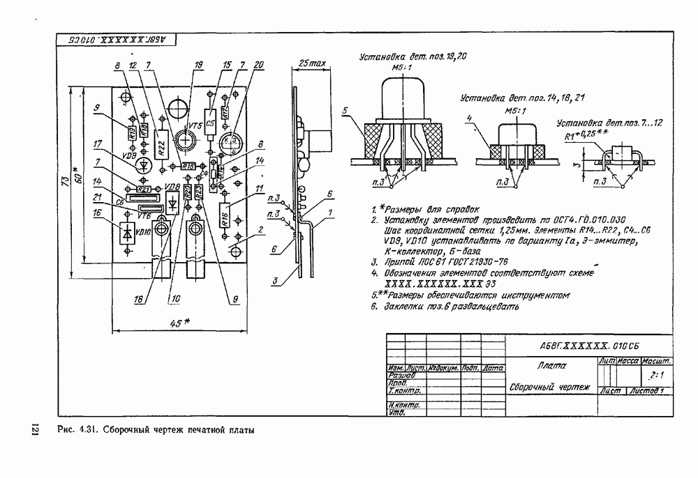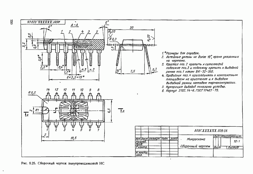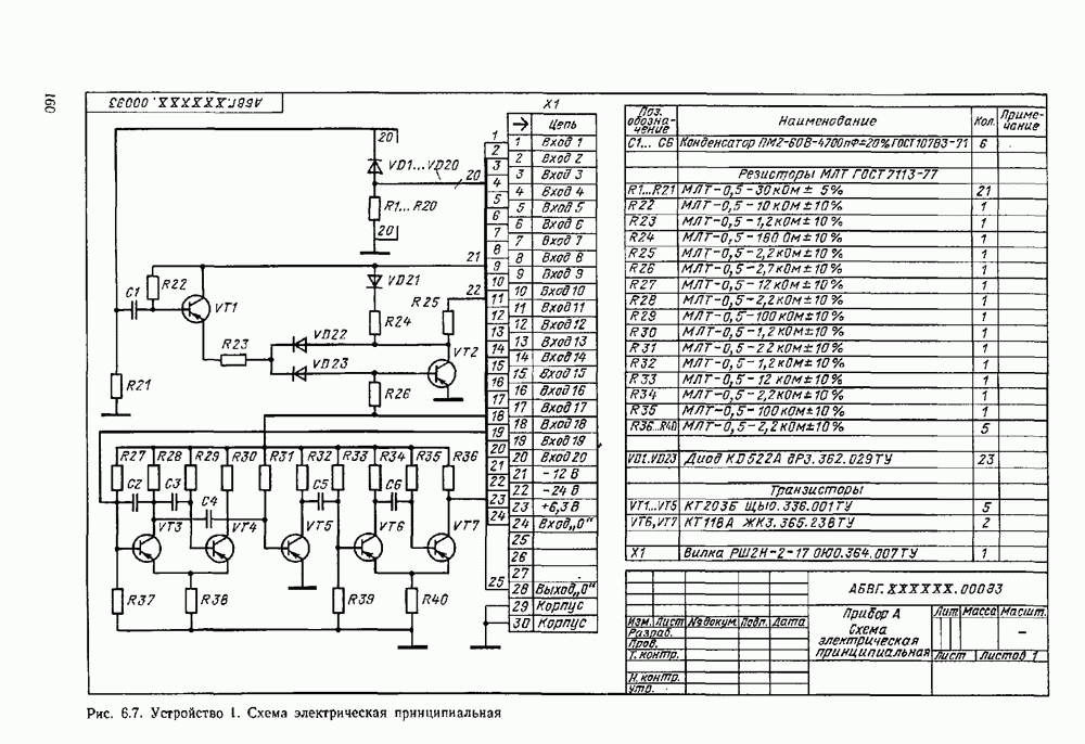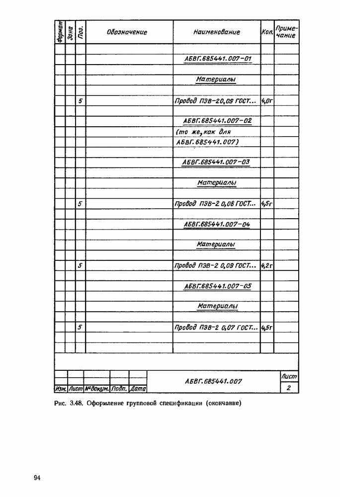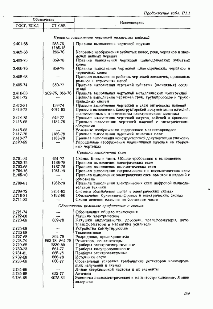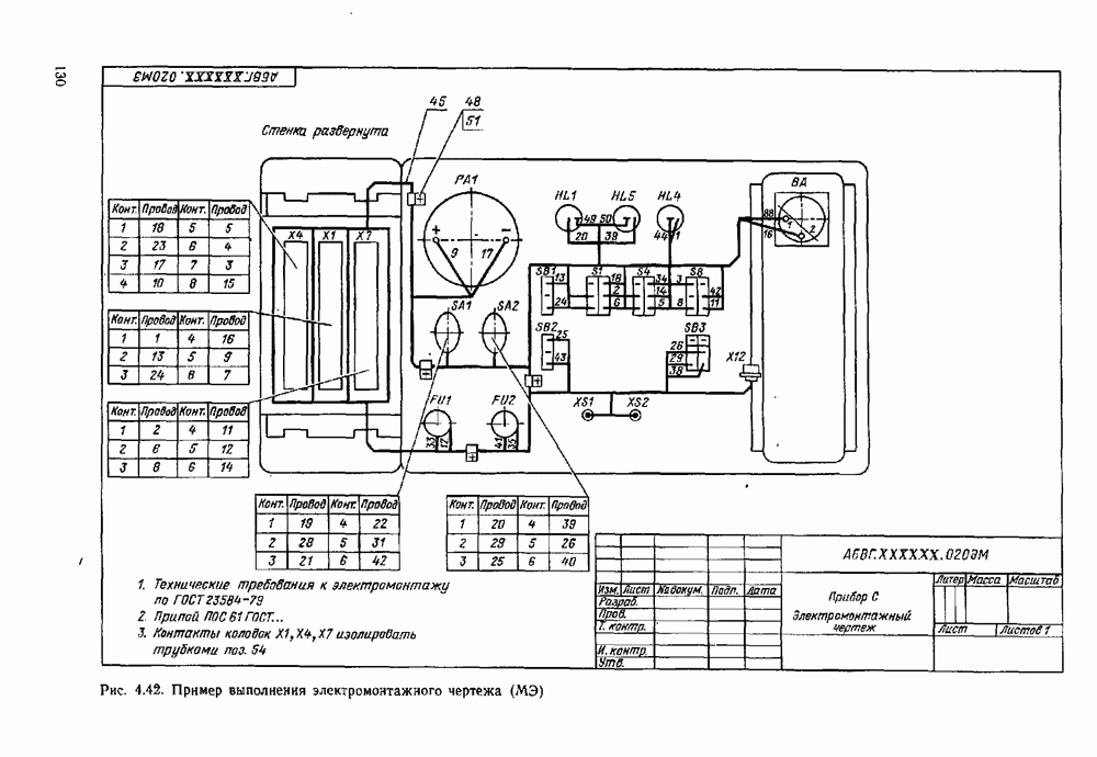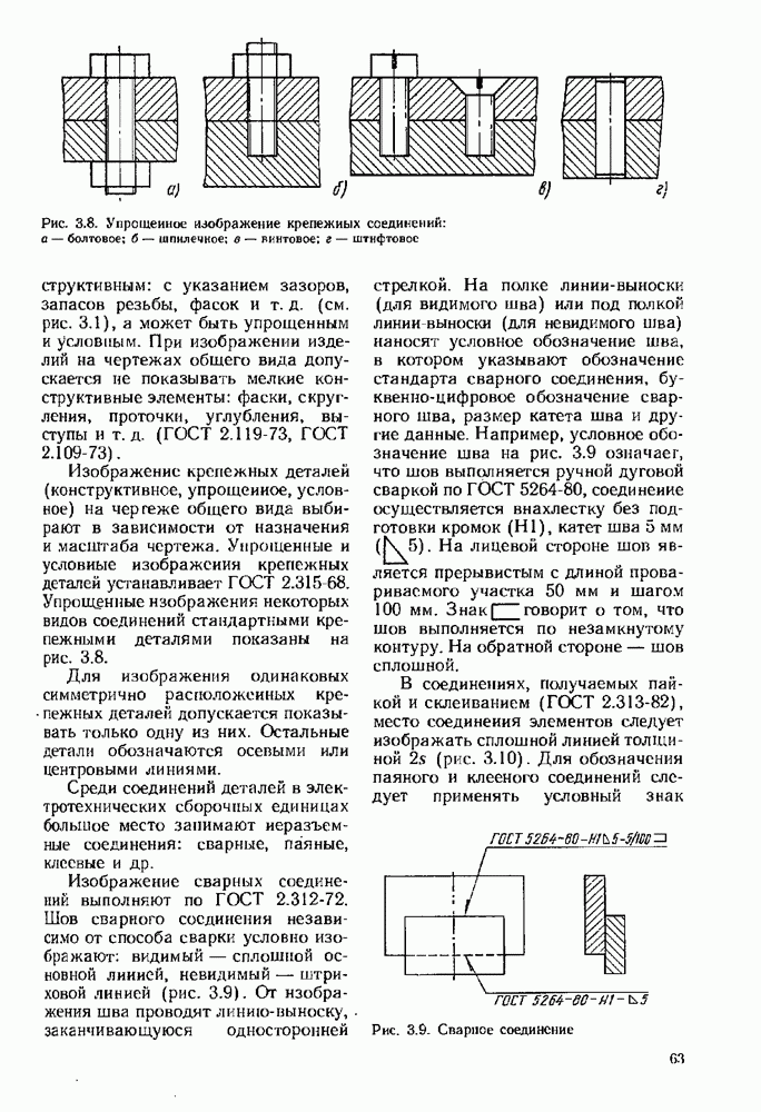 (кликните для просмотра скана) Рис. 1.7. (см. скан) Конструкторский документ—пояснительная записка Сборочный чертеж содержит упрощенное изображение сборочной единицы и другие данные, необходимые для ее изготовления (сборки). На сборочном чертеже (рис, 1.5) составные части сборочной единицы снабжаются полками-выносками, на которых проставляются номера позиций этих составных частей в соответствии с порядковым номером позиции в спецификации. На сборочном чертеже (рис. 1.5) приведены требования по условиям пайки п. 2 и габаритный размер по длине кабеля ВЧ после сборки. Схема представляет собой конструкторский документ, на котором в виде условных графических обозначений показаны составные части изделия, а также связи между ними. В зависимости от входящих в состав изделия элементов и связей между ними схемы подразделяют на следующие виды (ГОСТ 2.701-84): электрические, гидравлические, пневматические, газовые (кроме пневматических), кинематические, вакуумные, оптические, энергетические, деления, комбинированные. Назначение схемы определяет ее Рис. 1.8. (см. скан) Образец текста пояснительной записки тип: структурная, функциональная, принципиальная (полная), соединений (монтажная), подключения, общая, расположения, объединенная. Схема кинематическая принципиальная «Электропривод» (рис. 1.6) содержит: а) изображение схемы, которое состоит из условных графических обозначений элементов, связей между элементами, буквенно-цифровых позиционных обозначений элементов; б) перечень составных элементов схемы, выполненный в виде таблицы. По изображению можно представить передачу и преобразование движения в электроприводе от двигателя до ведомого звена. В перечне составных элементов разъясняются обозначения элементов и приводятся некоторые их параметры. Пояснительная записка (ГОСТ 2.106-68) содержит в общем случае сведения о назначении и области применения проектируемого изделия, техническую характеристику, описание устройства и принципа действия изделия, обоснование принятых при разработке технических решений, технико-экономические показатели. Первым листом пояснительной записки является титульный лист (рис. 1.7), который выполняется на формате А4 и содержит наименование министерства или ведомства, разработавшего документ, код изделия по общесоюзному классификатору продукции (ОКП), грифы согласования и утверждения, наименование изделия, обозначение документа, подписи разработчиков документа, год издания документа. Пример выполнения промежуточной страницы пояснительной записки приведен на рис. 1.8. (см. скан) Расчеты включают эскиз или схему рассчитываемого изделия, задачу расчета, данные для расчета, условия расчета, расчет, заключение. Из других конструкторских документов следует упомянуть: а) теоретический чертеж, который определяет геометрическую форму (обводы) изделия и координаты расположения составных частей; б) габаритный чертеж, содержащий контурное изображение изделия с габаритными, установочными и присоединительными размерами; в) монтажный чертеж, необходимый для монтажа изделия на месте применения. Каждый конструкторский документ имеет код по ГОСТ 2.102-68. Так, чертеж общего вида имеет код