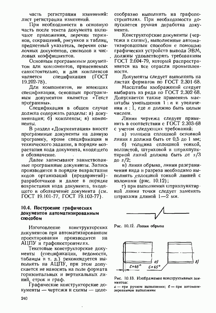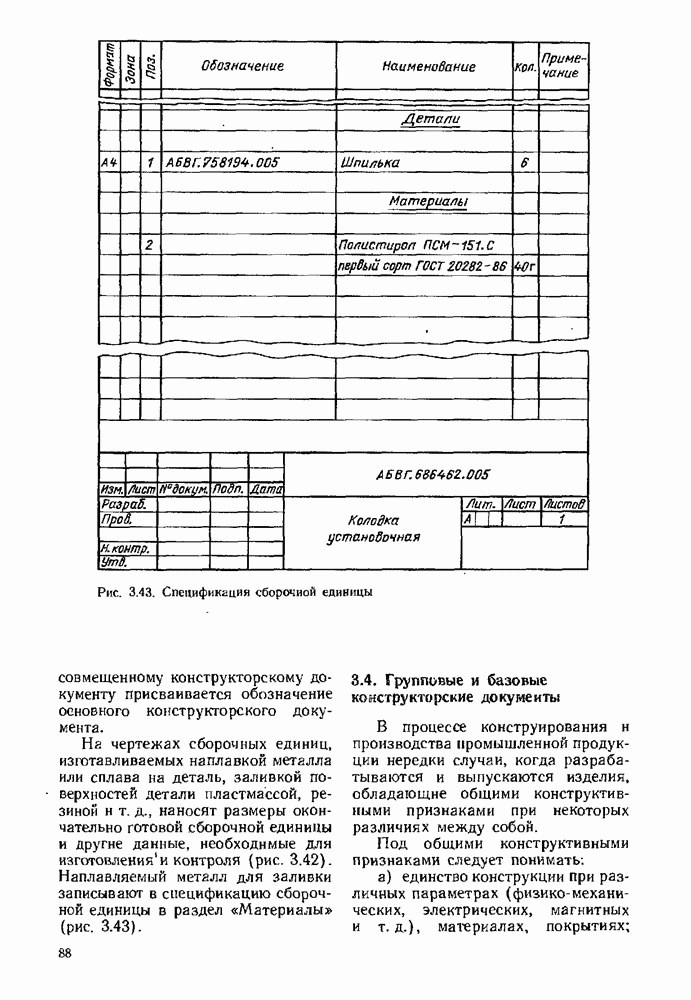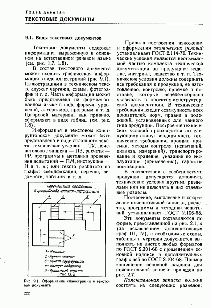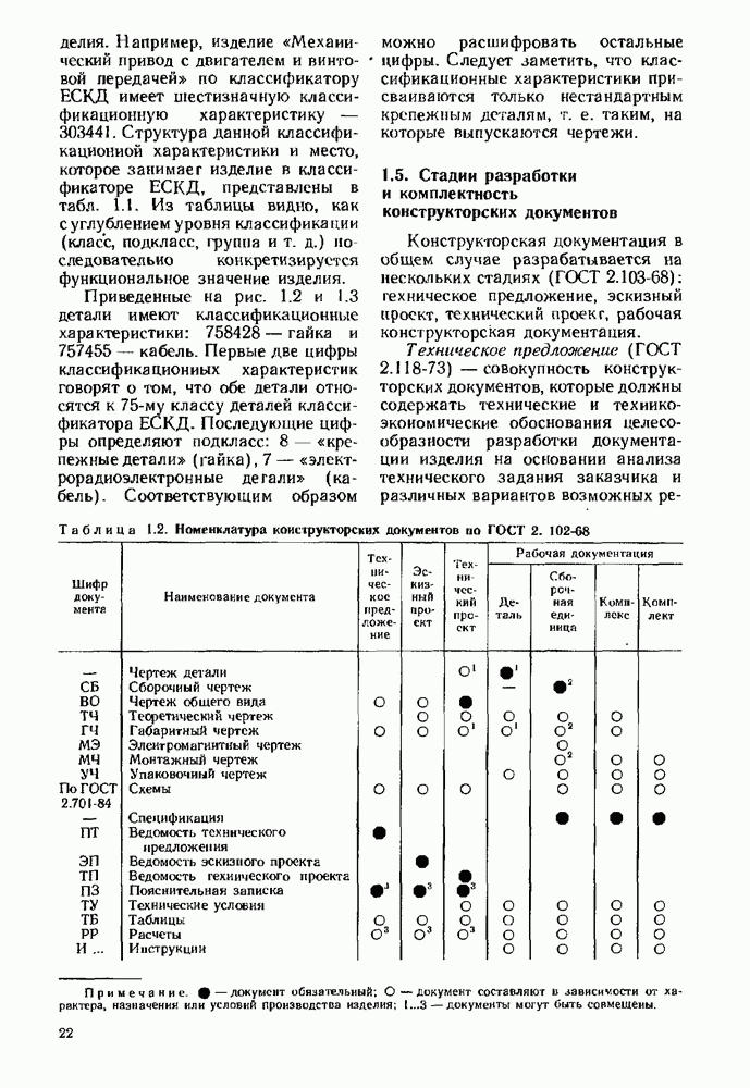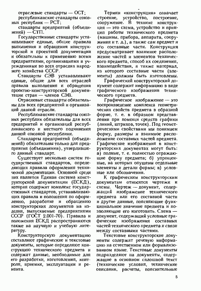 1.3. Чертежи, схемы и текстовые конструкторские документыКонструкторская документация определяет устройство и состав изделия, содержит необходимые данные для его изготовления, контроля, приемки, эксплуатации и ремонта. Конструкторские докуметы в зависимости от представленной в них информации подразделяют на графические (чертежи и схемы) и текстовые (спецификации, пояснительные записки, расчеты, ведомости, инструкции, технические условия и т. д.). В графическом конструкторском документе основная информация о техническом предмете представлена в виде графического изображения, выполненного черным цветом при помощи линий, штрихов и точек. Информация О предмете в виде графического изображения наиболее удобна при рассмотрении устройства и принципа действия изделия, взаимного расположения и устройства его составных частей, геометрической формы деталей. Часто графическая информация сопровождается текстовой или знаковой (знаки и цифры) информацией. Текстовые документы содержат речевую описательную информацию, а также расчеты и их результаты. Текстовый документ оформляется в виде сплошного текста или текста, разбитого на графы (спецификации, ведомости, таблицы и т. д.). Стандарты ЕСКД (ГОСТ 2.102-68) предусматривают номенклатуру