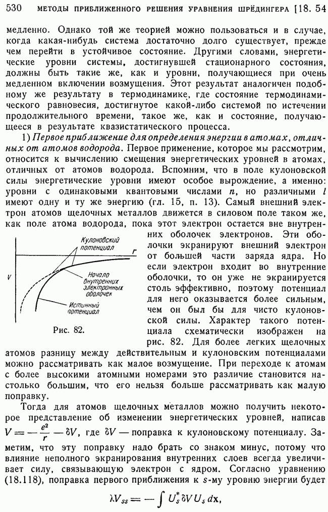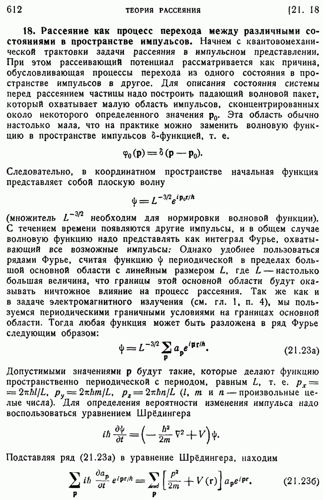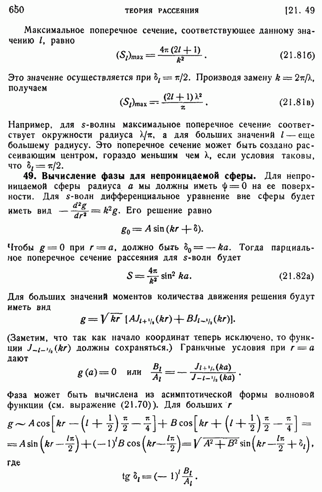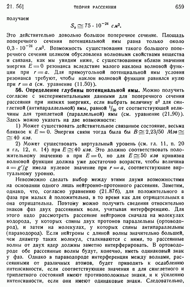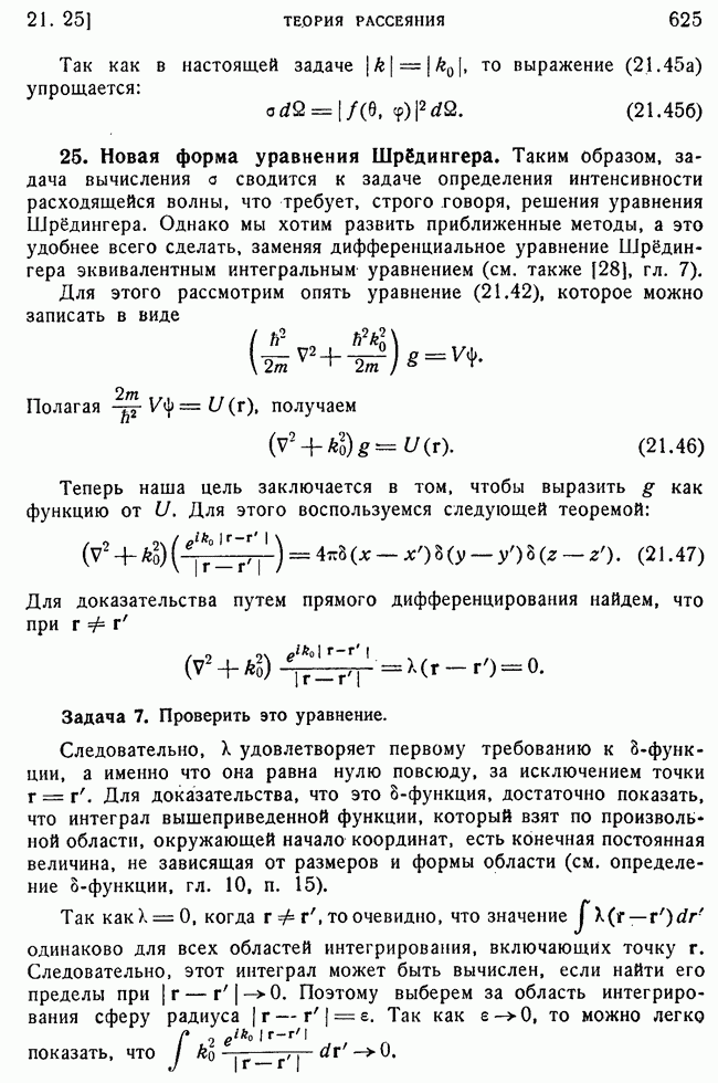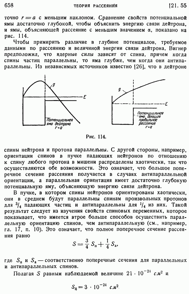 То, что борновское приближение оказалось столь подходящим, весьма плодотворно отразилось на развитии атомной теории, так как в противном случае разработка теории строения атома надолго затормозилась бы просто вследствие математических трудностей. Однако можно легко показать, что при рассеянии на ядрах борновское приближение непригодно, за исключением случая очень высоких энергий рассеиваемых частиц (100 Мэв или выше). Чтобы показать это, воспользуемся прямоугольной ямой, моделирующей потенциал ядерных сил, как это рассматривалось в гл. 11, п. 3. Можно