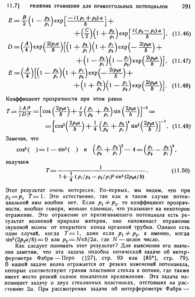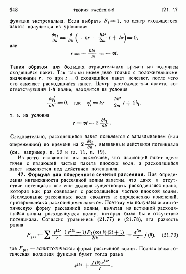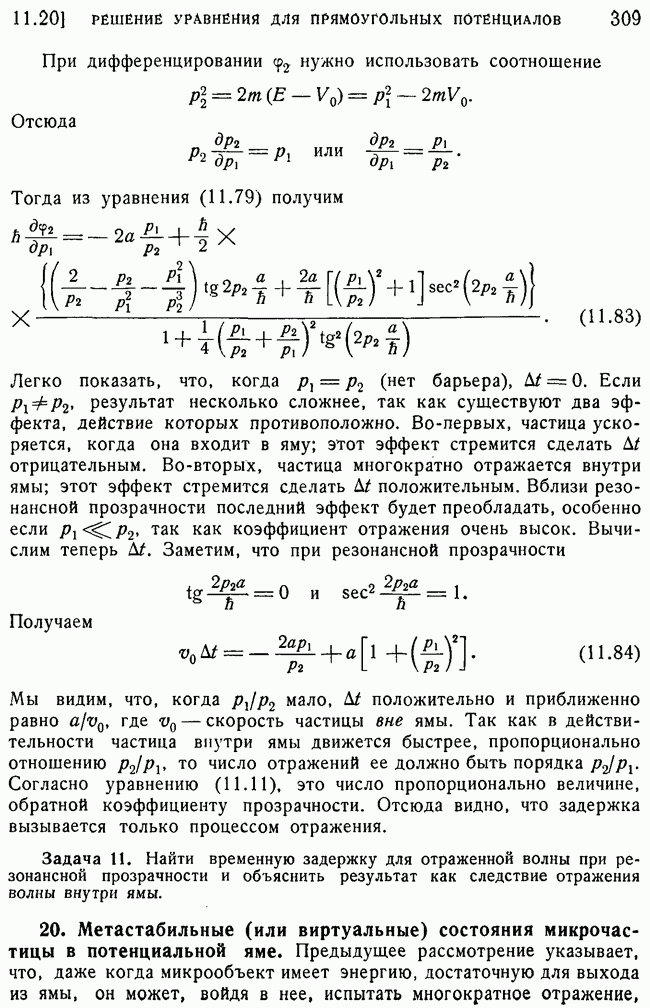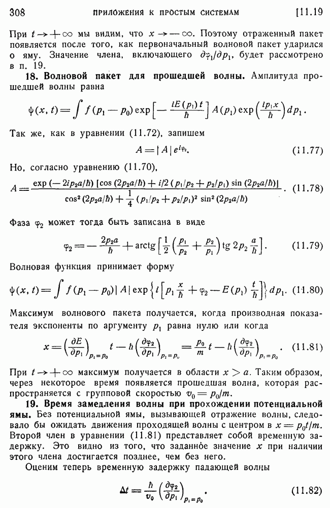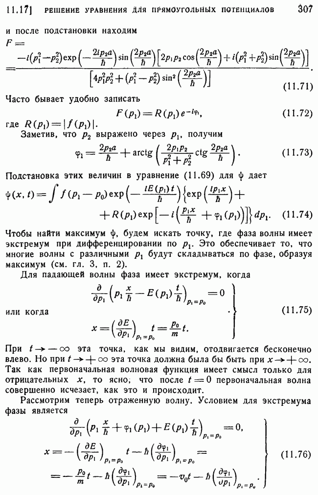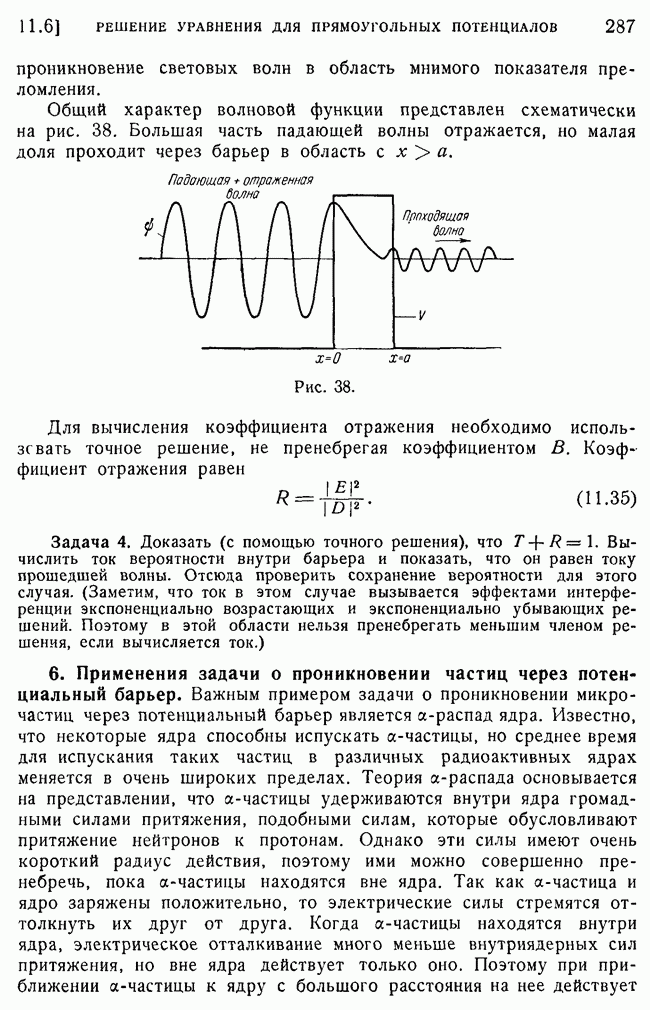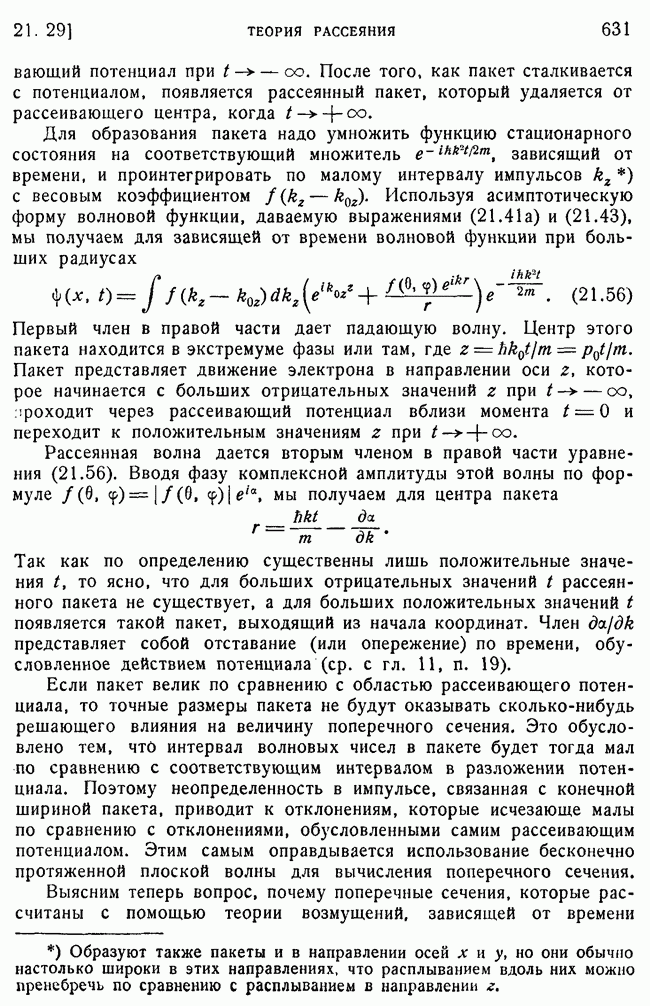 То, что борновское приближение оказалось столь подходящим, весьма плодотворно отразилось на развитии атомной теории, так как в противном случае разработка теории строения атома надолго затормозилась бы просто вследствие математических трудностей. Однако можно легко показать, что при рассеянии на ядрах борновское приближение непригодно, за исключением случая очень высоких энергий рассеиваемых частиц (100 Мэв или выше). Чтобы показать это, воспользуемся прямоугольной ямой, моделирующей потенциал ядерных сил, как это рассматривалось в гл. 11, п. 3. Можно
