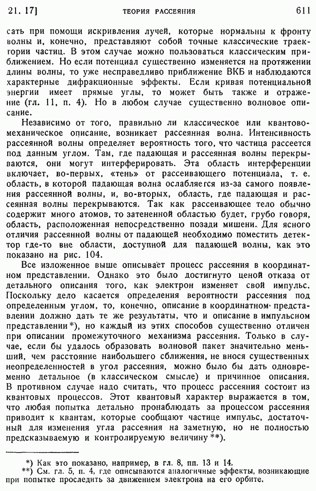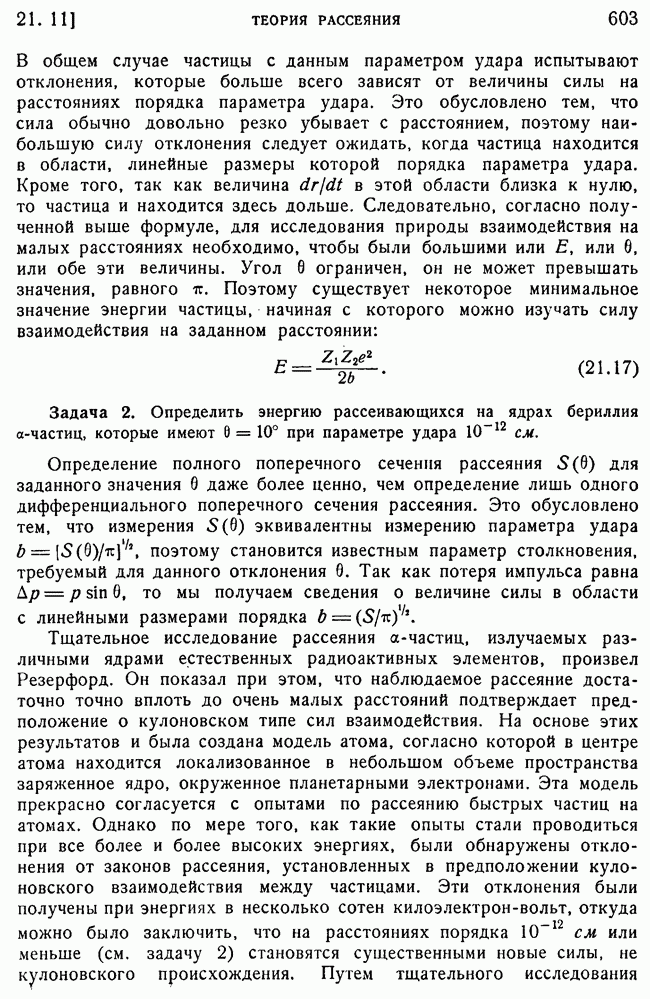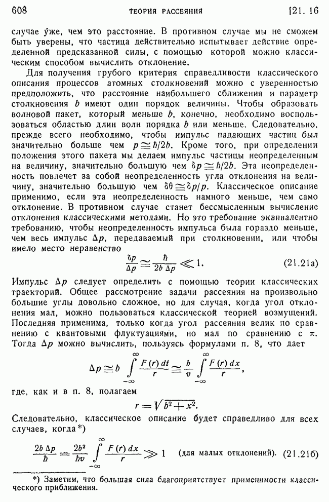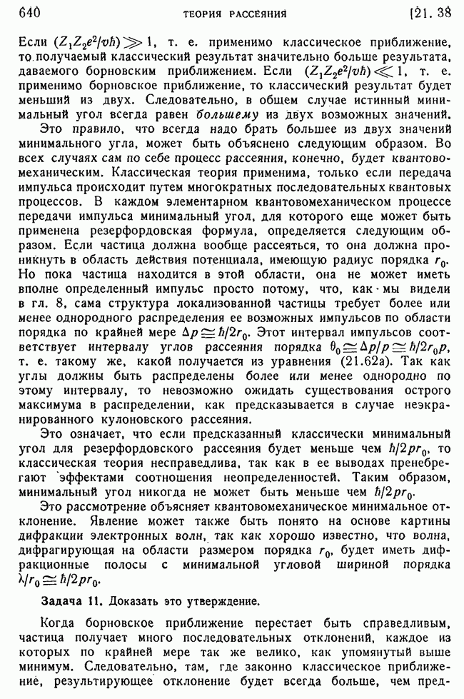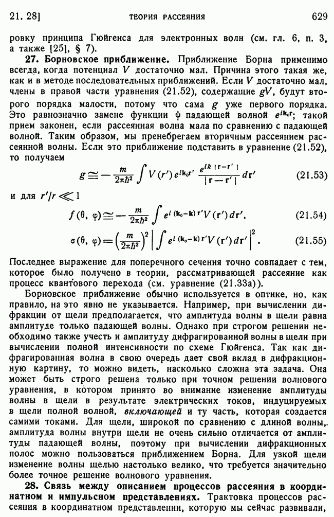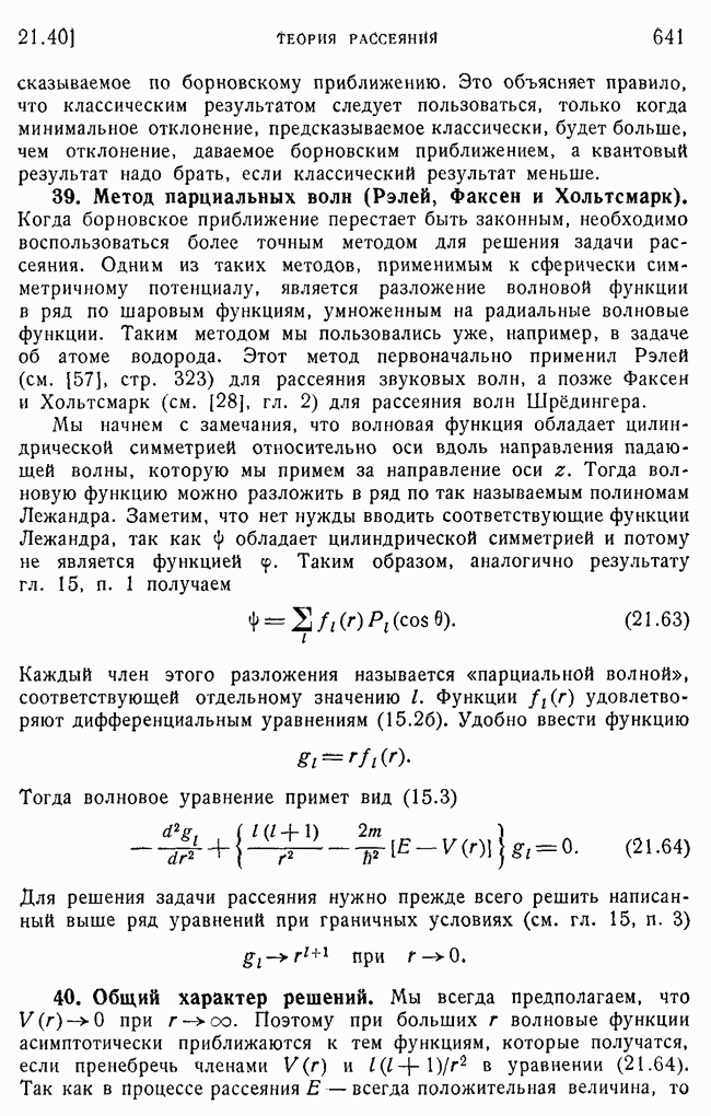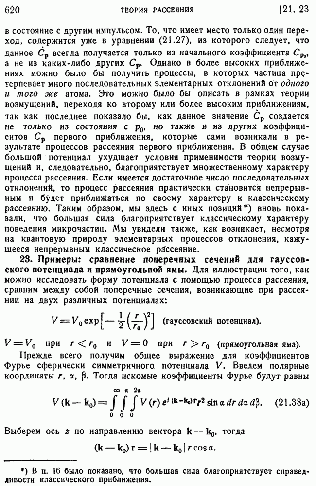 и выше (см. гл. 15, п. 5). Так как большинство ядерных экспериментов производится при более низких энергиях, то мы будем пользоваться более точными методами, чтобы получить правильное представление о ядерном рассеянии. К сожалению, получается так, что когда борновское приближение уже непригодно для ядер, то еще нельзя считать законной классическую трактовку, поэтому приходится иметь дело со сложной промежуточной областью, привлекая для этого более точные методы, которые будут описаны в п. 39.