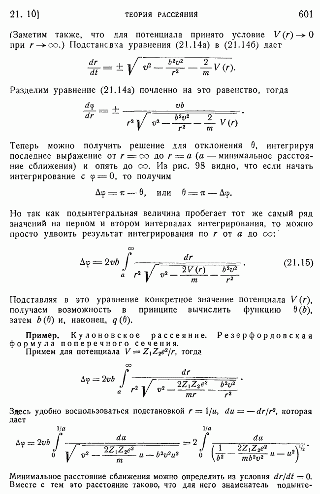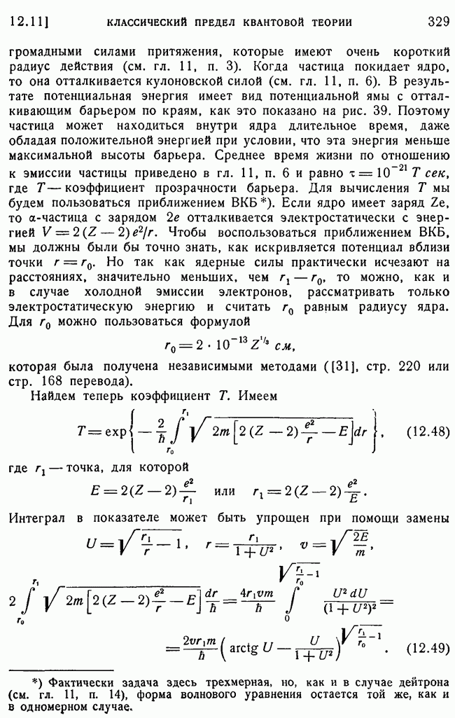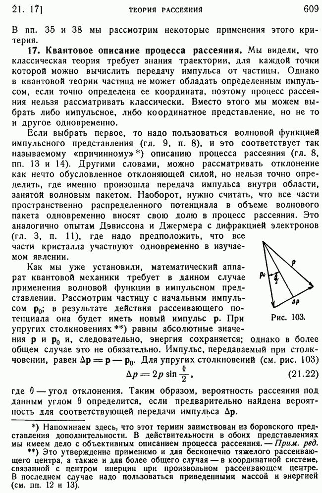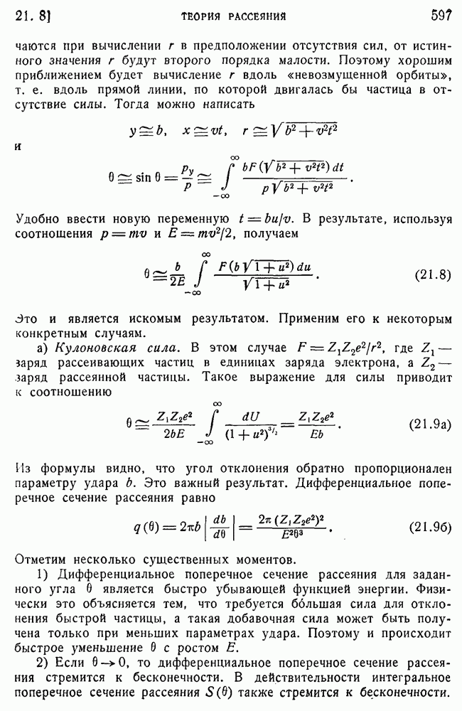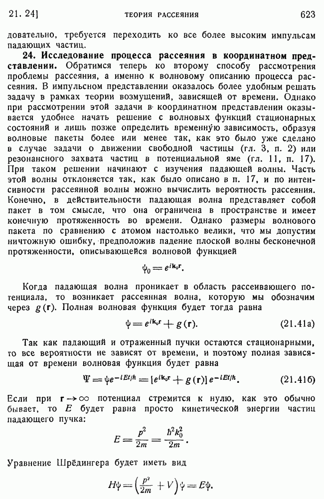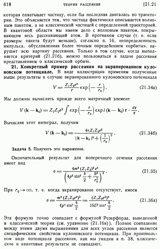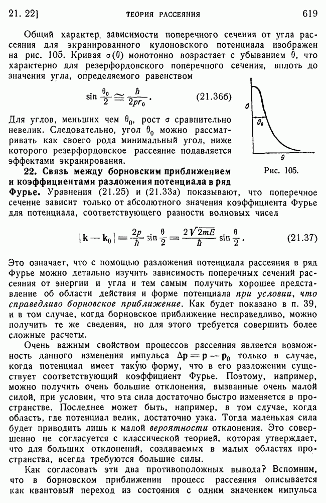 и выше (см. гл. 15, п. 5). Так как большинство ядерных экспериментов производится при более низких энергиях, то мы будем пользоваться более точными методами, чтобы получить правильное представление о ядерном рассеянии. К сожалению, получается так, что когда борновское приближение уже непригодно для ядер, то еще нельзя считать законной классическую трактовку, поэтому приходится иметь дело со сложной промежуточной областью, привлекая для этого более точные методы, которые будут описаны в п. 39.