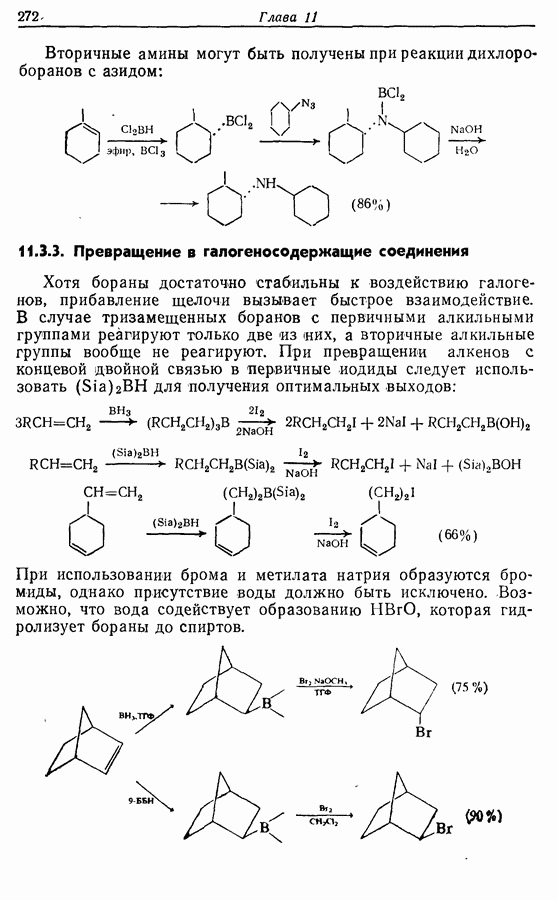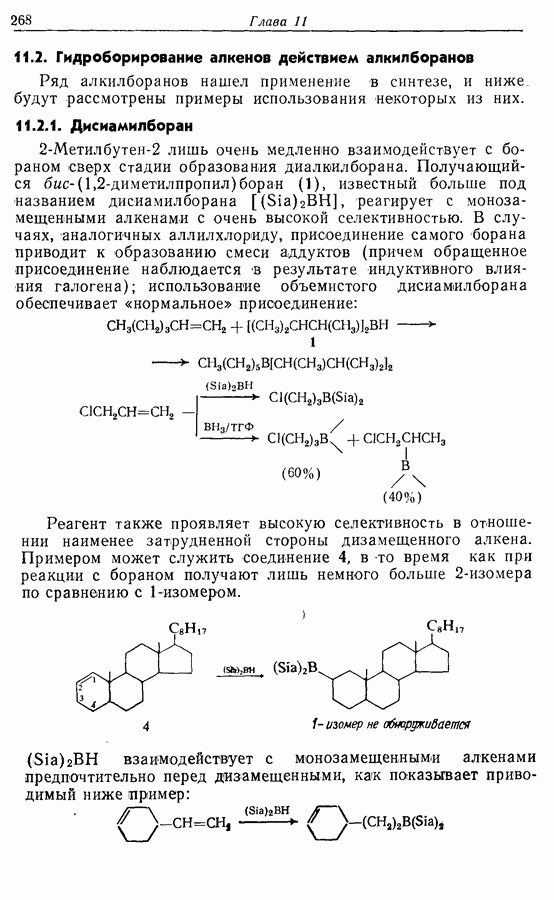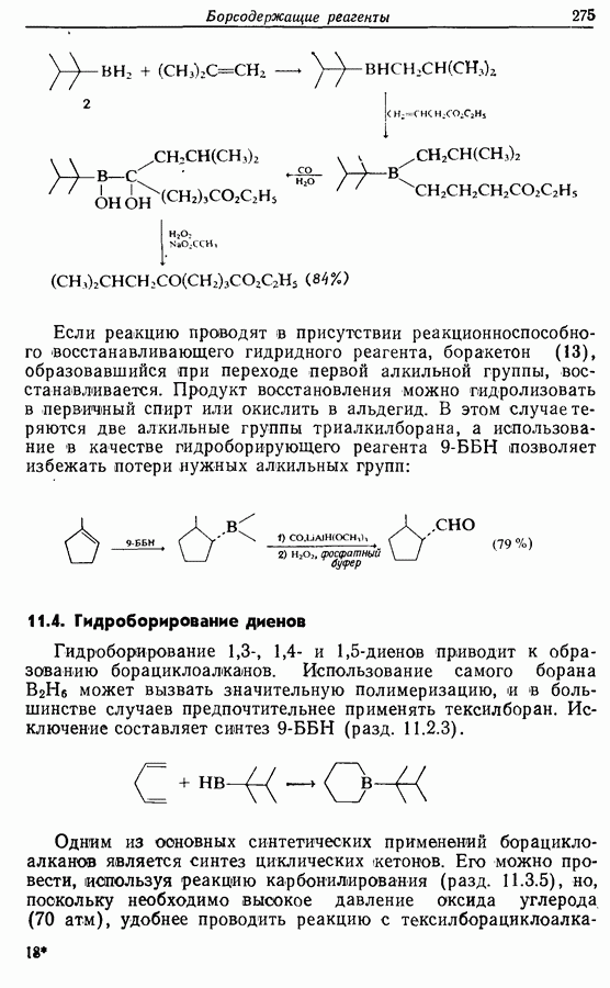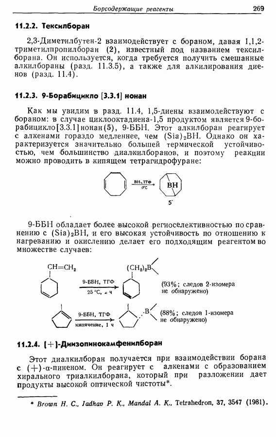 может вызвать значительную полимеризацию, и в большинстве случаев предпочтительнее применять тексилборан. Исключение составляет синтез 9-ББН (разд. 11.2.3).