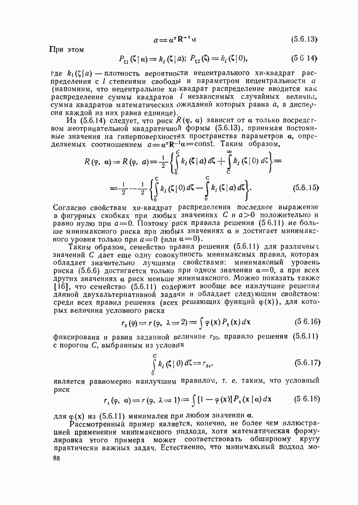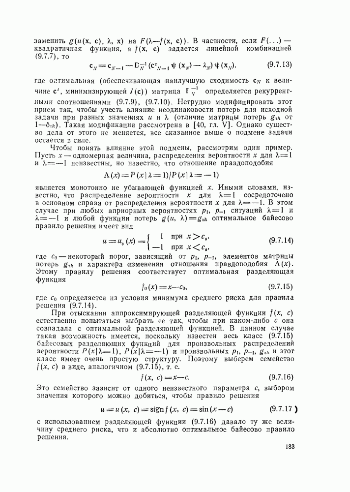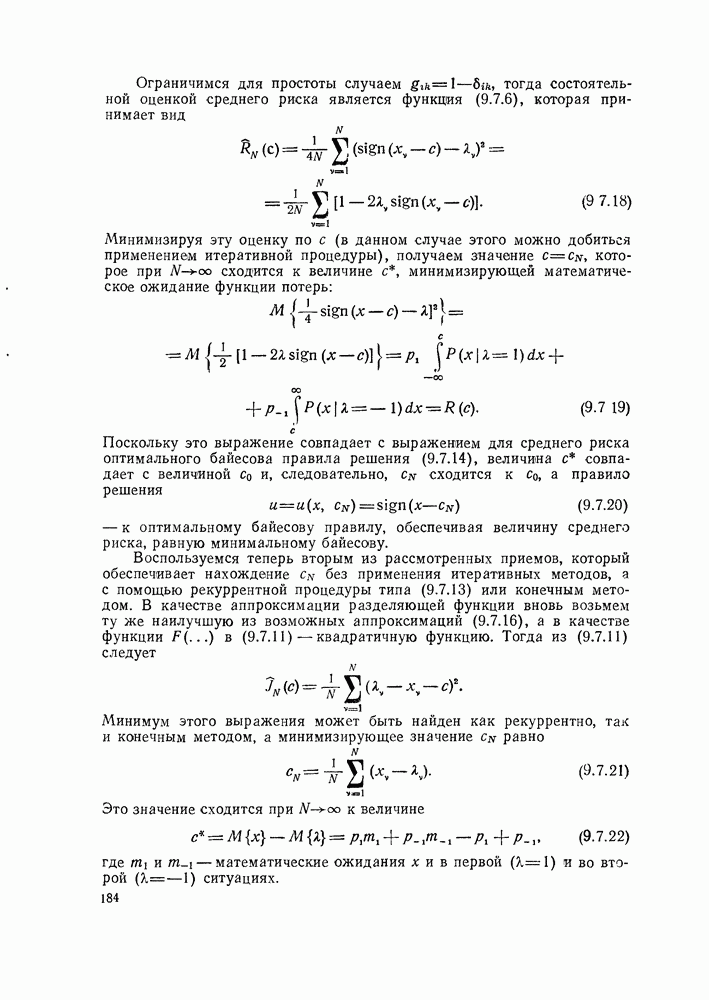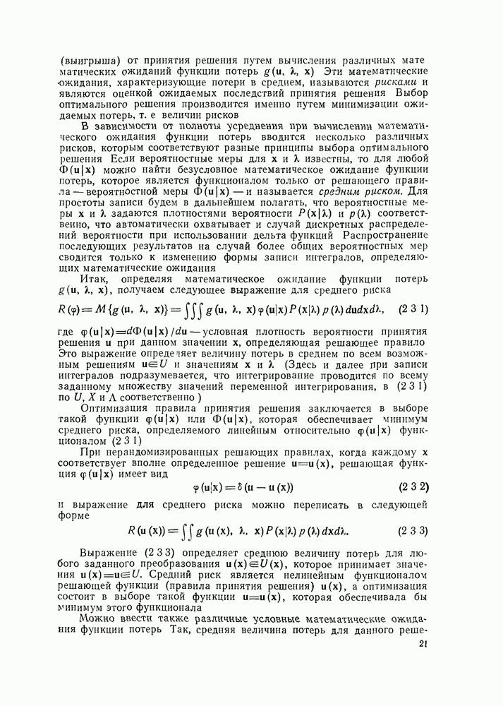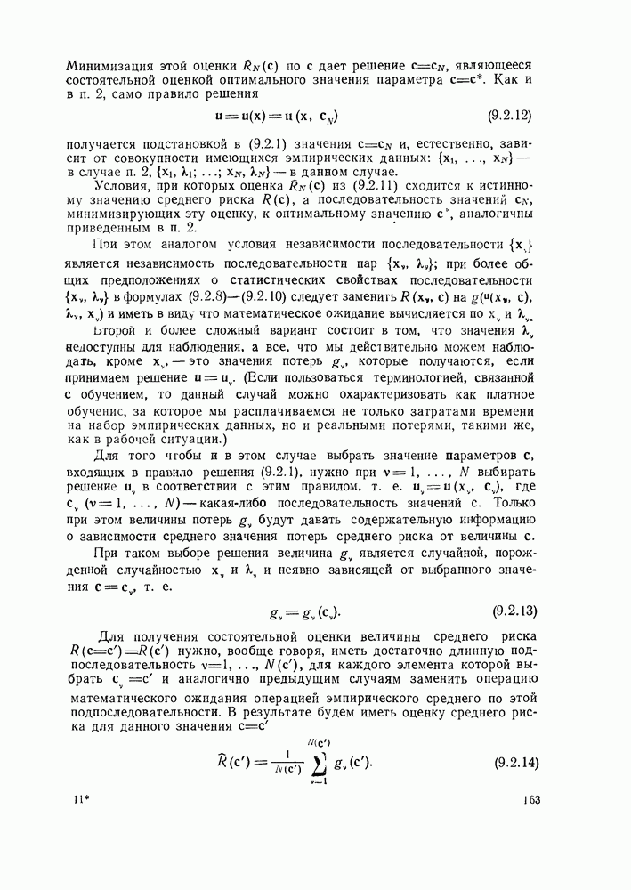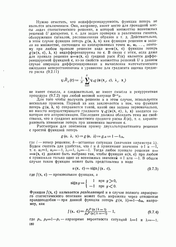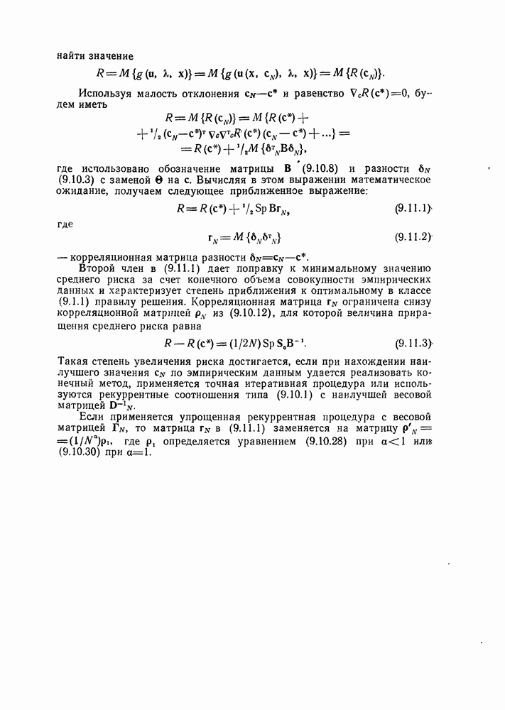 (Во избежание возможных недоумений, связанных с тем, что всюду ради простоты и краткости мы говорили о с в правиле решения (9 2 1) как о векторе, заметим, что при желании матрицу можно вытянуть в вектор, соответствующим образом расположив ее строки или столбцы и применив для нумерации этого вектора систему двойных индексов.) Вычислим для этого правила решения математическое ожидание функции потерь по