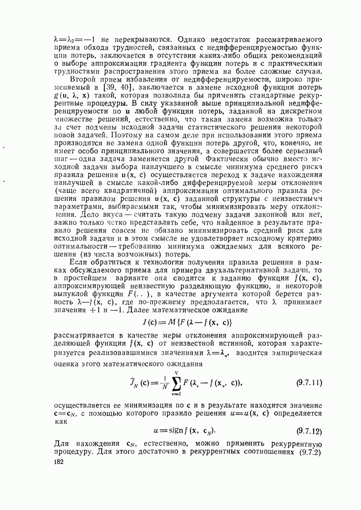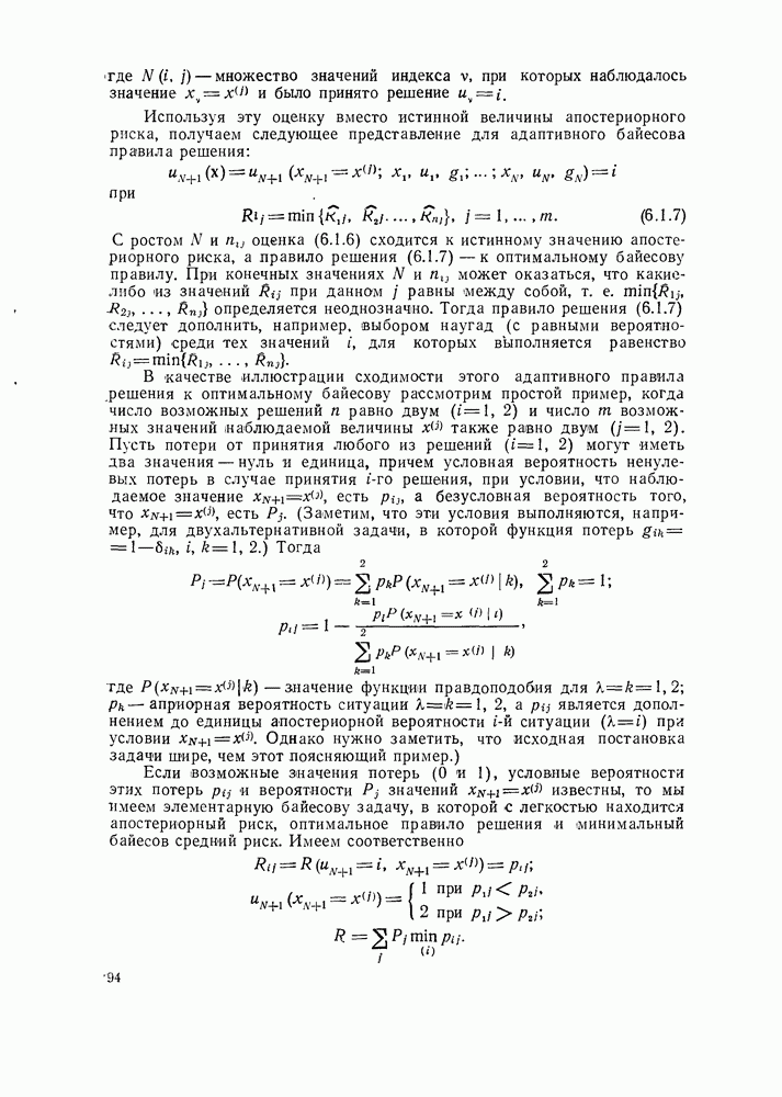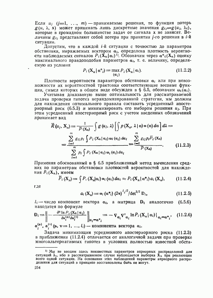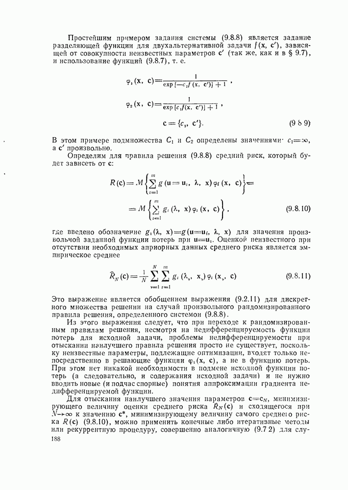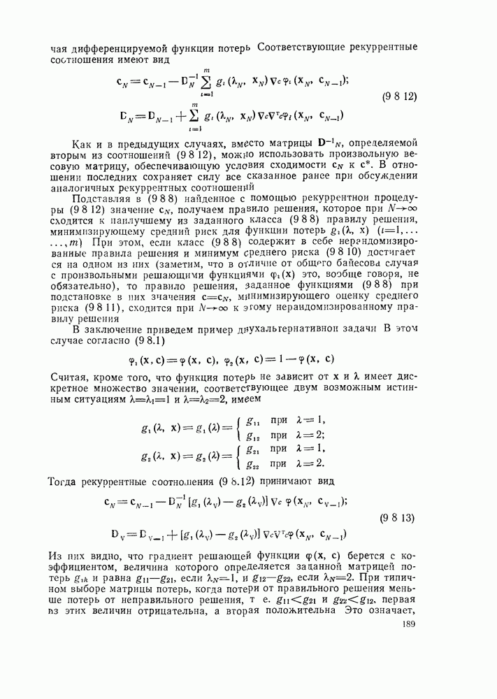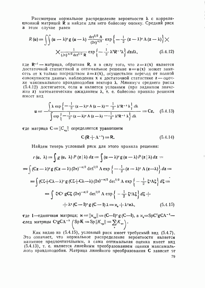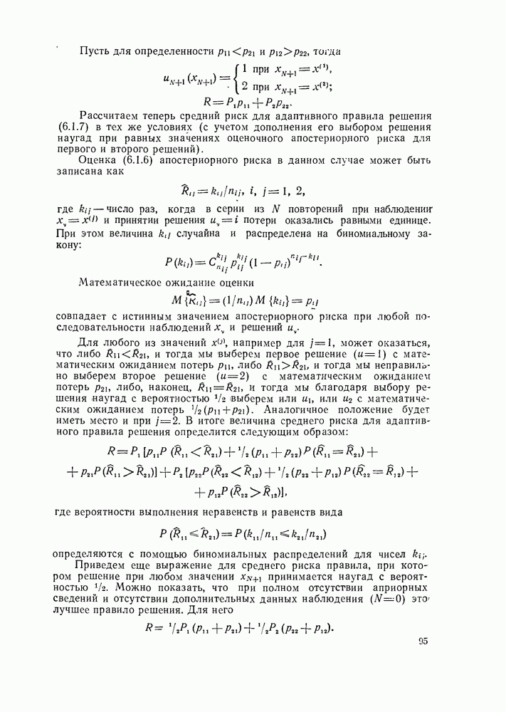 (Во избежание возможных недоумений, связанных с тем, что всюду ради простоты и краткости мы говорили о с в правиле решения (9 2 1) как о векторе, заметим, что при желании матрицу можно вытянуть в вектор, соответствующим образом расположив ее строки или столбцы и применив для нумерации этого вектора систему двойных индексов.) Вычислим для этого правила решения математическое ожидание функции потерь по