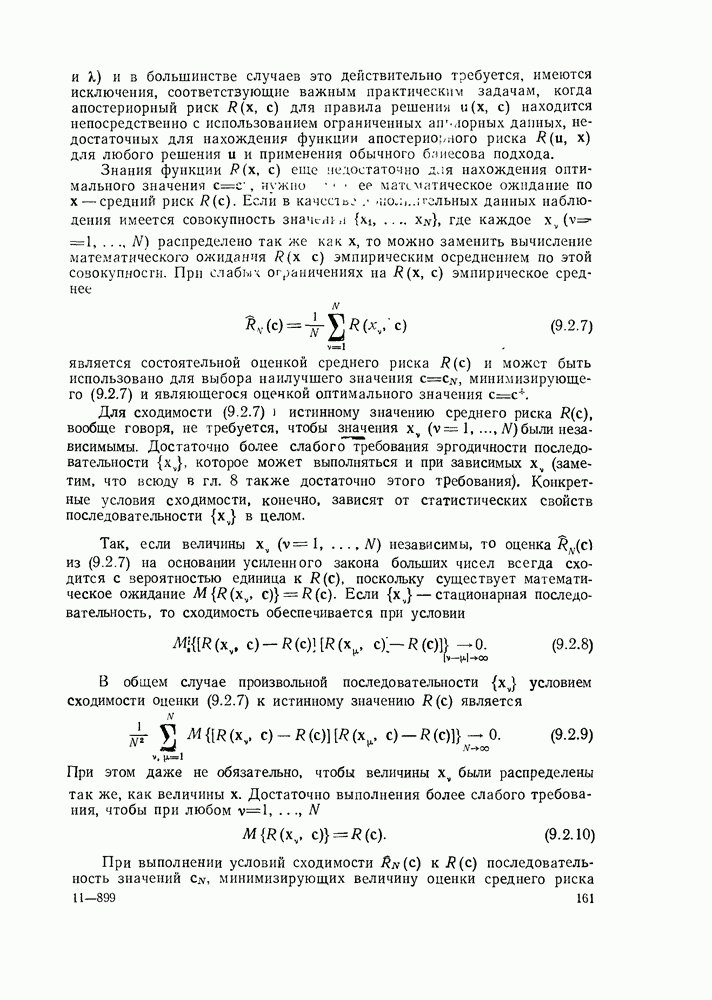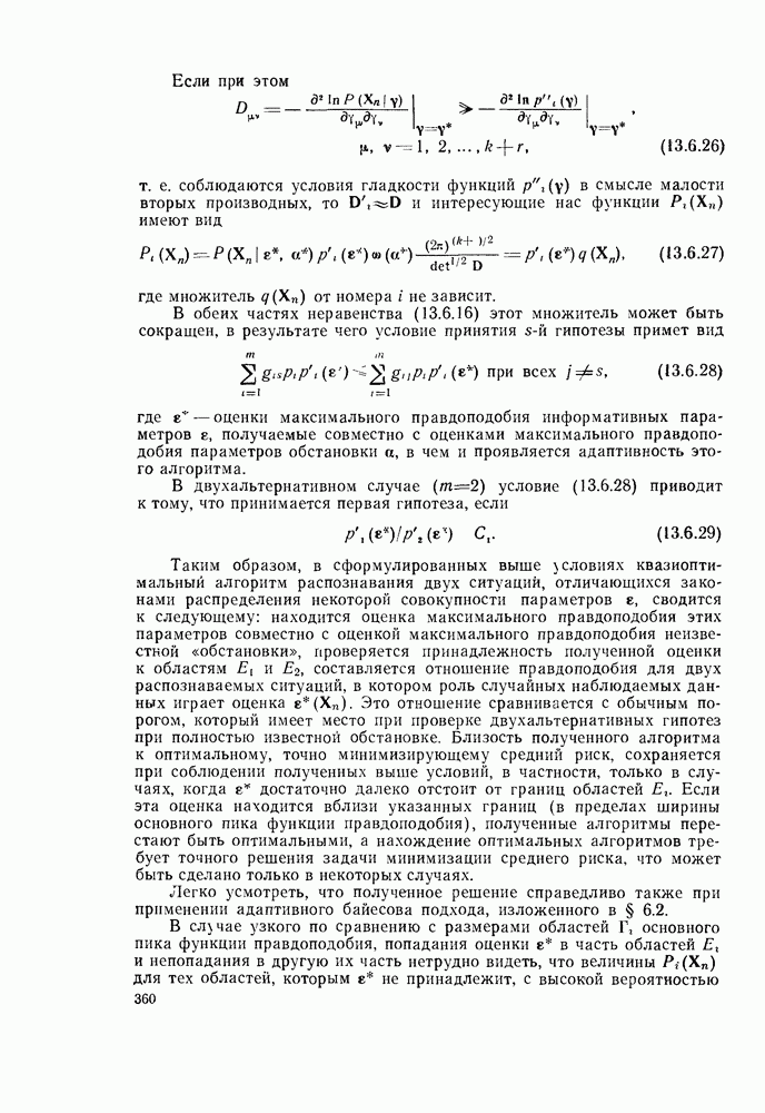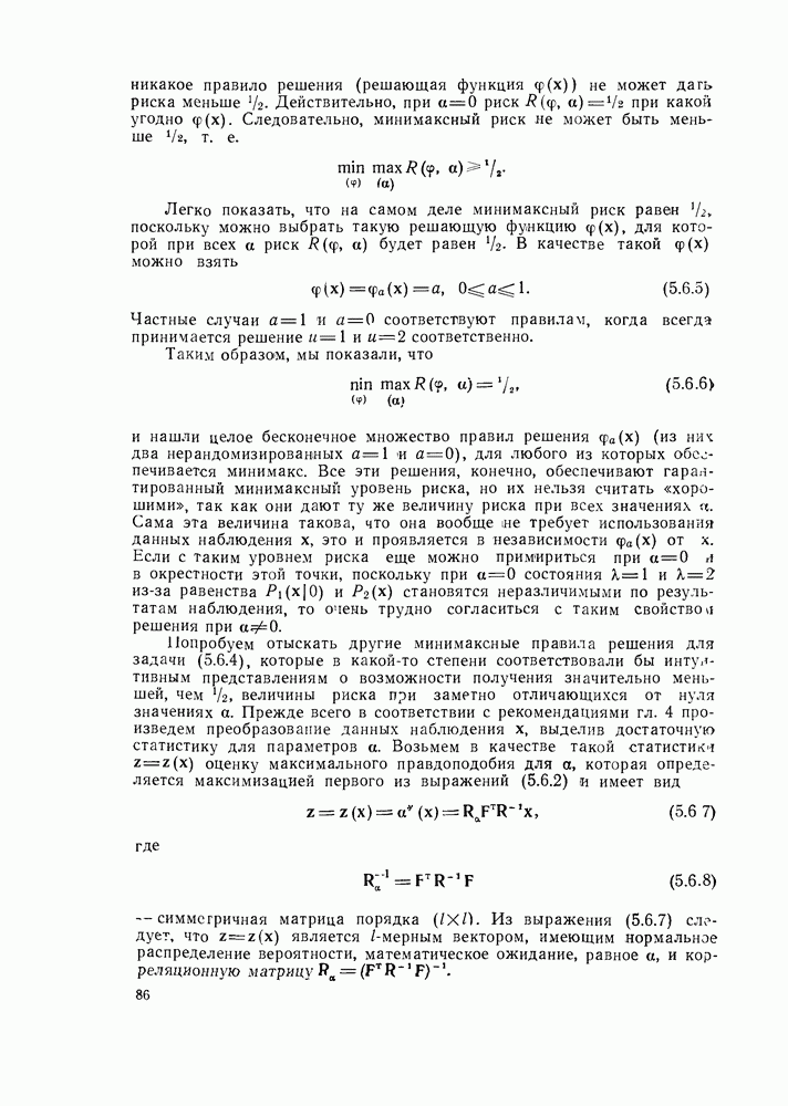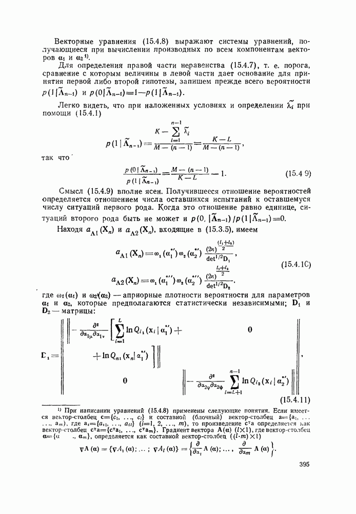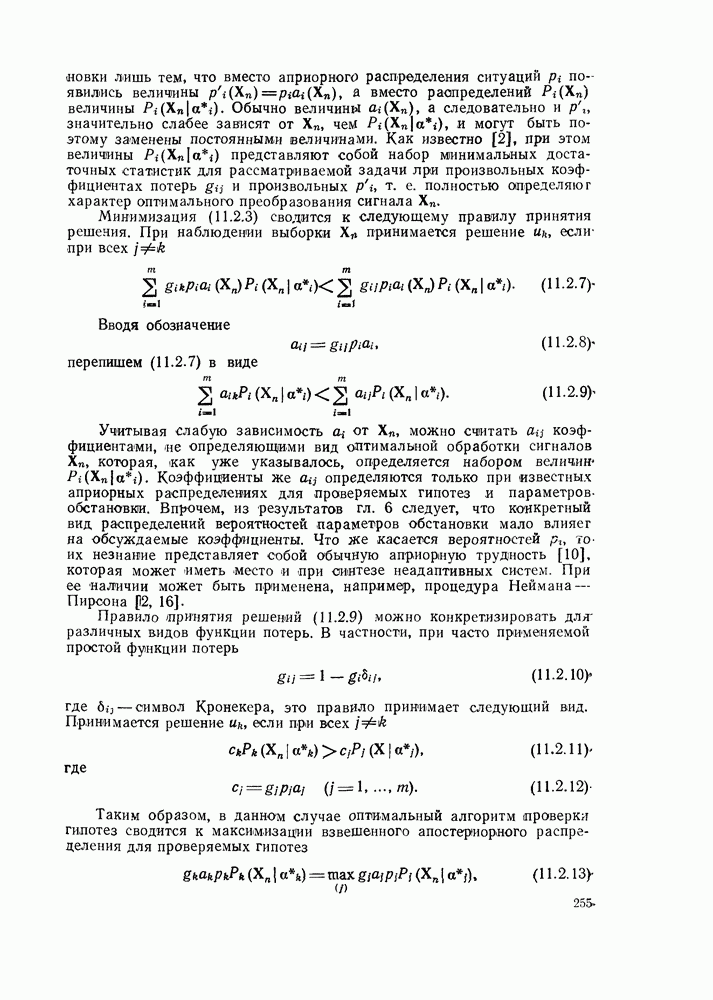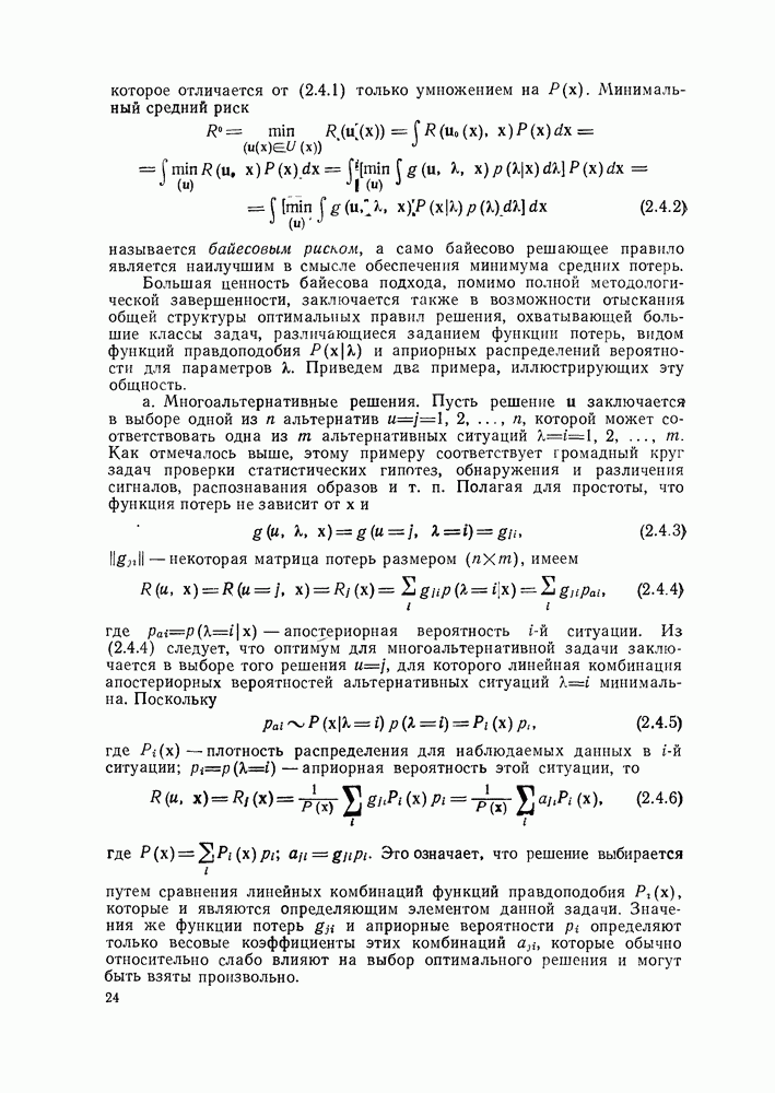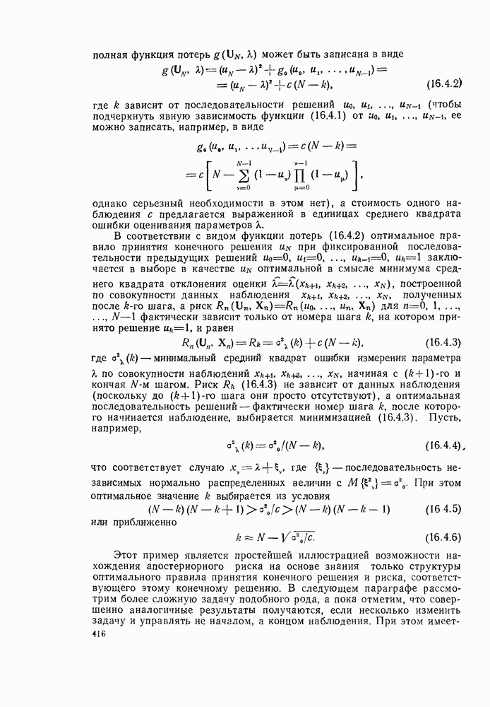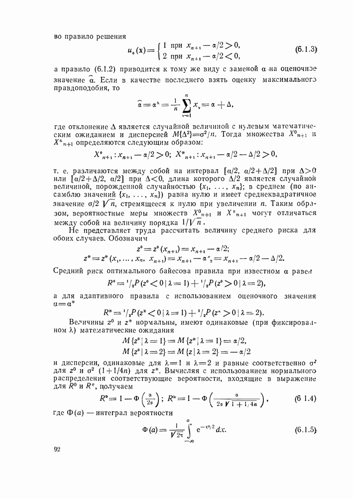 (Во избежание возможных недоумений, связанных с тем, что всюду ради простоты и краткости мы говорили о с в правиле решения (9 2 1) как о векторе, заметим, что при желании матрицу можно вытянуть в вектор, соответствующим образом расположив ее строки или столбцы и применив для нумерации этого вектора систему двойных индексов.) Вычислим для этого правила решения математическое ожидание функции потерь по