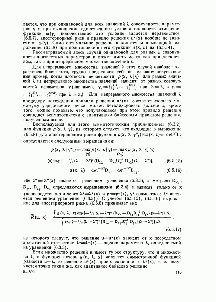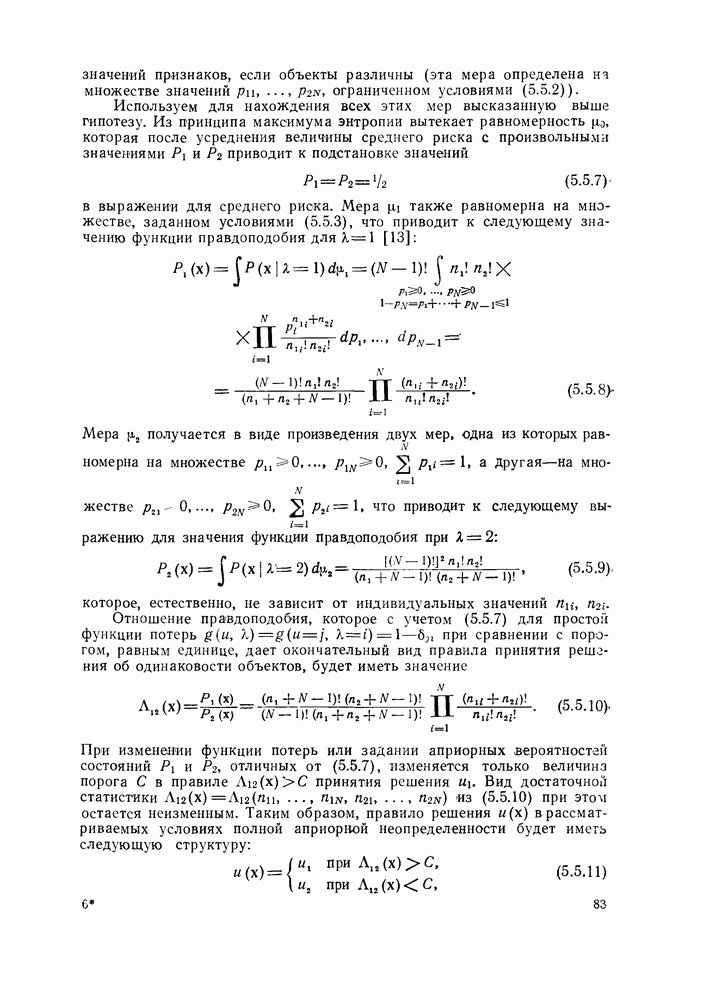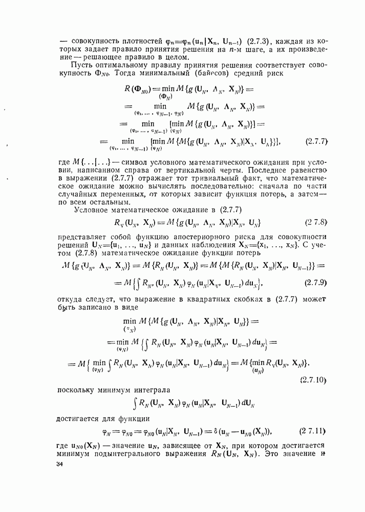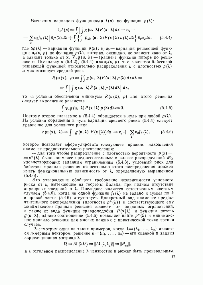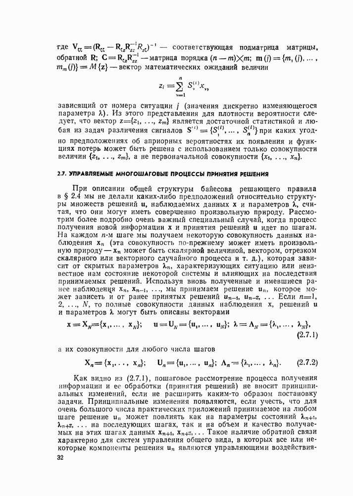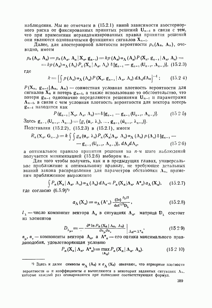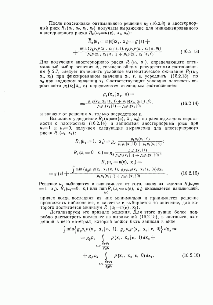 (Во избежание возможных недоумений, связанных с тем, что всюду ради простоты и краткости мы говорили о с в правиле решения (9 2 1) как о векторе, заметим, что при желании матрицу можно вытянуть в вектор, соответствующим образом расположив ее строки или столбцы и применив для нумерации этого вектора систему двойных индексов.) Вычислим для этого правила решения математическое ожидание функции потерь по