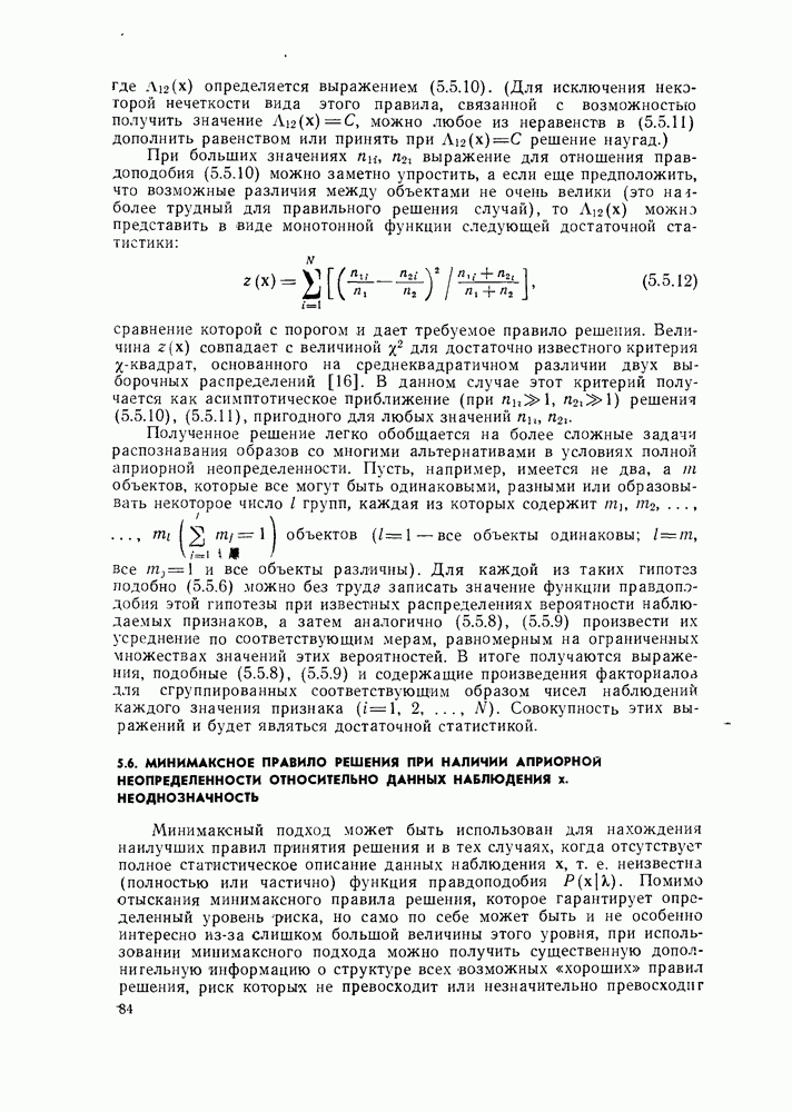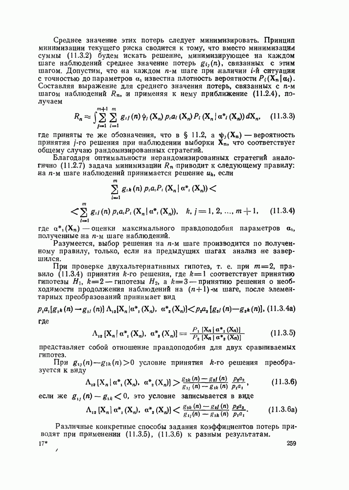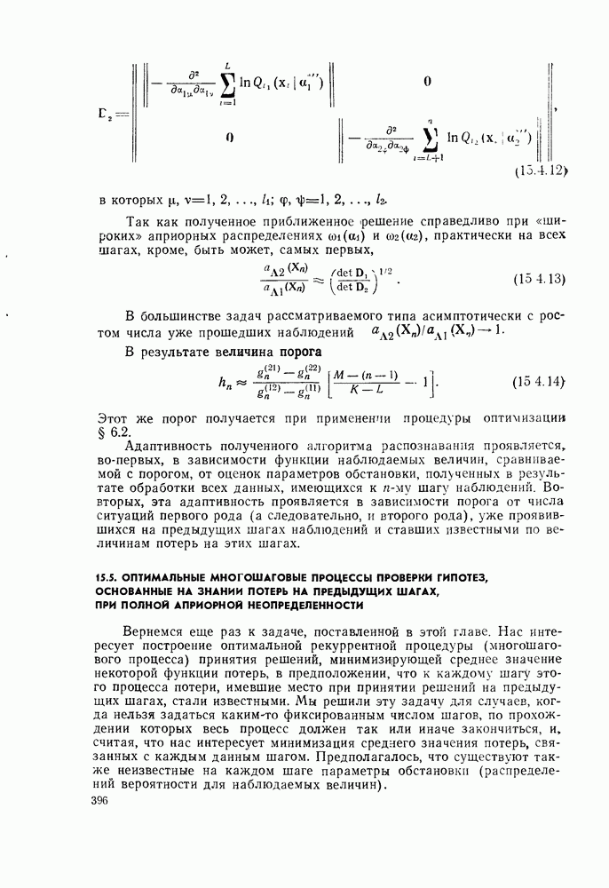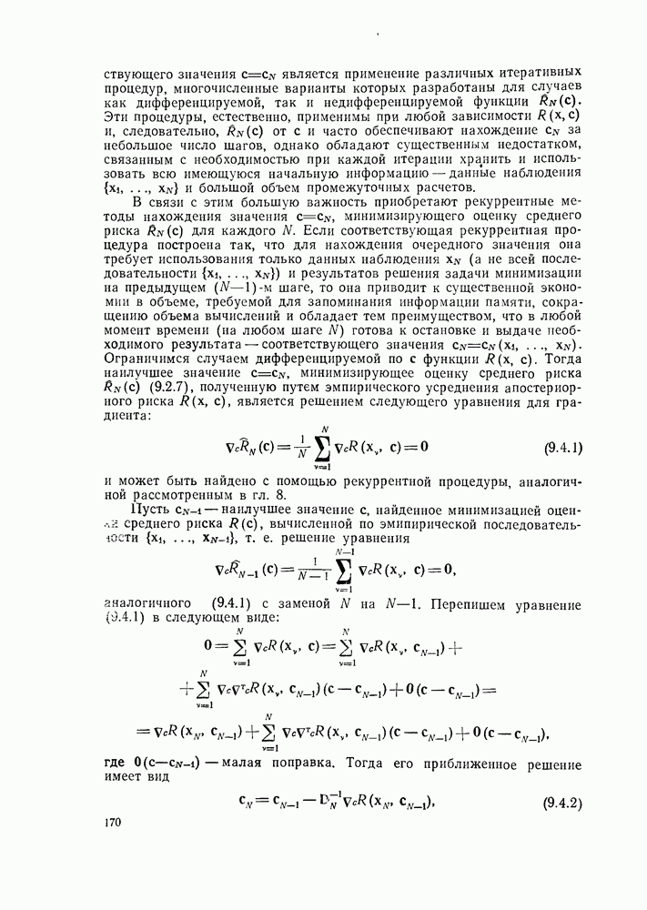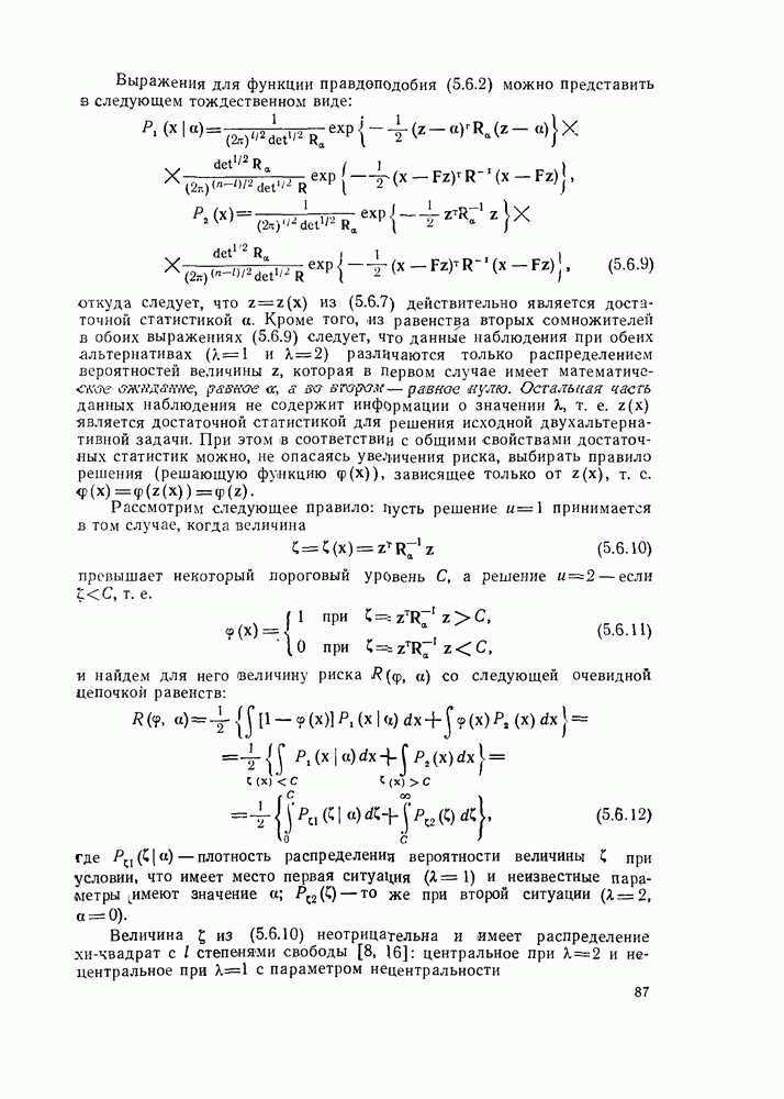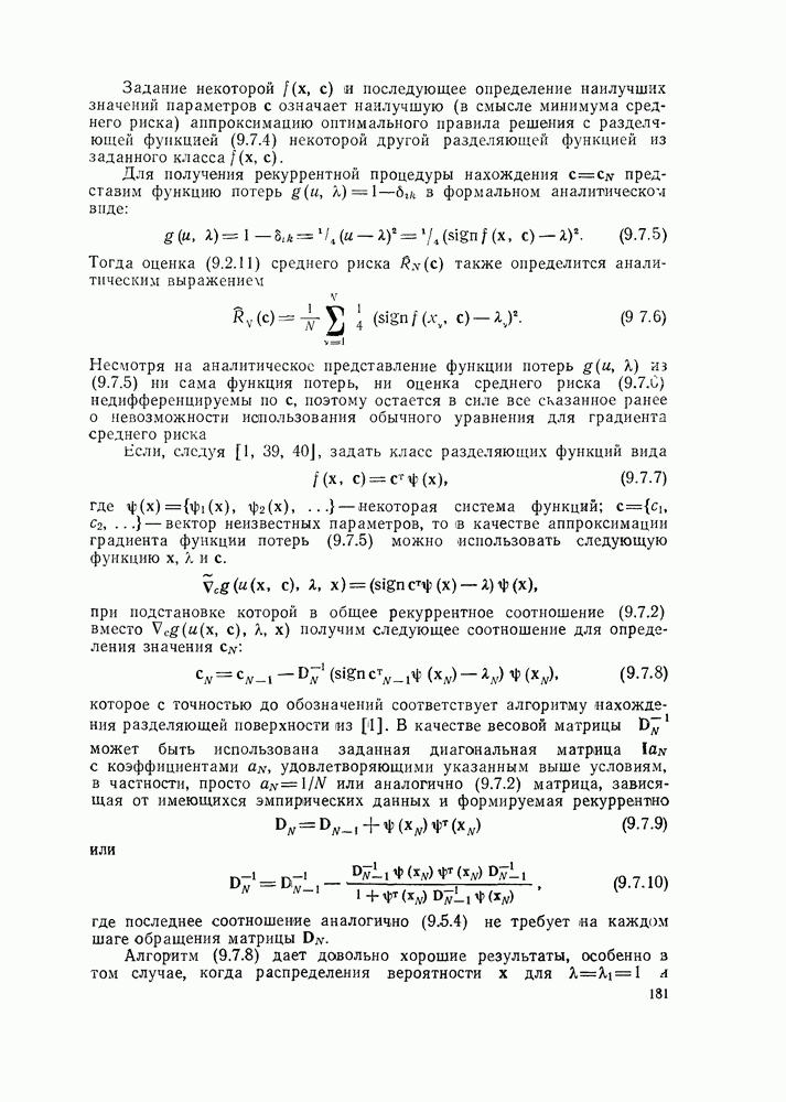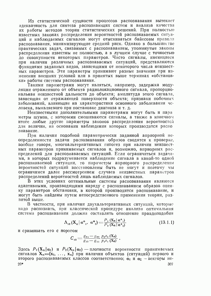 (Во избежание возможных недоумений, связанных с тем, что всюду ради простоты и краткости мы говорили о с в правиле решения (9 2 1) как о векторе, заметим, что при желании матрицу можно вытянуть в вектор, соответствующим образом расположив ее строки или столбцы и применив для нумерации этого вектора систему двойных индексов.) Вычислим для этого правила решения математическое ожидание функции потерь по