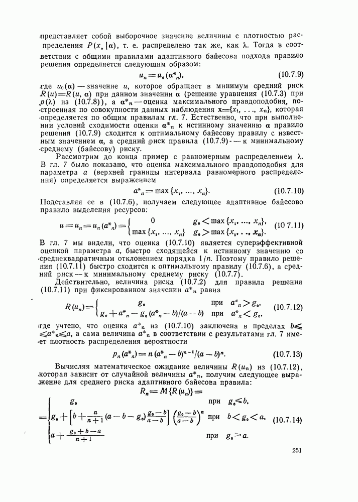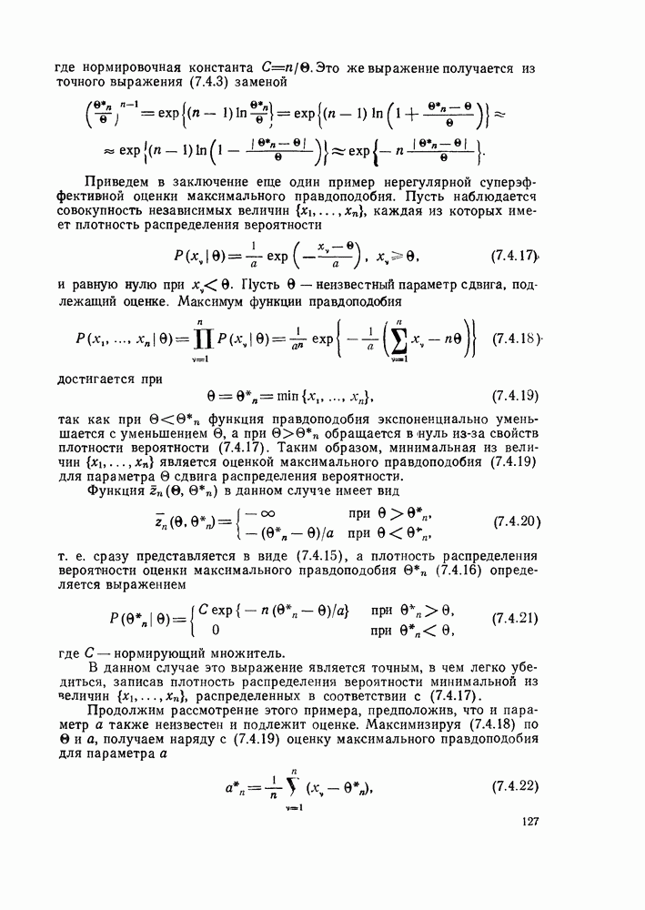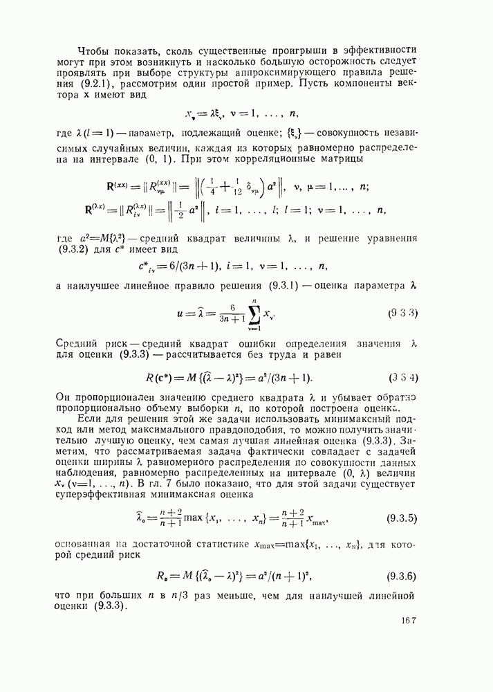 Если для решения этой же задачи использовать минимаксный подход или метод максимального правдоподобия, то можно получить значительно лучшую оценку, чем самая лучшая линейная оценка (9.3.3). Заметим, что рассматриваемая задача фактически совпадает с задачей оценки ширины X равномерного распределения по совокупности данных наблюдения, равномерно распределенных на интервале