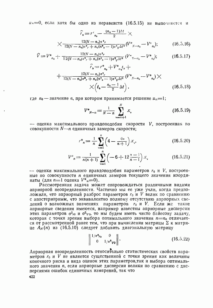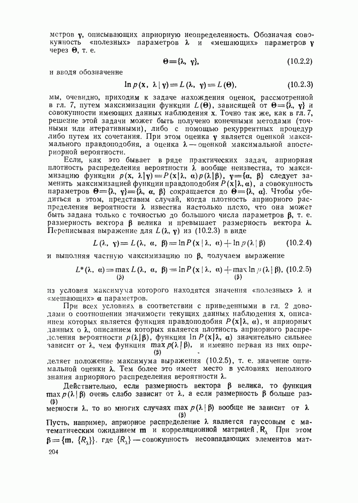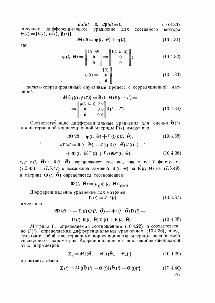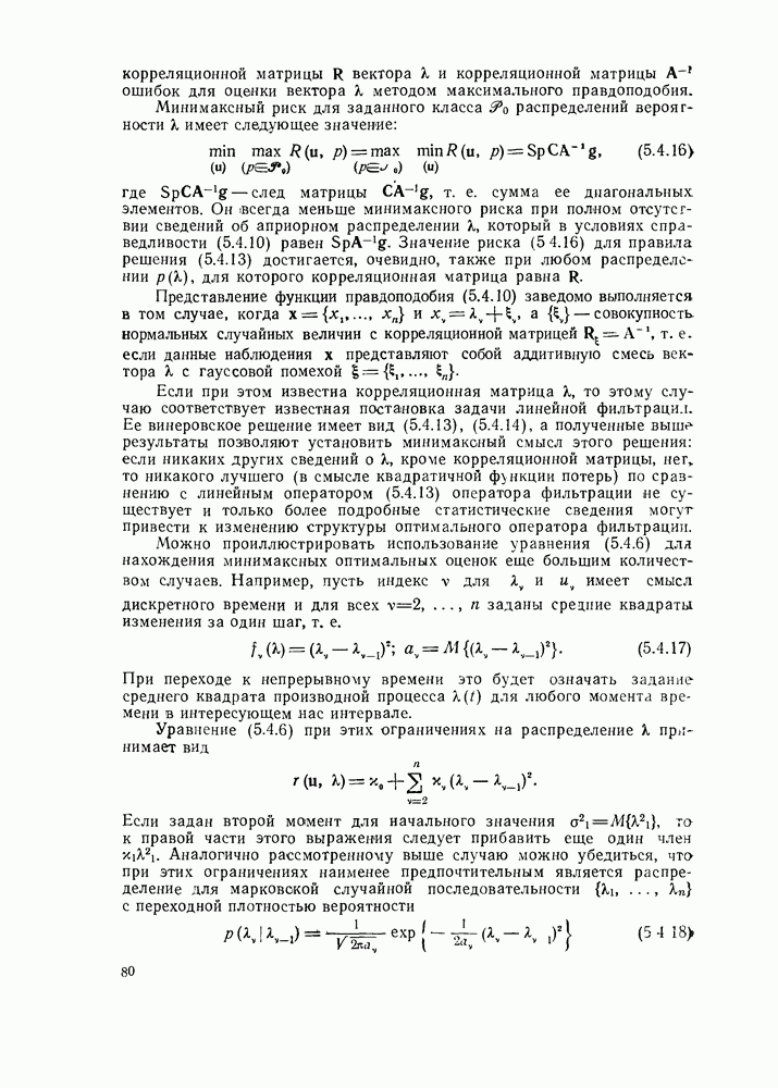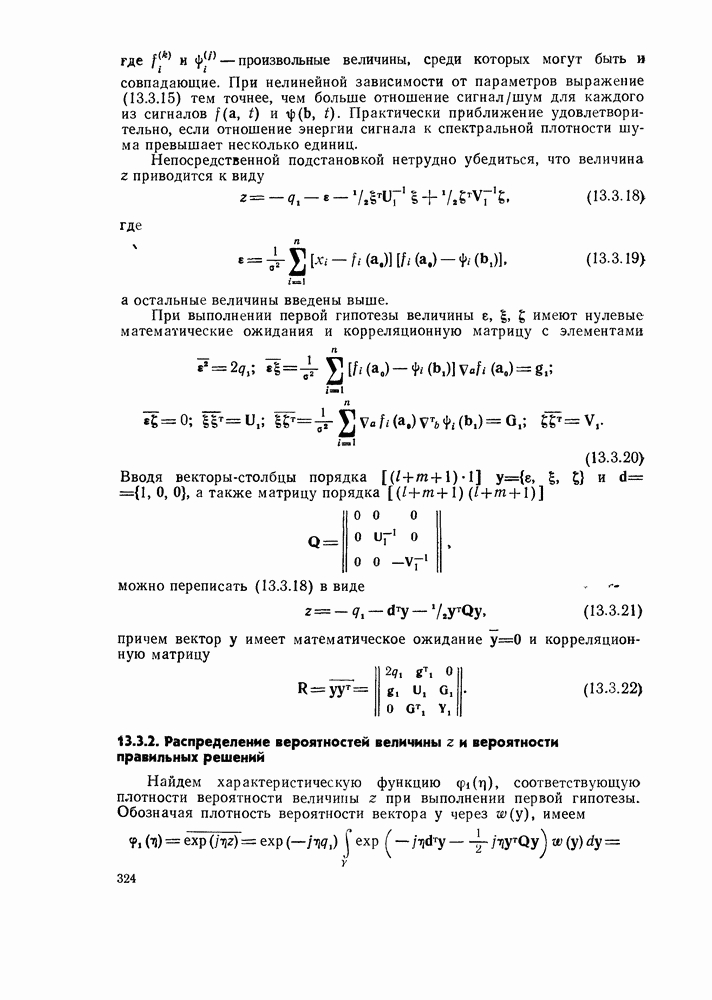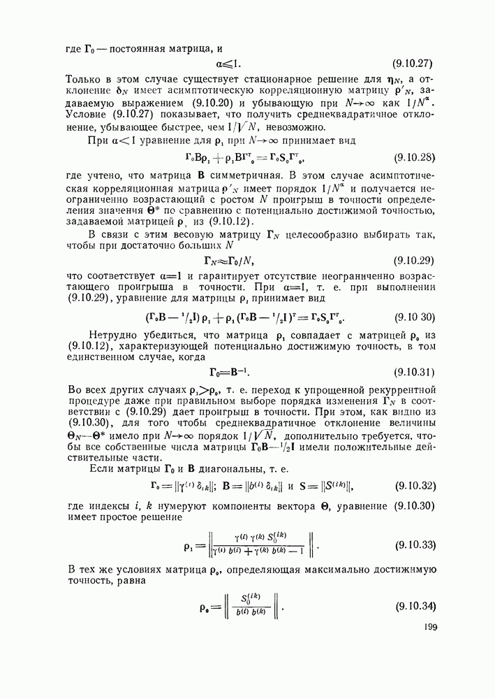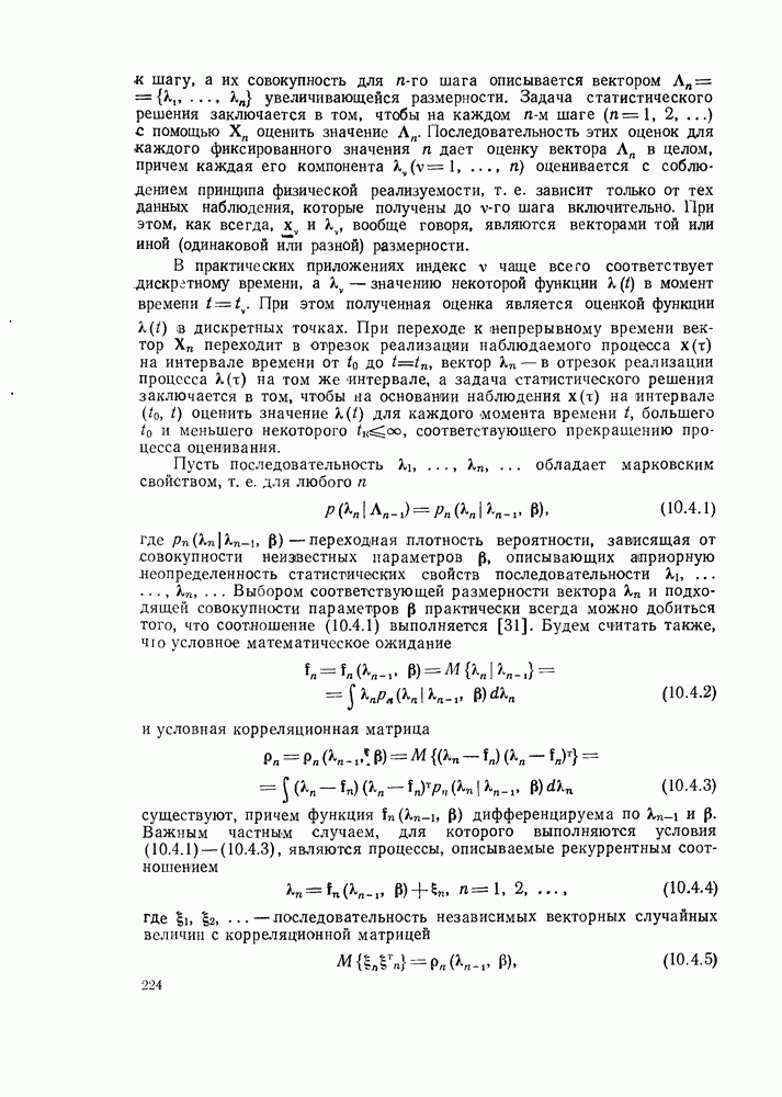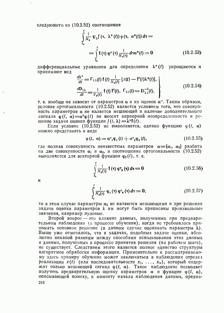 и к и в этом смысле линейная аппроксимация правила решения для задачи фильтрации является удачной, поскольку с учетом ограничений, о которых говорилось в гл. 5, она достаточно полно использует имеющиеся ограниченные априорные сведения. Во-вторых, следует подчеркнуть и ограничения, свойственные правилу решения (9.3.1) для оценки вектора k. Линейная оценка действительно является наилучшей только в том случае, когда существует линейная относительно