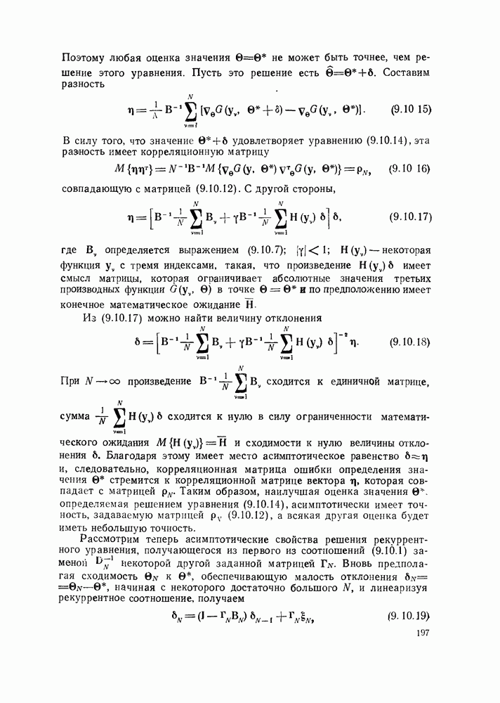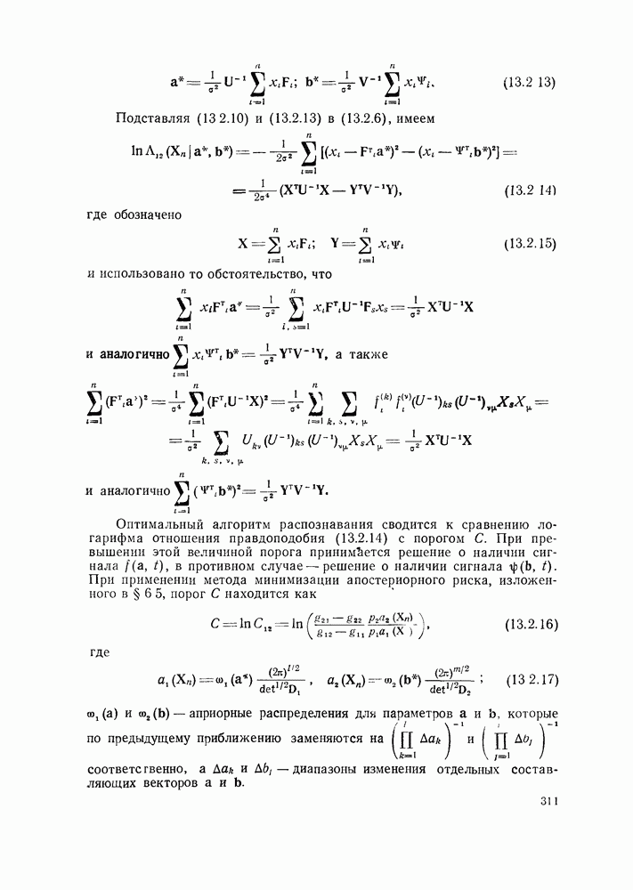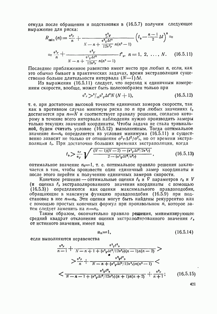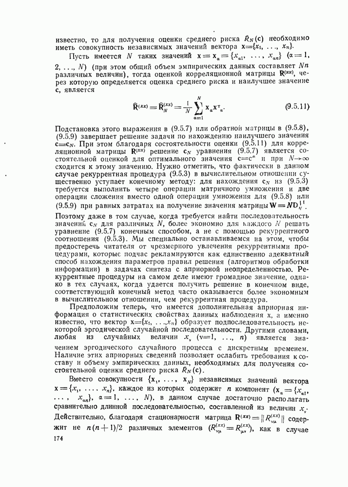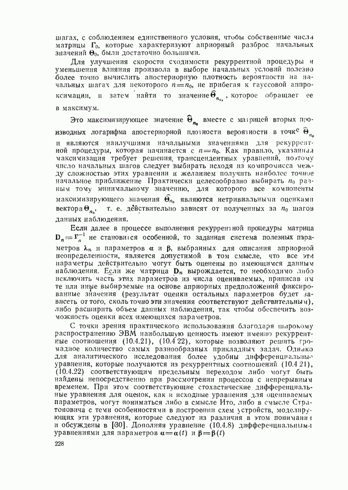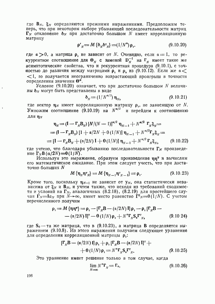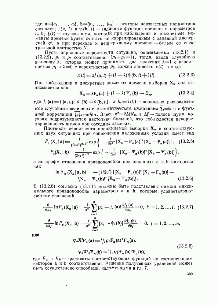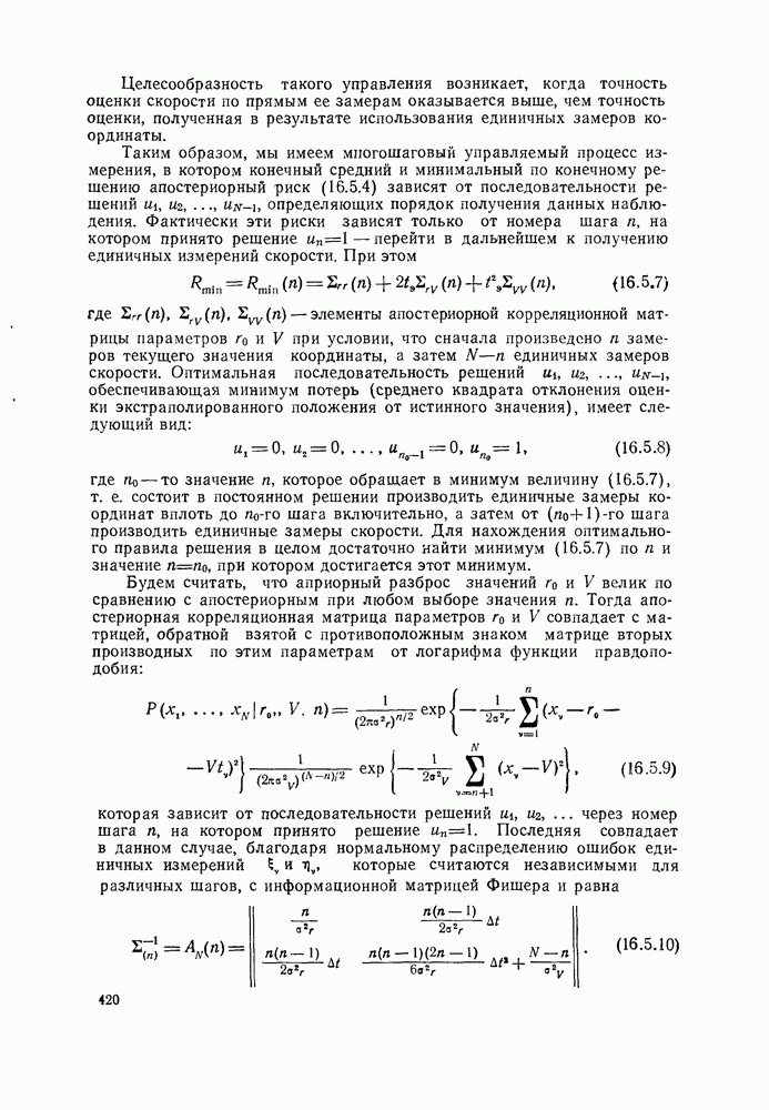и к и в этом смысле линейная аппроксимация правила решения для задачи фильтрации является удачной, поскольку с учетом ограничений, о которых говорилось в гл. 5, она достаточно полно использует имеющиеся ограниченные априорные сведения. Во-вторых, следует подчеркнуть и ограничения, свойственные правилу решения (9.3.1) для оценки вектора k. Линейная оценка действительно является наилучшей только в том случае, когда существует линейная относительно