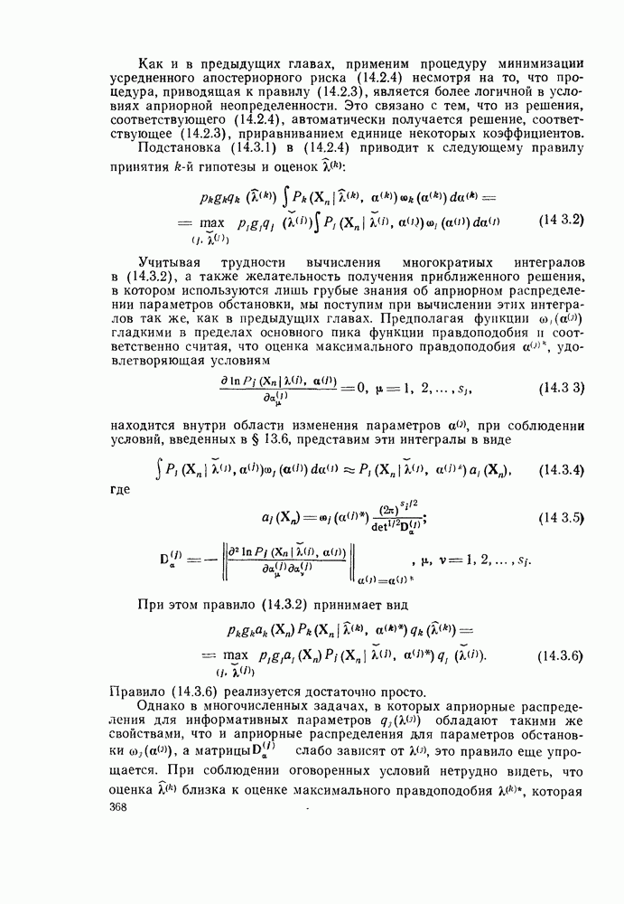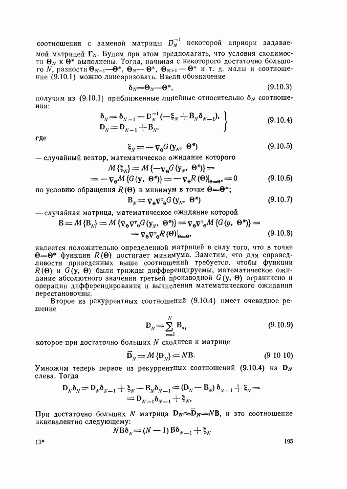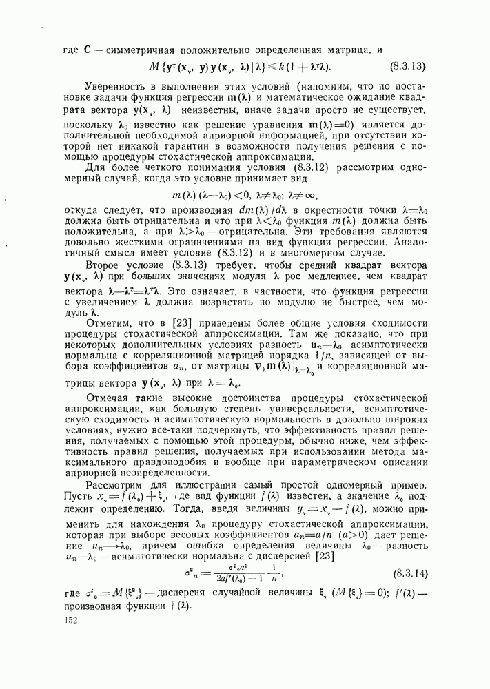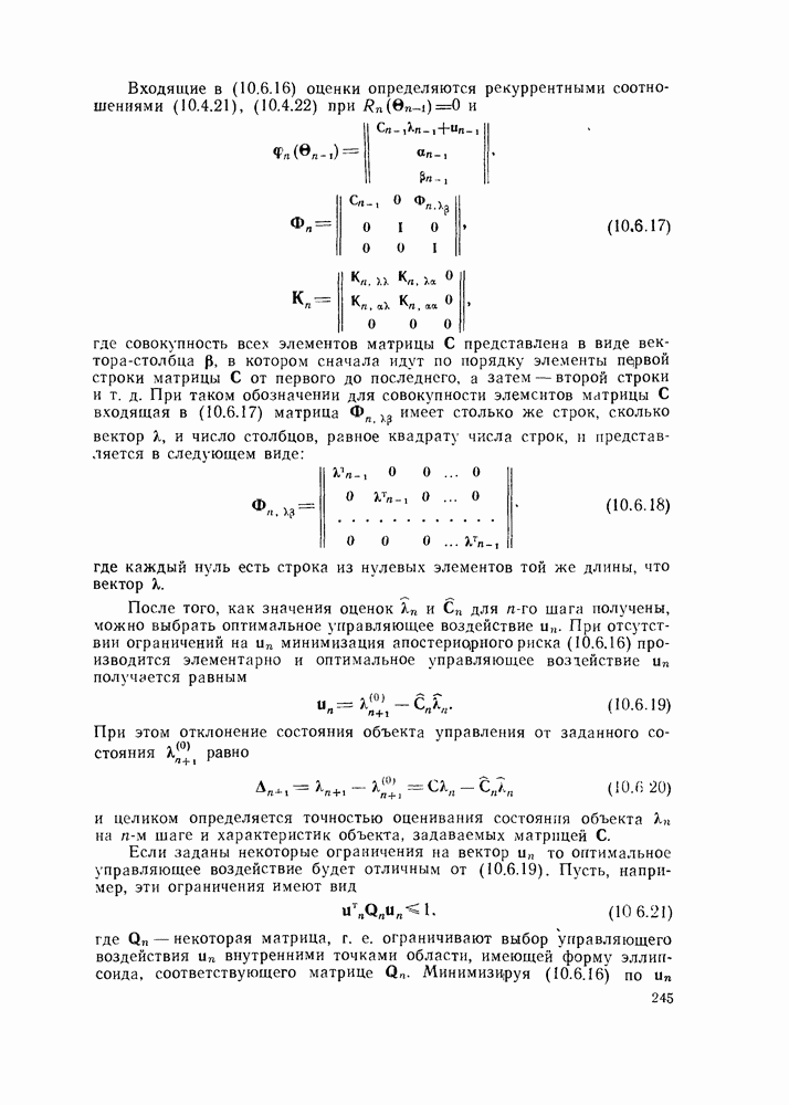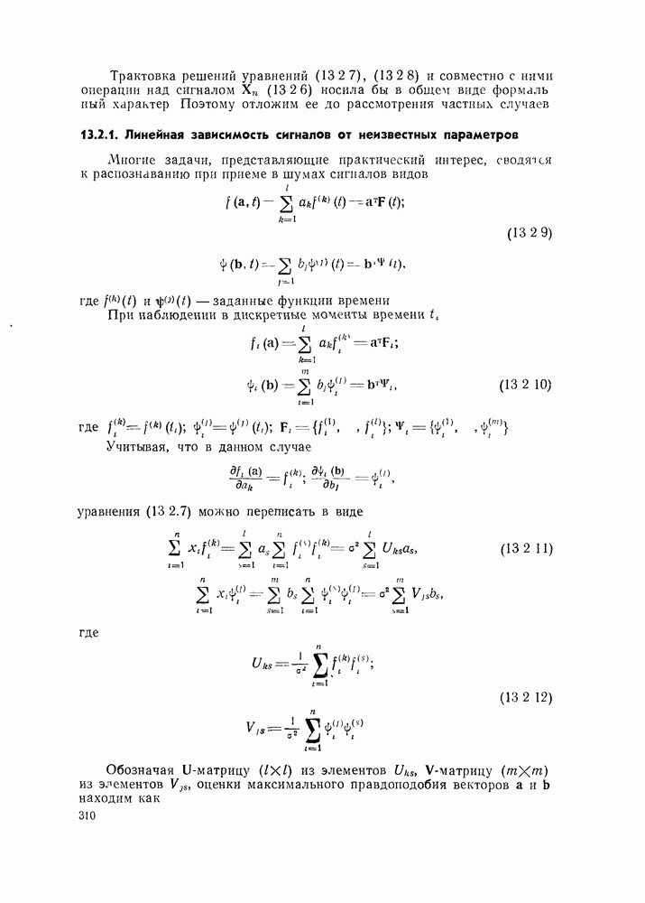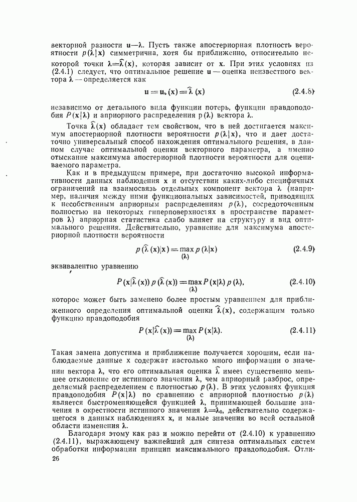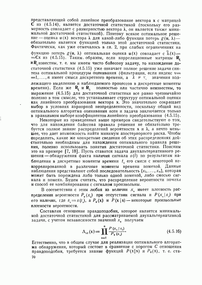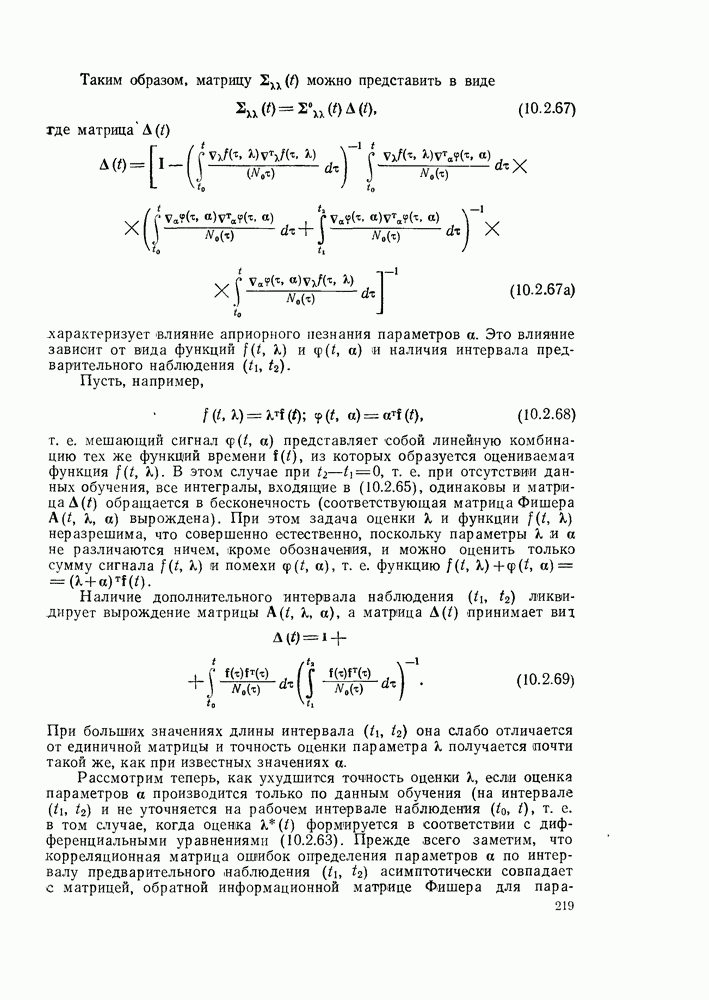 и к и в этом смысле линейная аппроксимация правила решения для задачи фильтрации является удачной, поскольку с учетом ограничений, о которых говорилось в гл. 5, она достаточно полно использует имеющиеся ограниченные априорные сведения. Во-вторых, следует подчеркнуть и ограничения, свойственные правилу решения (9.3.1) для оценки вектора k. Линейная оценка действительно является наилучшей только в том случае, когда существует линейная относительно