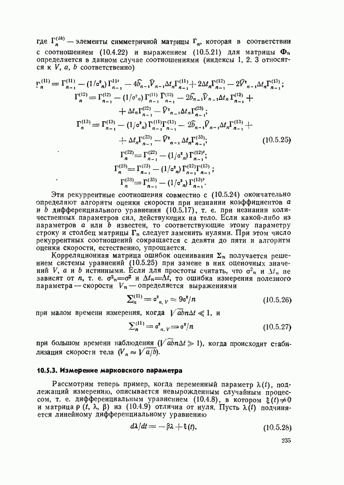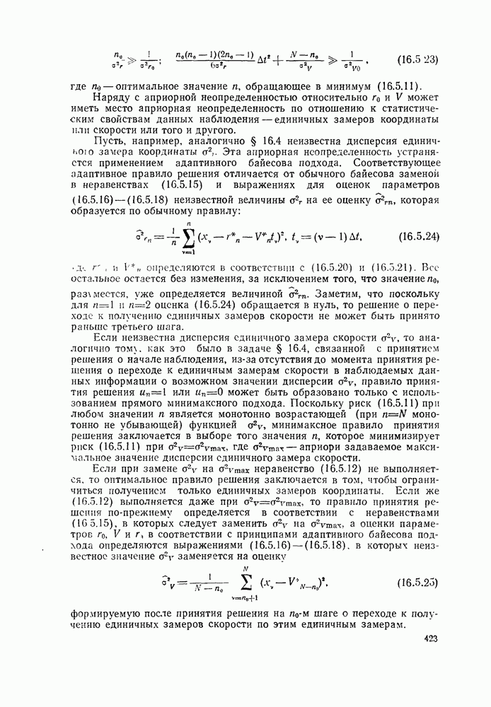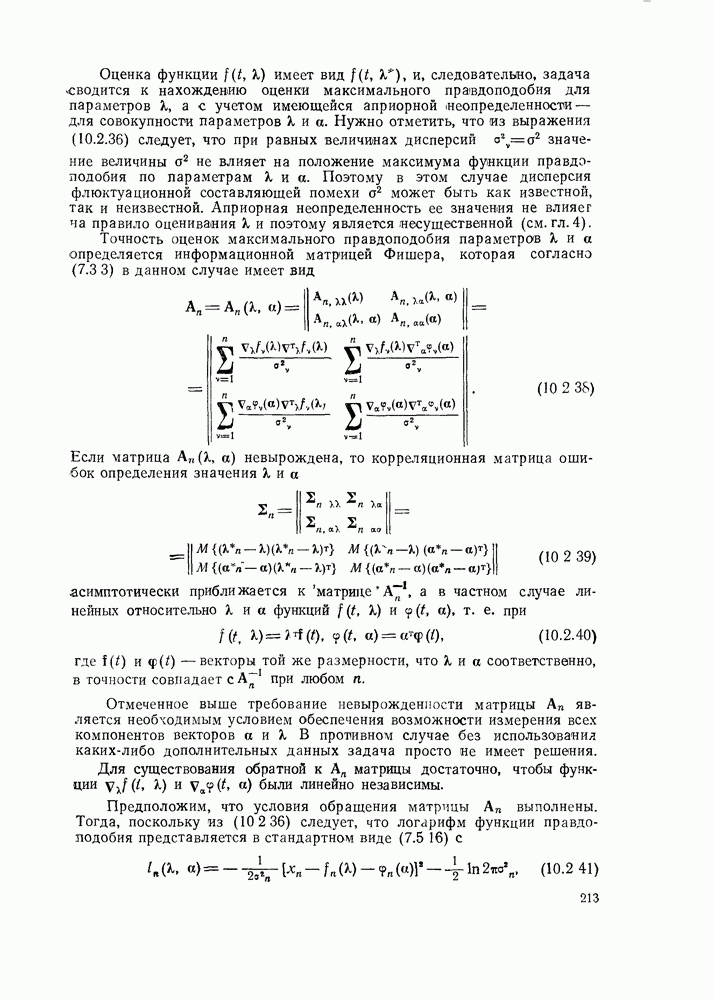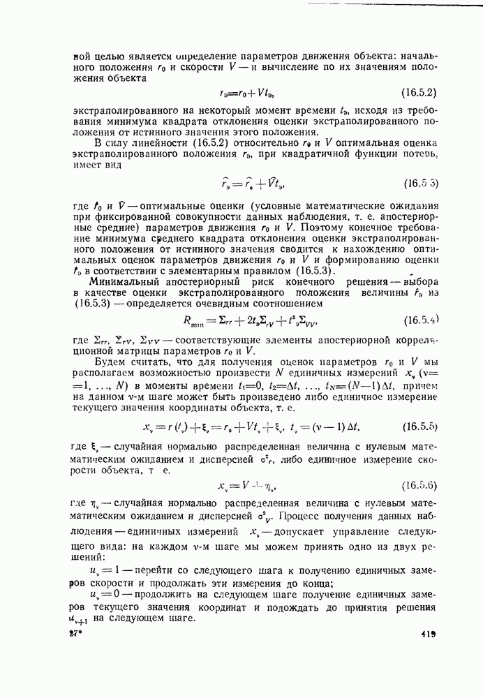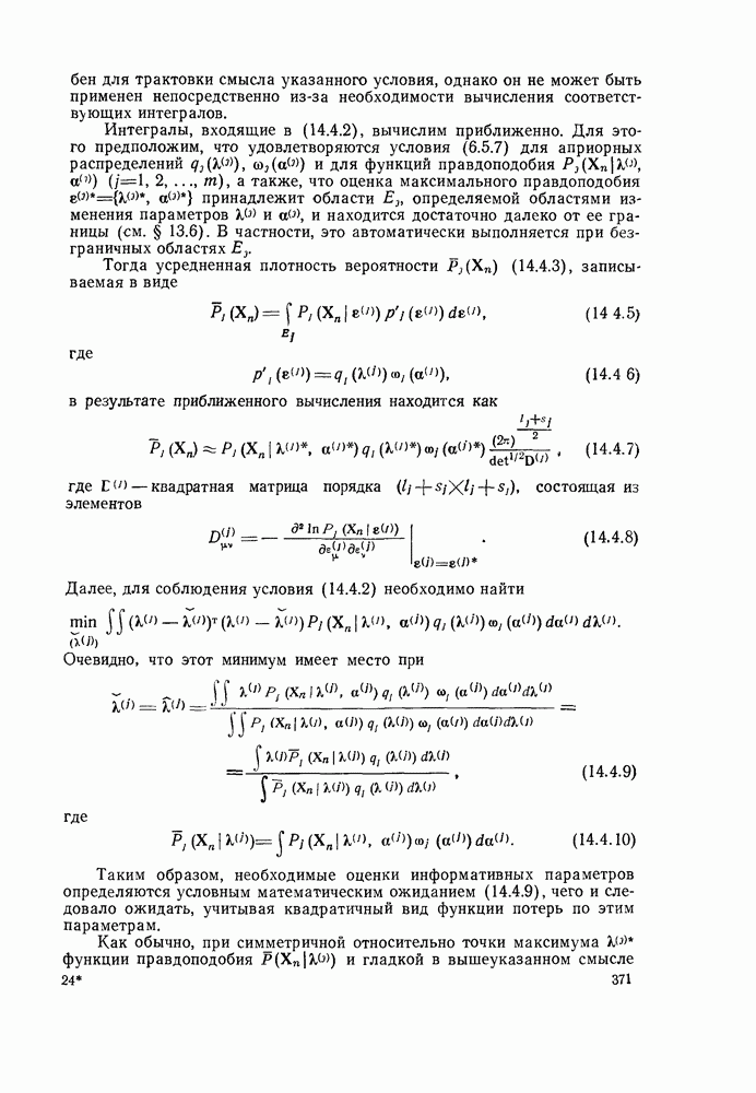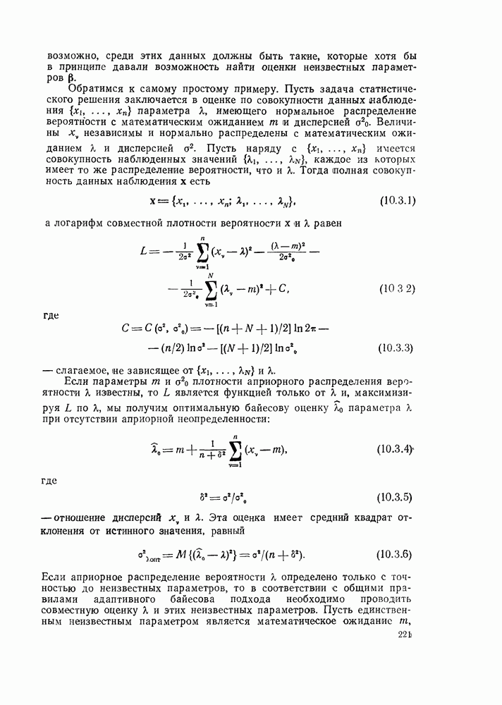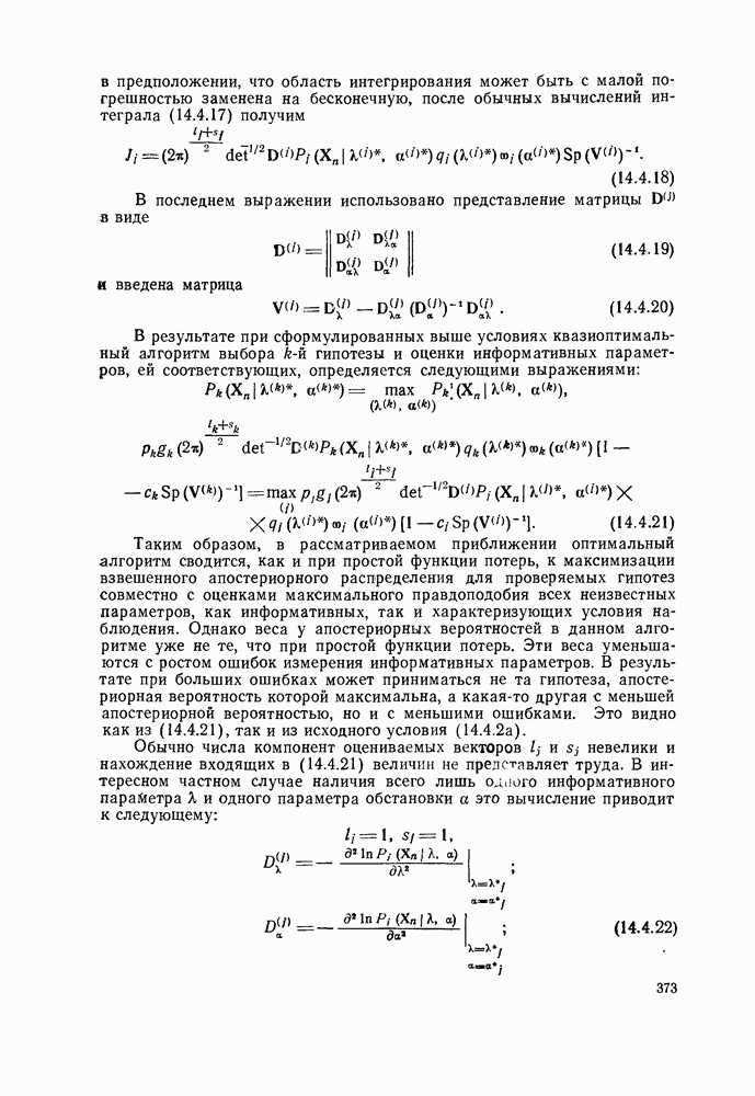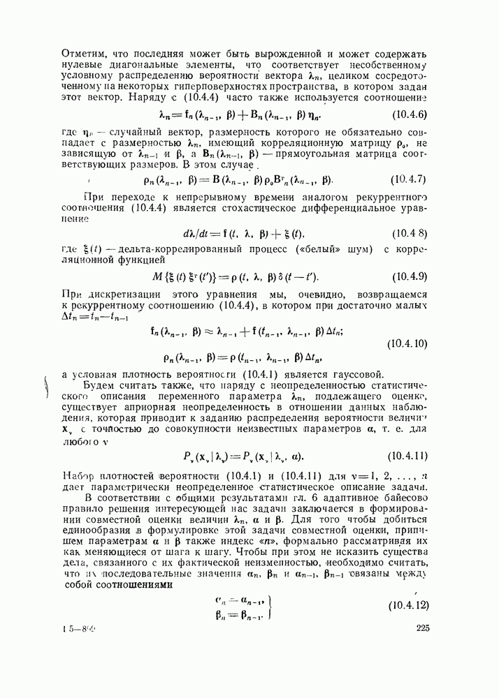 и к и в этом смысле линейная аппроксимация правила решения для задачи фильтрации является удачной, поскольку с учетом ограничений, о которых говорилось в гл. 5, она достаточно полно использует имеющиеся ограниченные априорные сведения. Во-вторых, следует подчеркнуть и ограничения, свойственные правилу решения (9.3.1) для оценки вектора k. Линейная оценка действительно является наилучшей только в том случае, когда существует линейная относительно