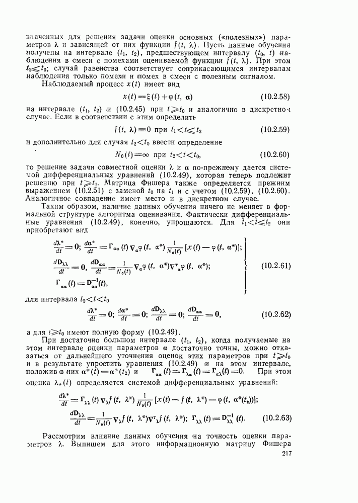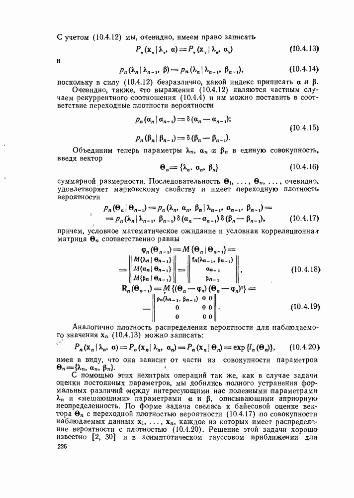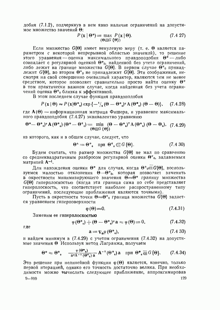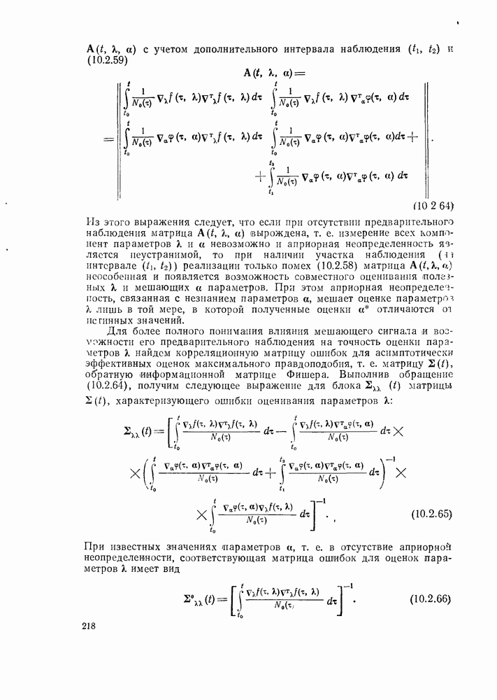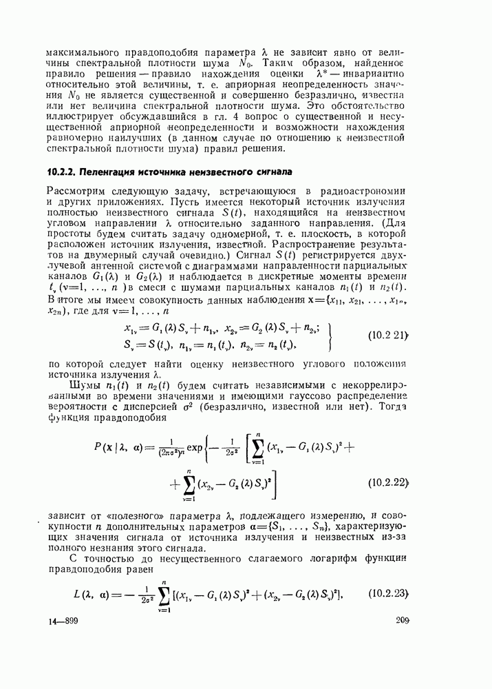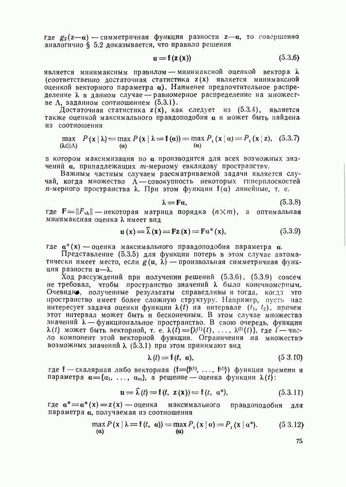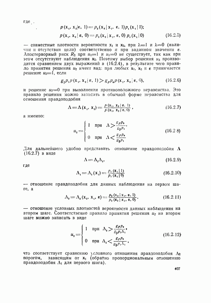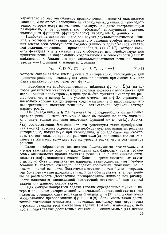 и к и в этом смысле линейная аппроксимация правила решения для задачи фильтрации является удачной, поскольку с учетом ограничений, о которых говорилось в гл. 5, она достаточно полно использует имеющиеся ограниченные априорные сведения. Во-вторых, следует подчеркнуть и ограничения, свойственные правилу решения (9.3.1) для оценки вектора k. Линейная оценка действительно является наилучшей только в том случае, когда существует линейная относительно