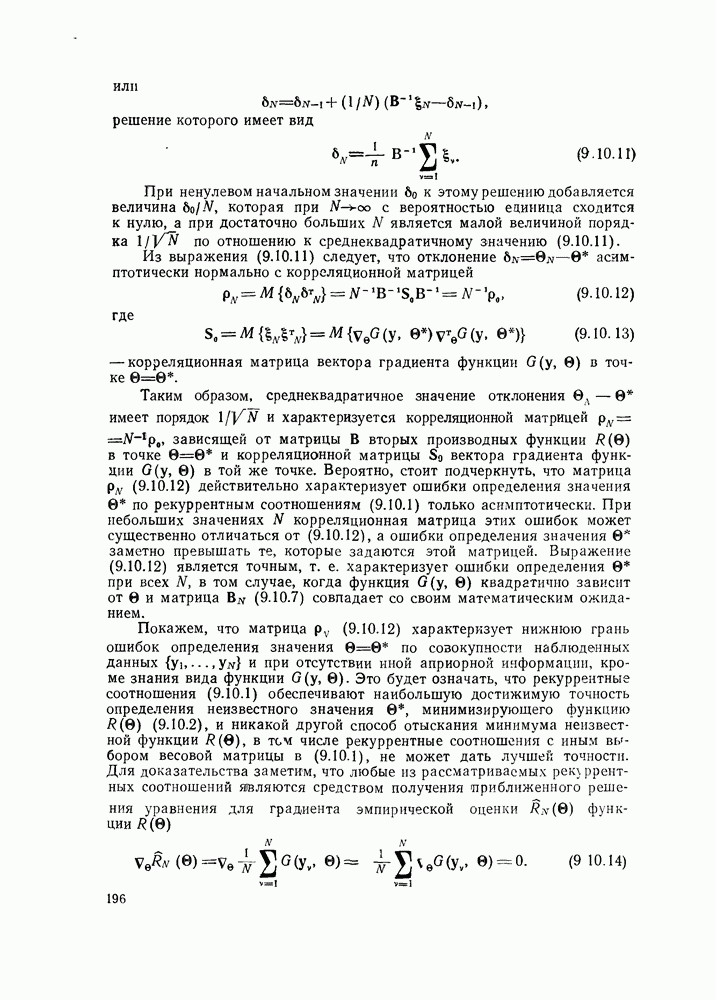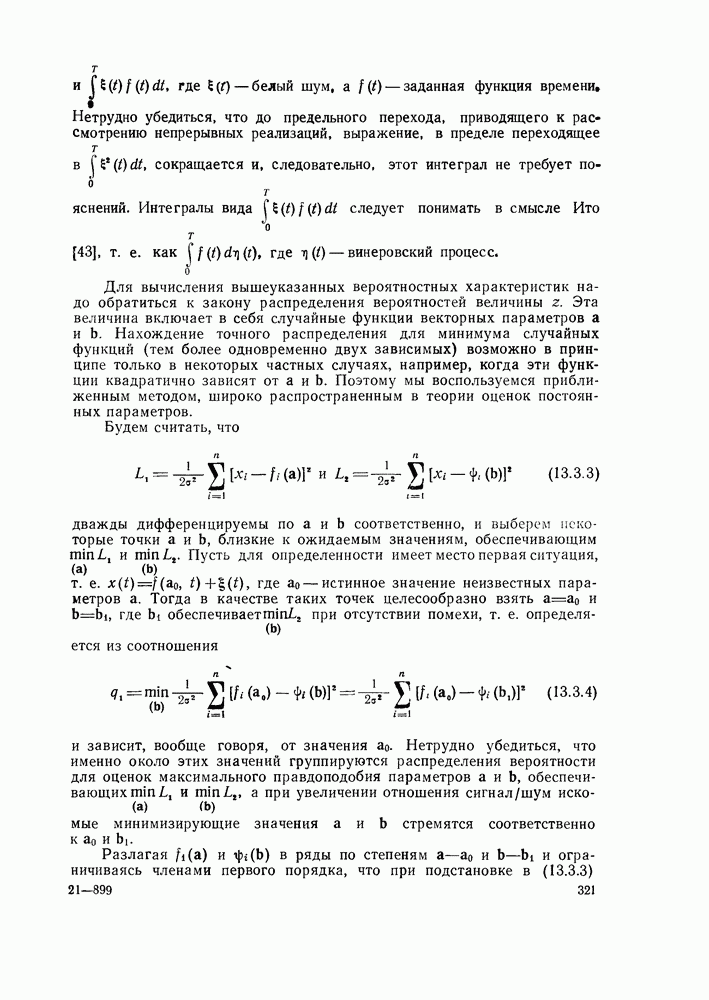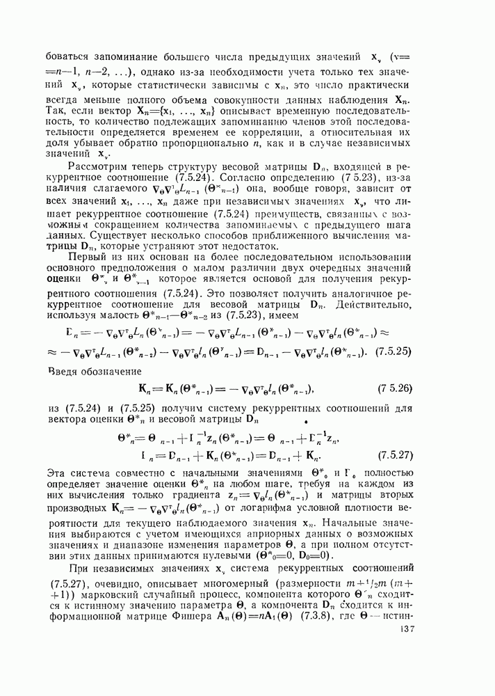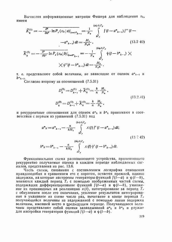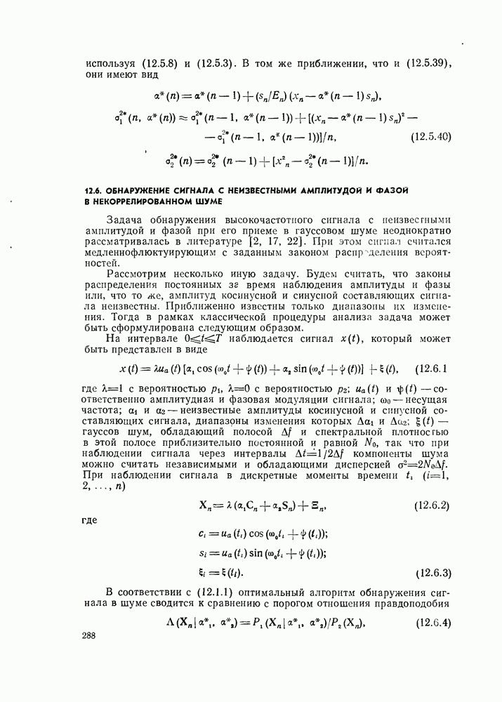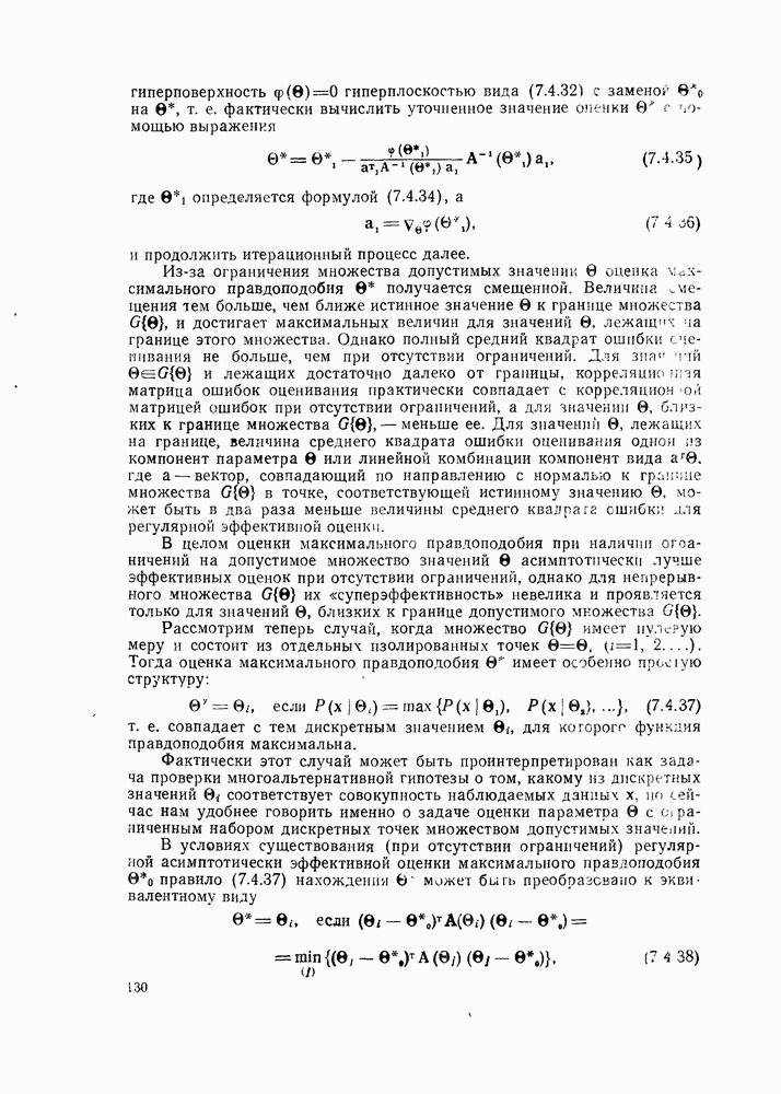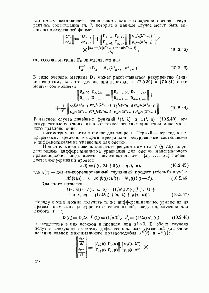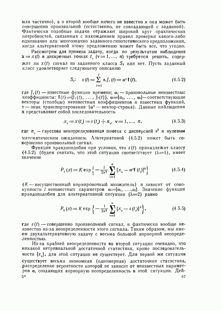 и к и в этом смысле линейная аппроксимация правила решения для задачи фильтрации является удачной, поскольку с учетом ограничений, о которых говорилось в гл. 5, она достаточно полно использует имеющиеся ограниченные априорные сведения. Во-вторых, следует подчеркнуть и ограничения, свойственные правилу решения (9.3.1) для оценки вектора k. Линейная оценка действительно является наилучшей только в том случае, когда существует линейная относительно