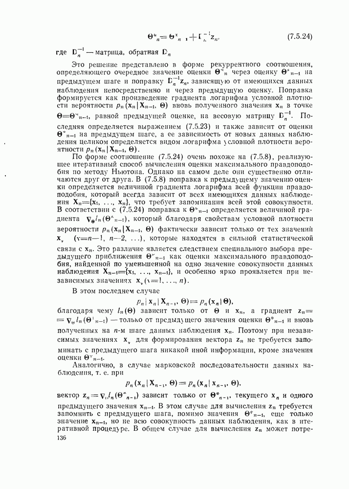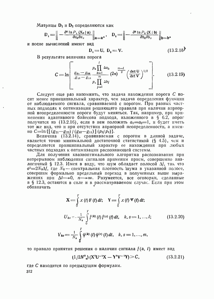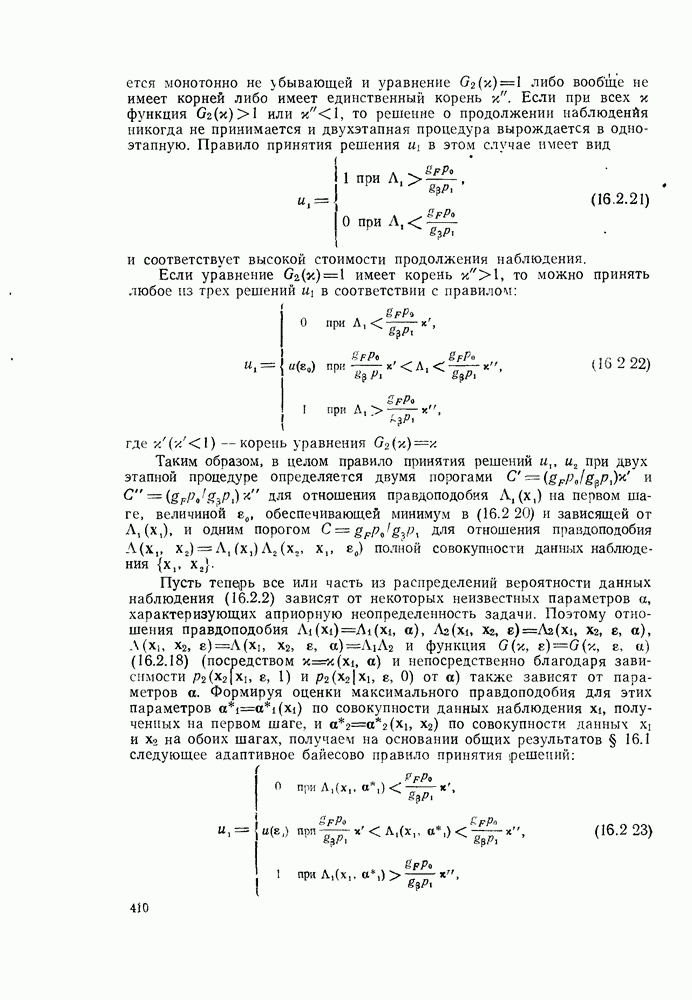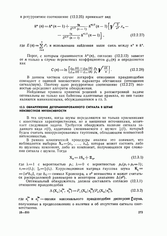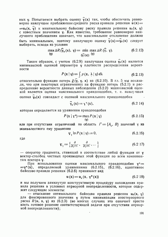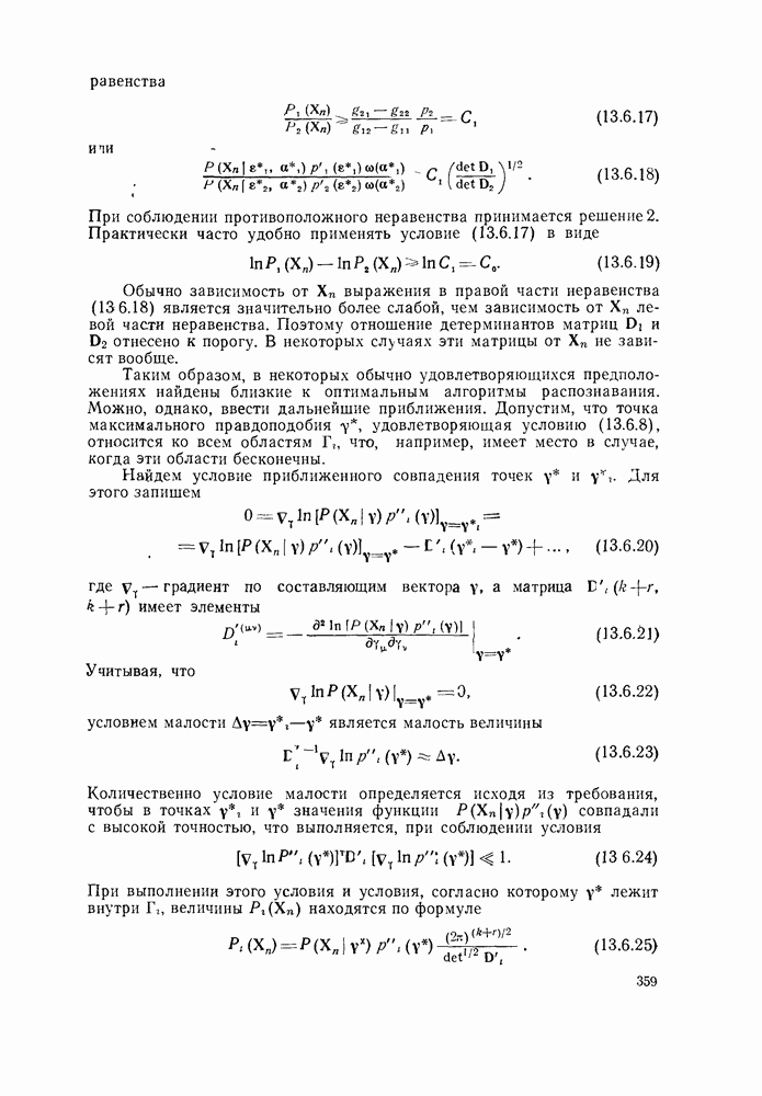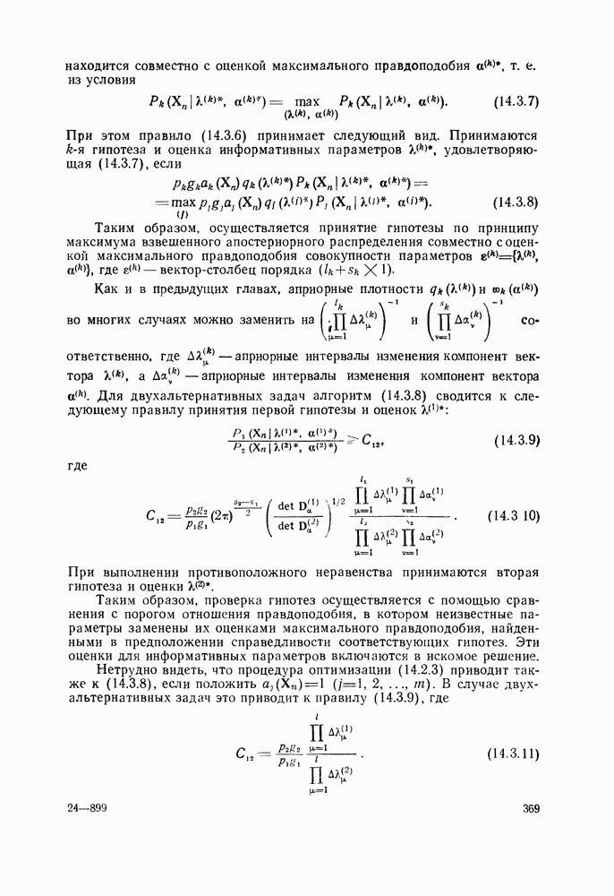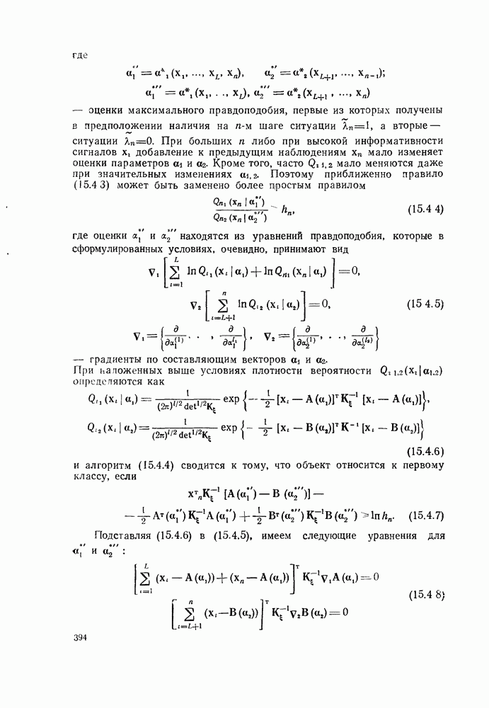и к и в этом смысле линейная аппроксимация правила решения для задачи фильтрации является удачной, поскольку с учетом ограничений, о которых говорилось в гл. 5, она достаточно полно использует имеющиеся ограниченные априорные сведения. Во-вторых, следует подчеркнуть и ограничения, свойственные правилу решения (9.3.1) для оценки вектора k. Линейная оценка действительно является наилучшей только в том случае, когда существует линейная относительно