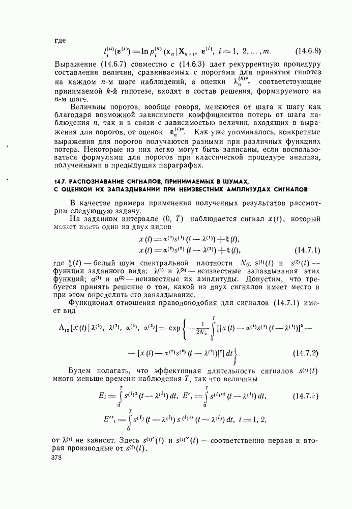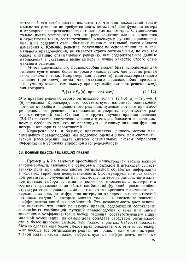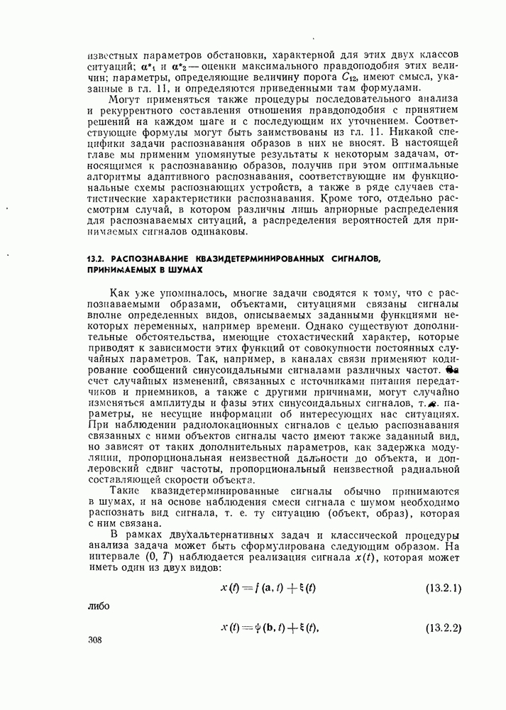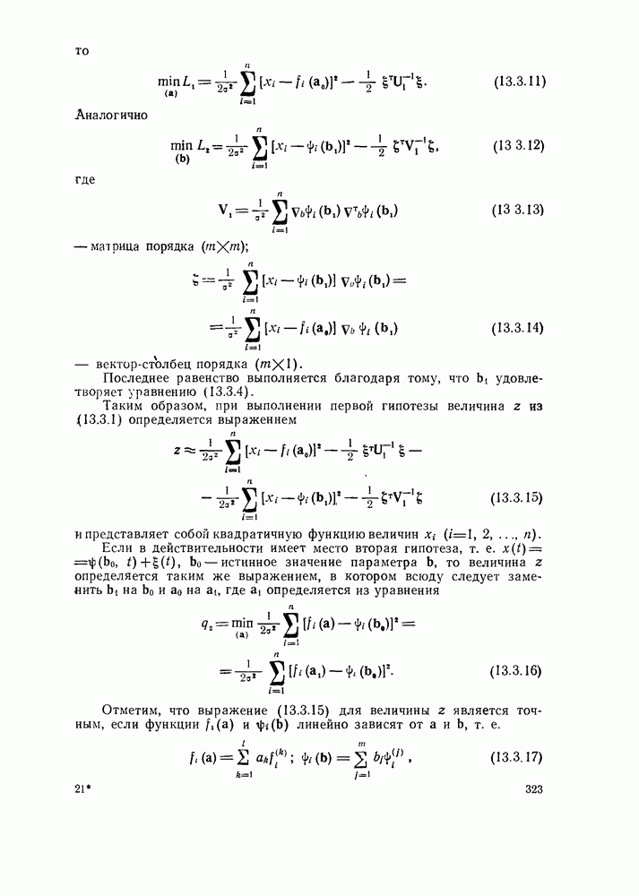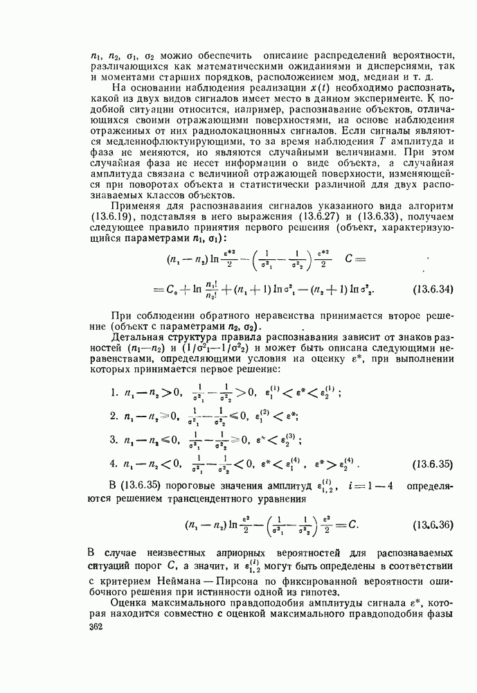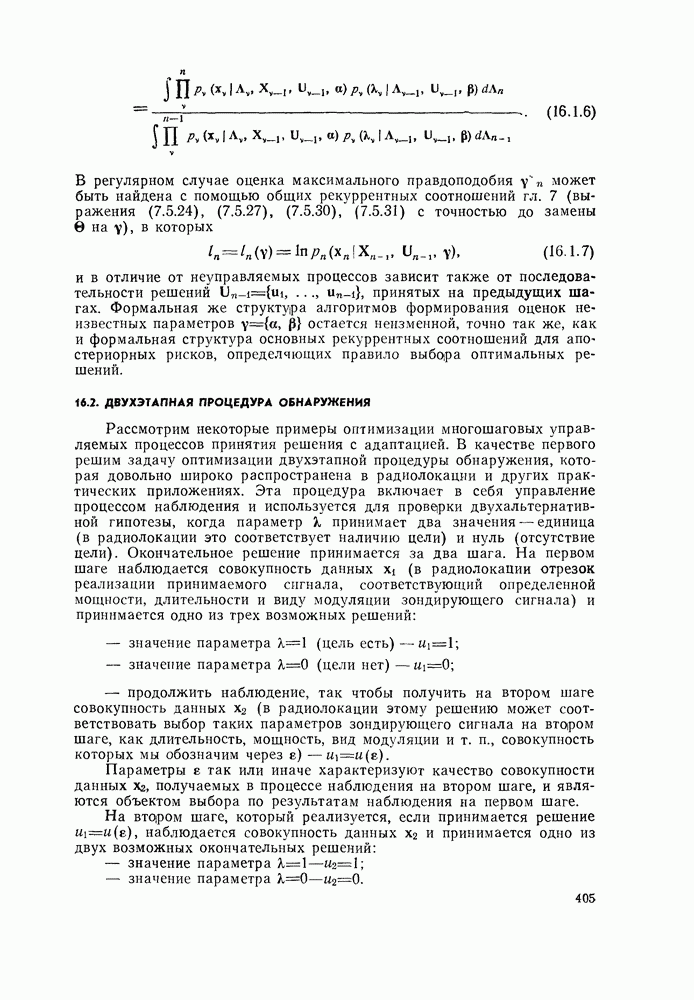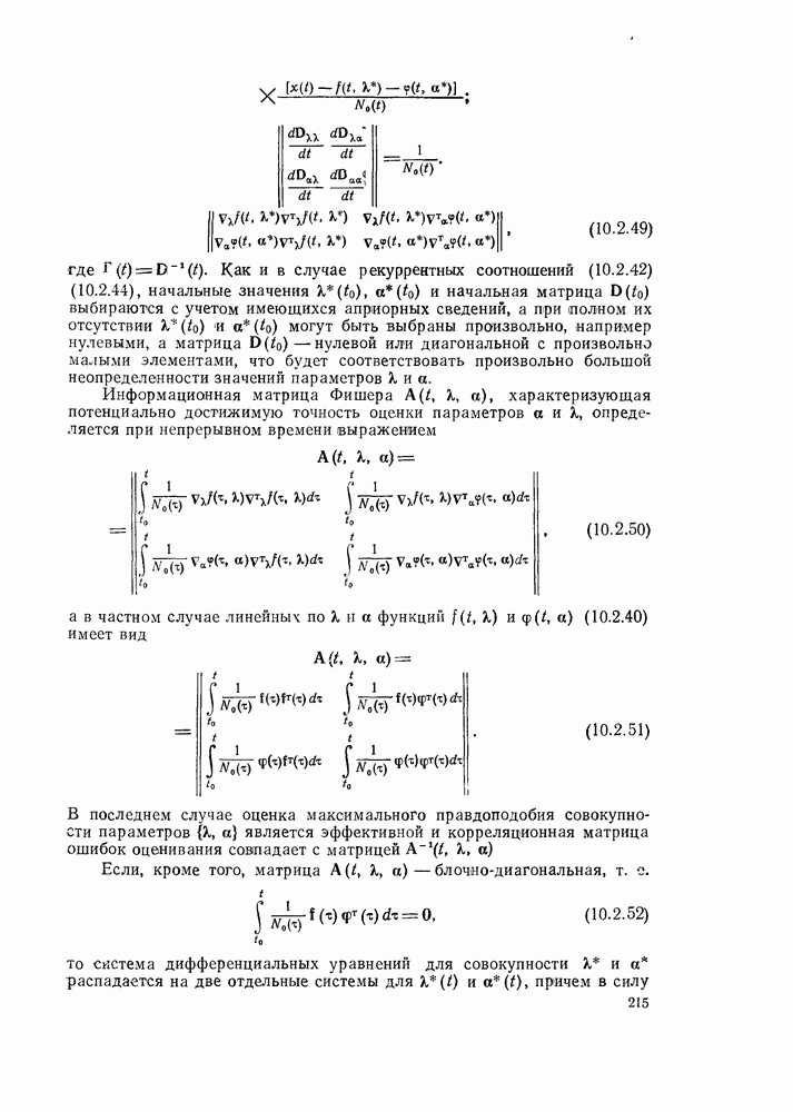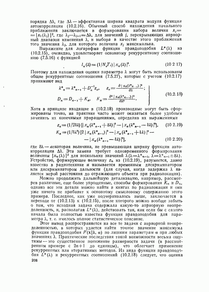 и к и в этом смысле линейная аппроксимация правила решения для задачи фильтрации является удачной, поскольку с учетом ограничений, о которых говорилось в гл. 5, она достаточно полно использует имеющиеся ограниченные априорные сведения. Во-вторых, следует подчеркнуть и ограничения, свойственные правилу решения (9.3.1) для оценки вектора k. Линейная оценка действительно является наилучшей только в том случае, когда существует линейная относительно