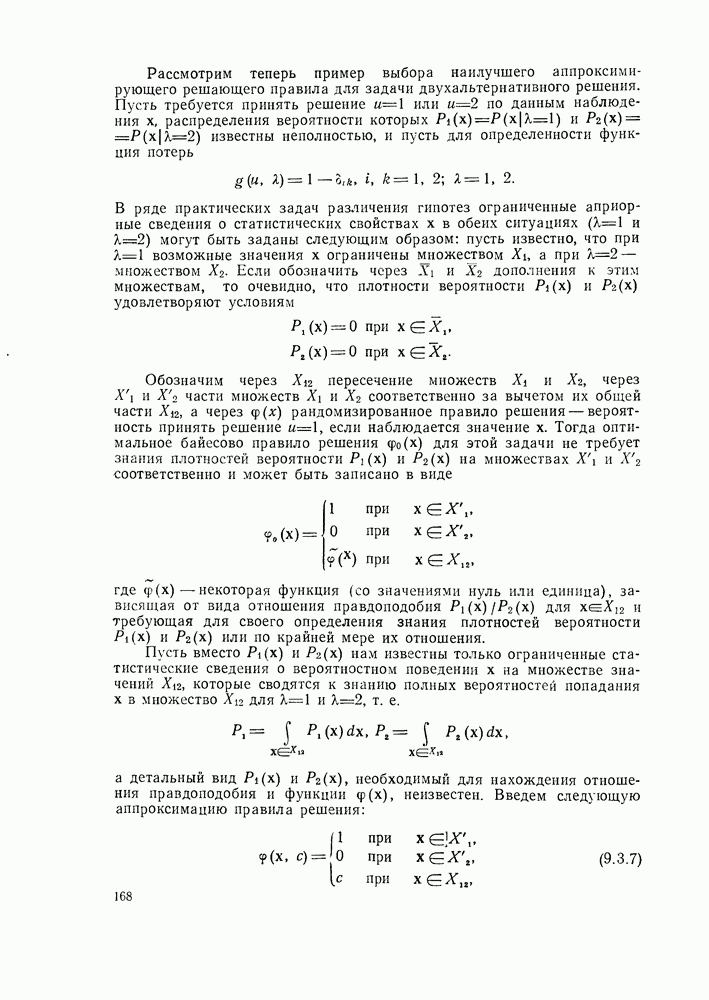 Чтобы показать, сколь существенные проигрыши в эффективности могут при этом возникнуть и насколько большую осторожность следует проявлять при выборе структуры аппроксимирующего правила решения (9.2.1), рассмотрим один простой пример. Пусть компоненты вектора х имеют вид