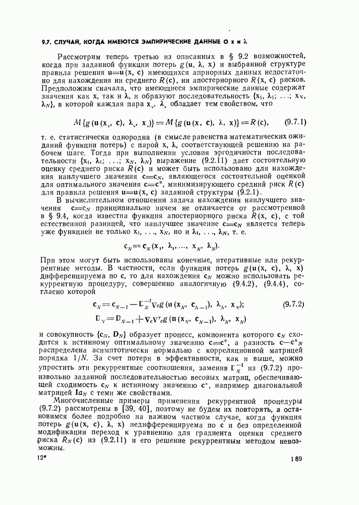 9.3. СЛУЧАИ, КОГДА ПРИ ВЫБРАННОЙ АППРОКСИМАЦИИ ПРАВИЛА РЕШЕНИЯ АПРИОРНЫХ ДАННЫХ ДОСТАТОЧНО ДЛЯ ВЫЧИСЛЕНИЯ СРЕДНЕГО РИСКА